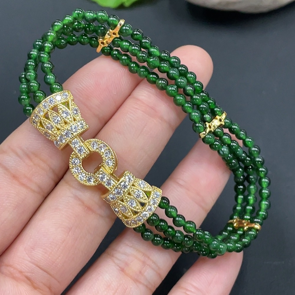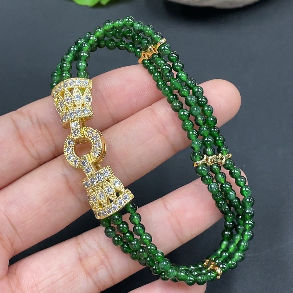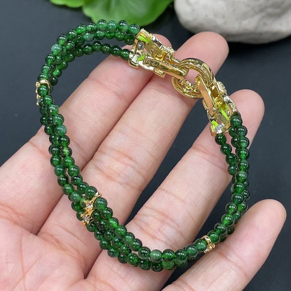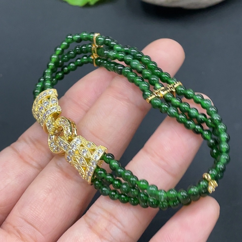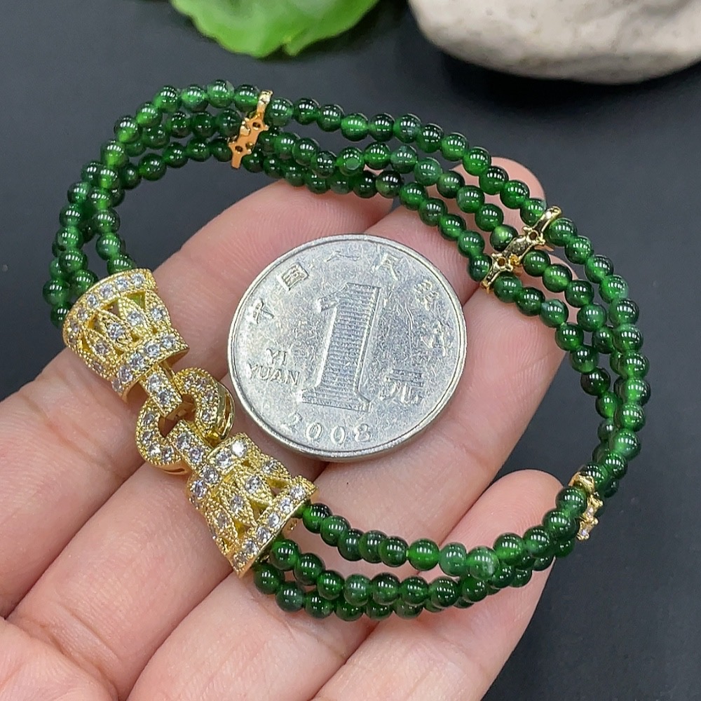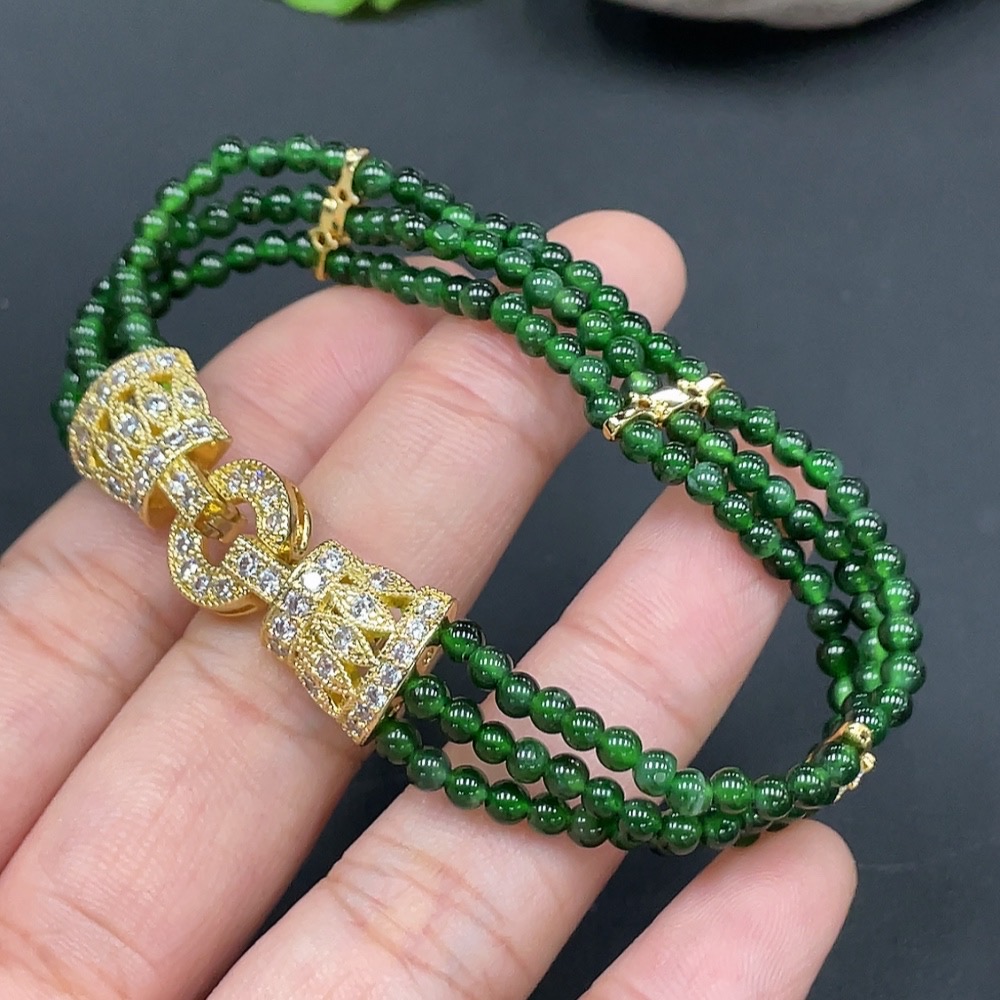 Jadeite Bracelet Approx. 3mm Beads Non-Gold-Inlaid Total Weight 12.333g