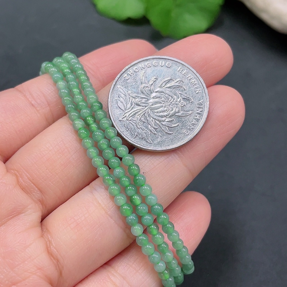 Jadeite Bead Necklace, Approx. 3mm, Total Weight 7.498g