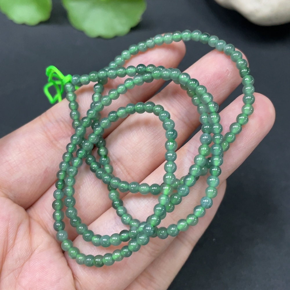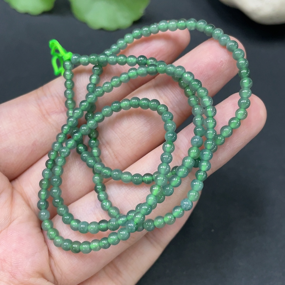 Jadeite Beaded Necklace Approx. 3mm Total Weight 7.638g