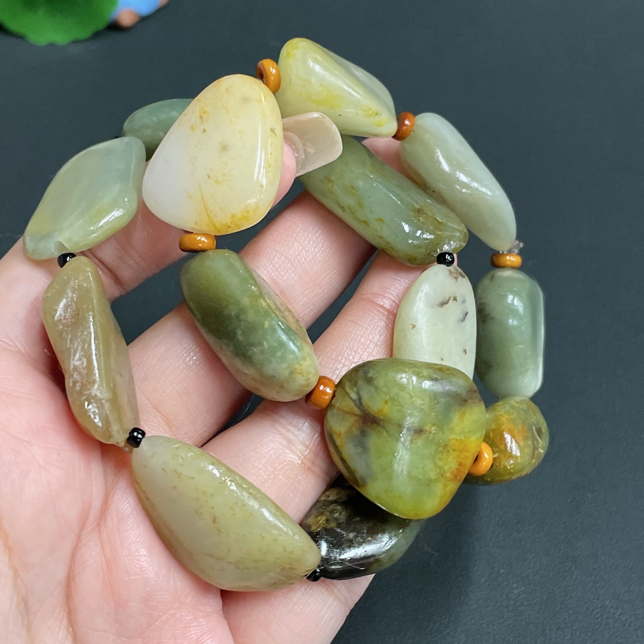 Hetian Jade Bracelet, Total Weight Approx. 121.2g, Undetermined Skin Color Origin, Contains Other Natural Mineral Components