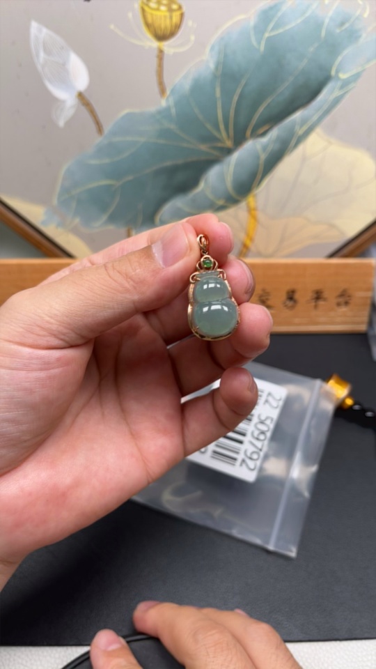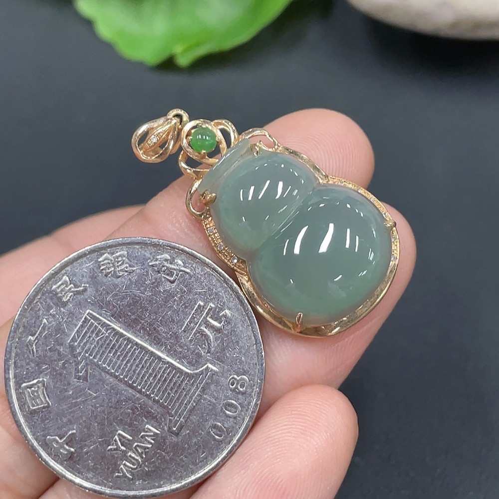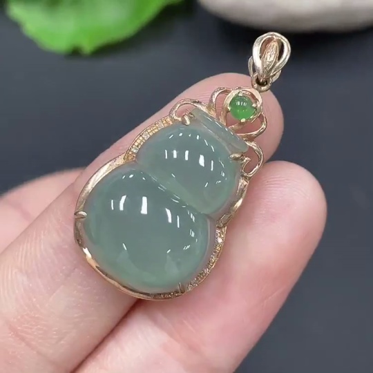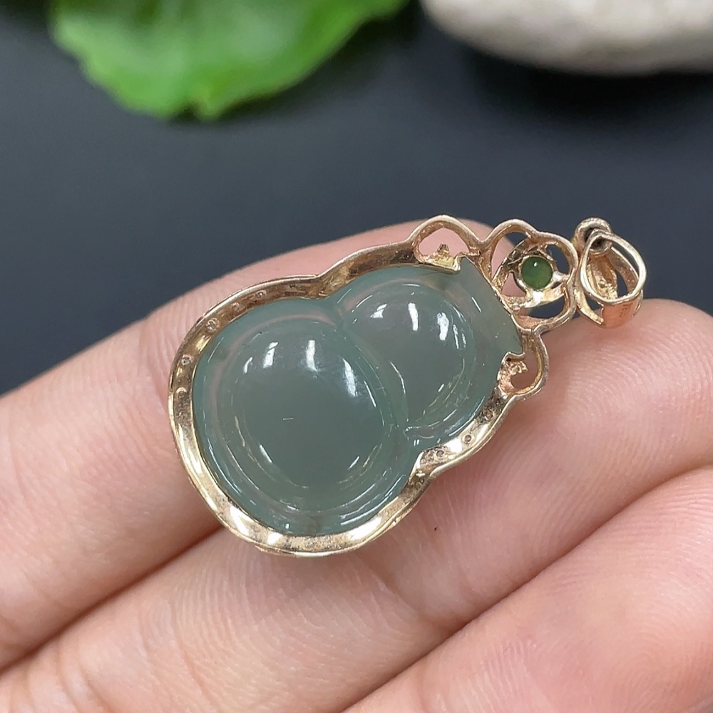 Jadeite Gourd Pendant with 18K Gold Inlay, Total Weight Approx. 3.01g