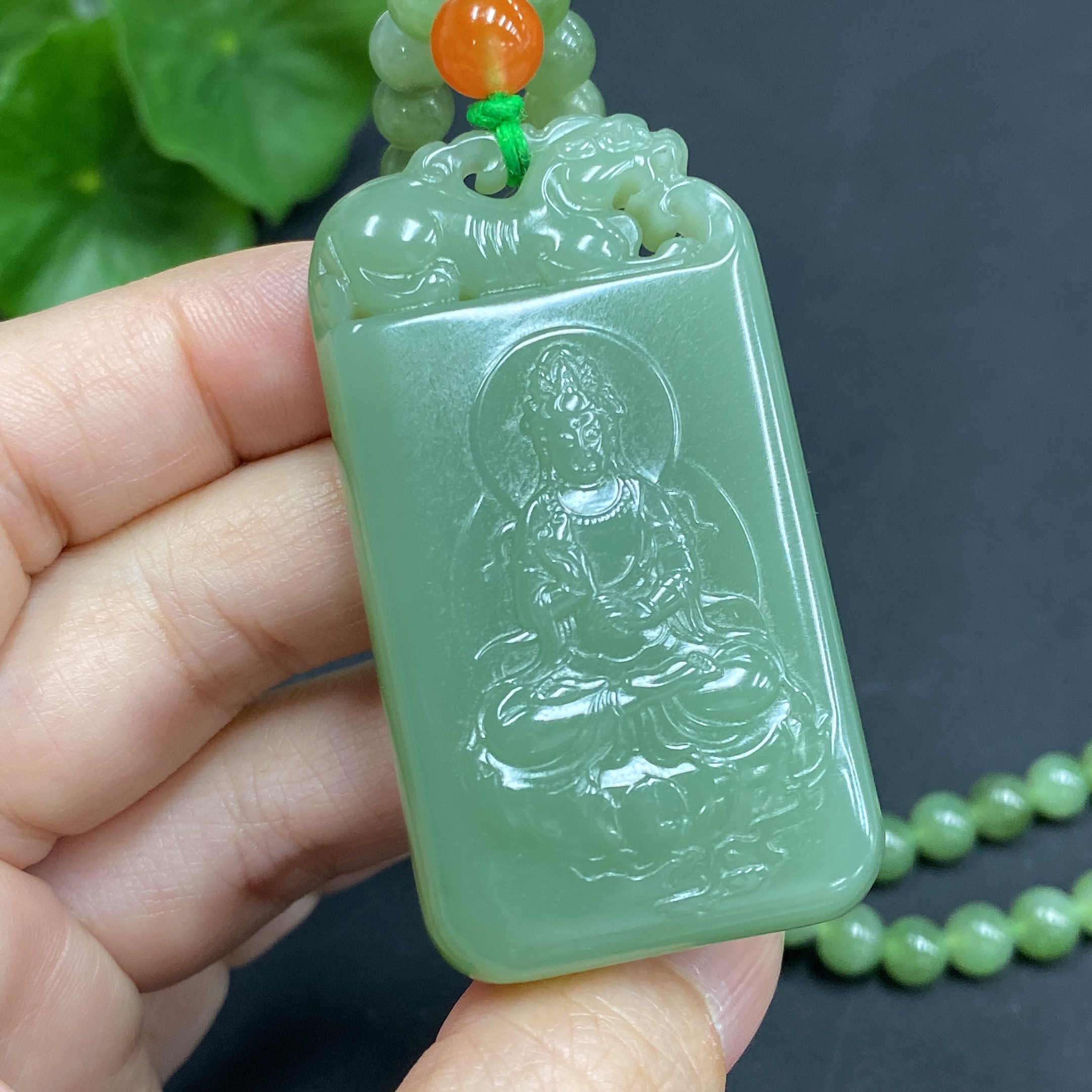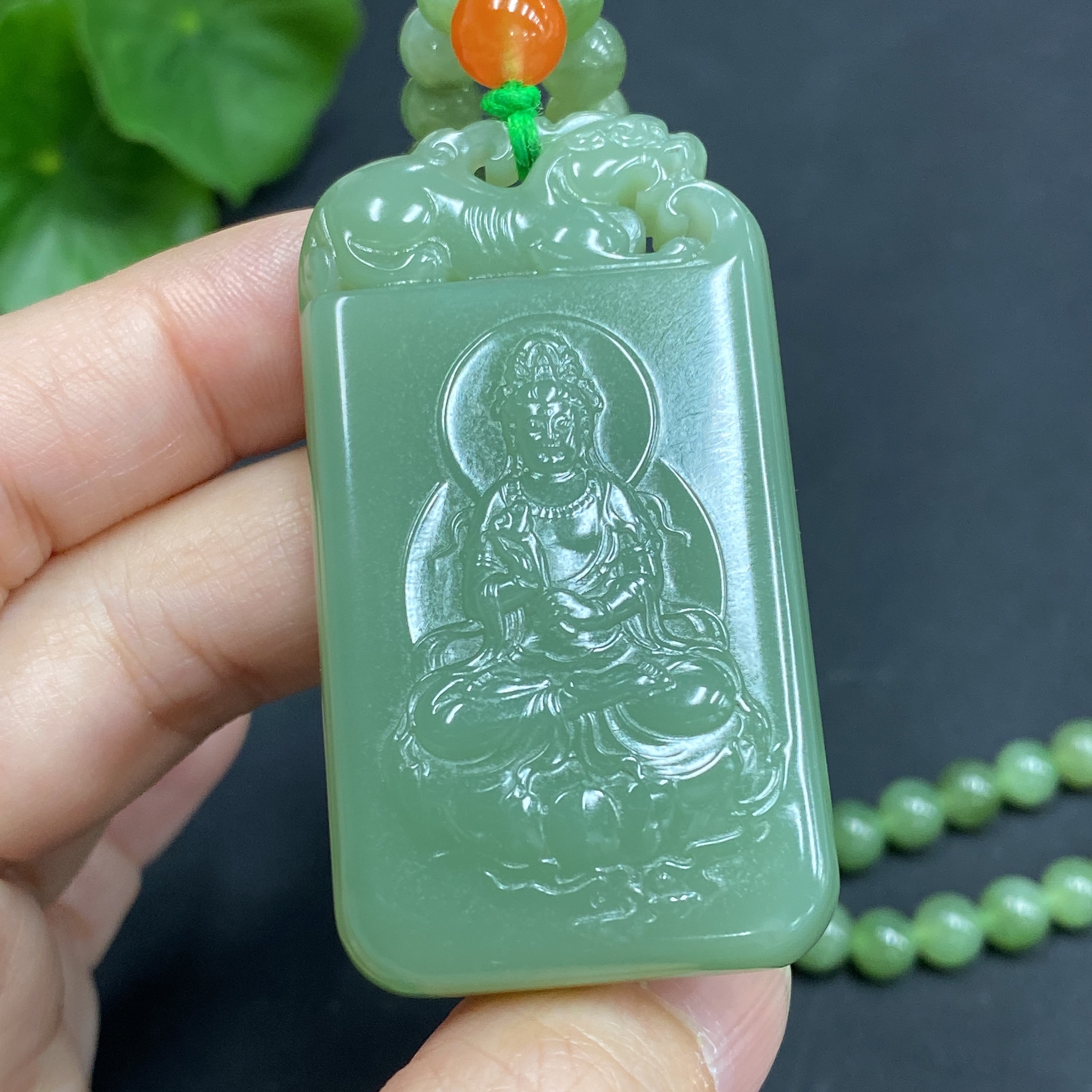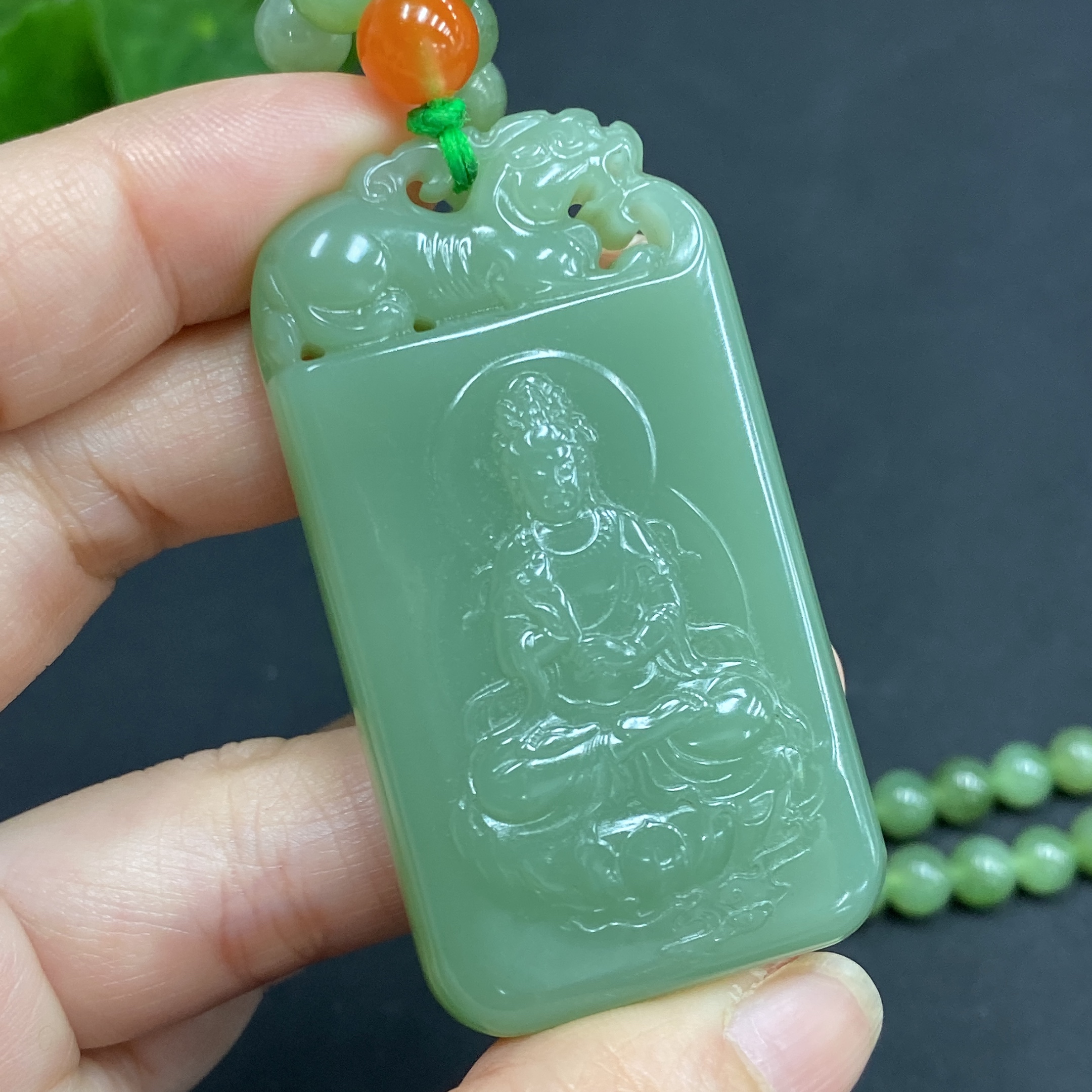 Hetian Jade Pendant Guanyin Total Weight Approx. (Including Chain) 74.7g