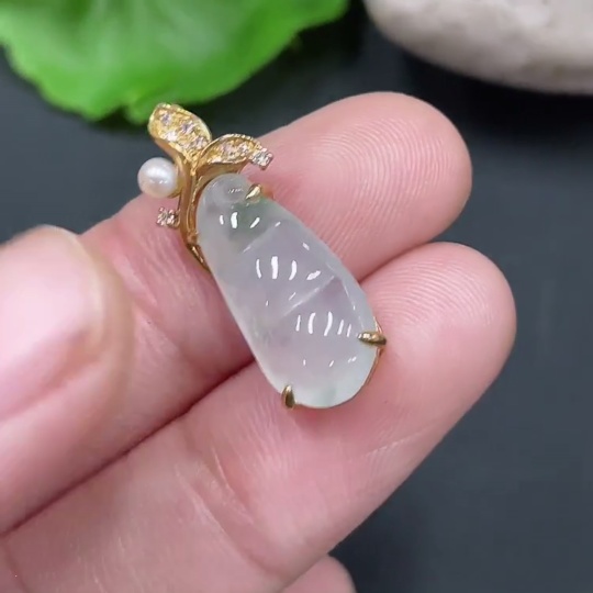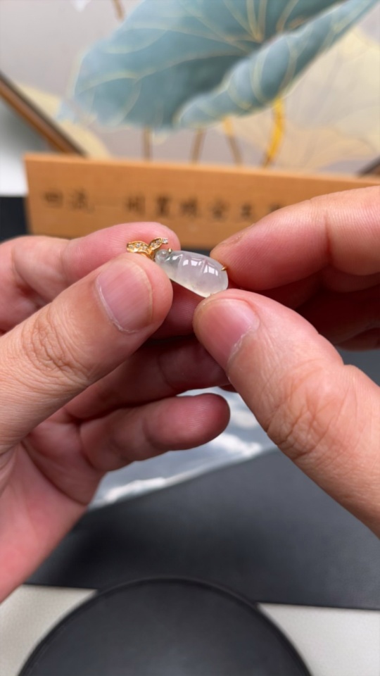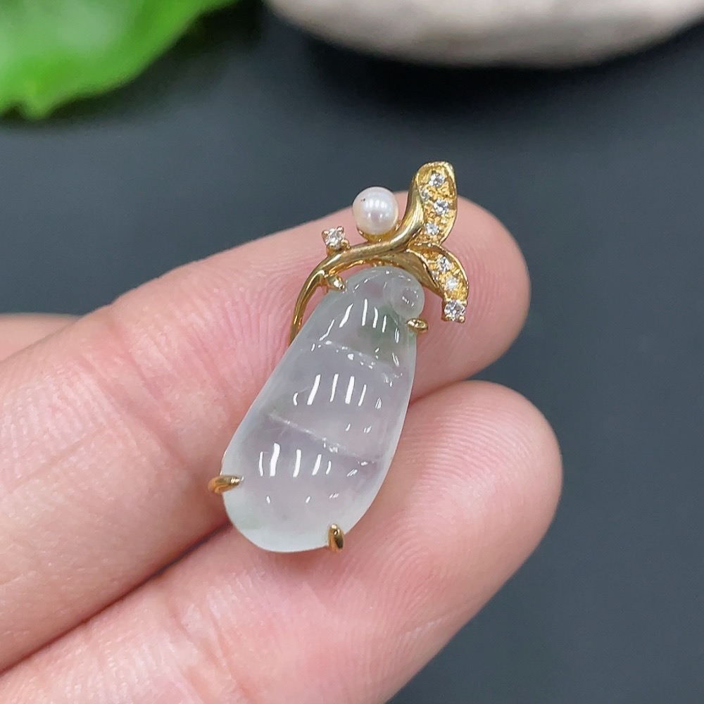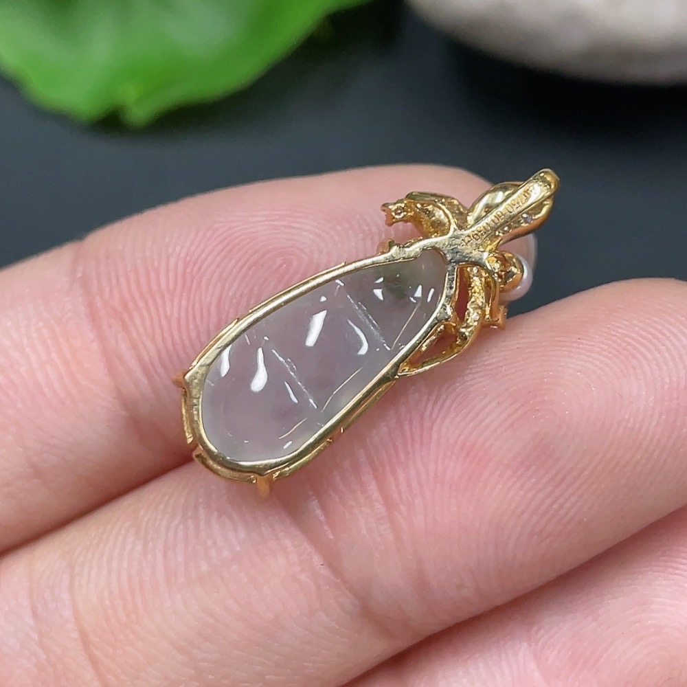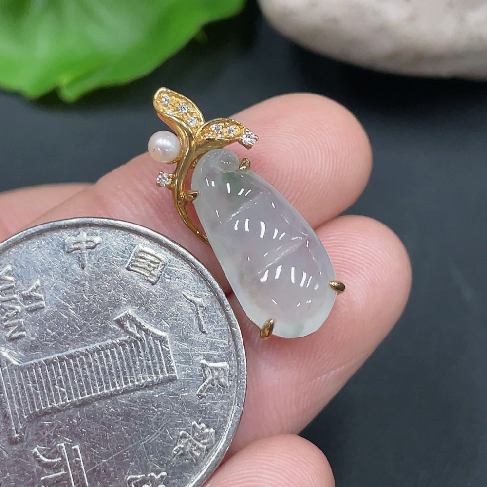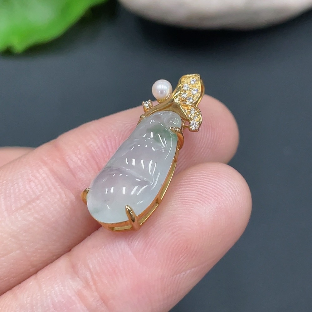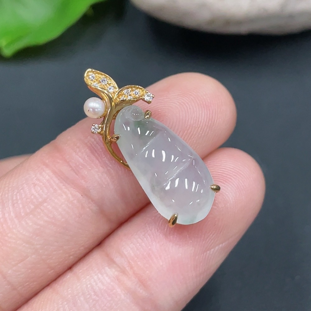 Jadeite Lucky Bean Pendant with 18K Gold Setting, Total Weight Approx. 1.96g, Non-Grade A Accompanying Beads