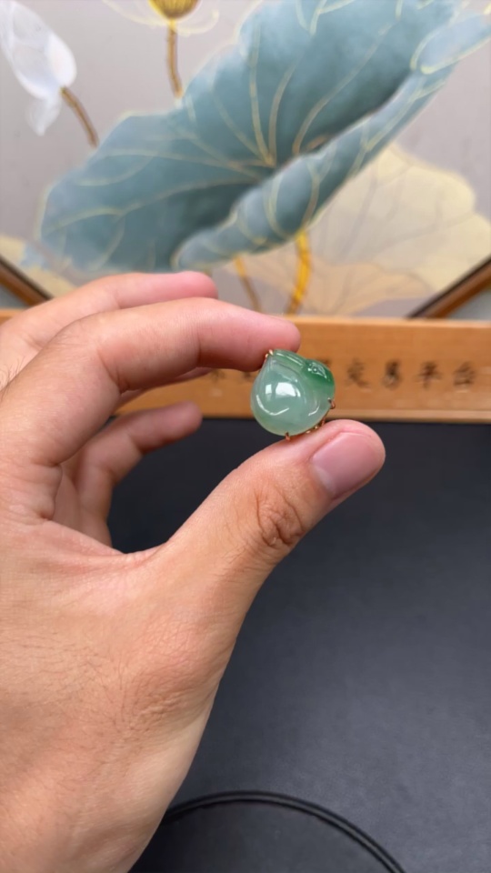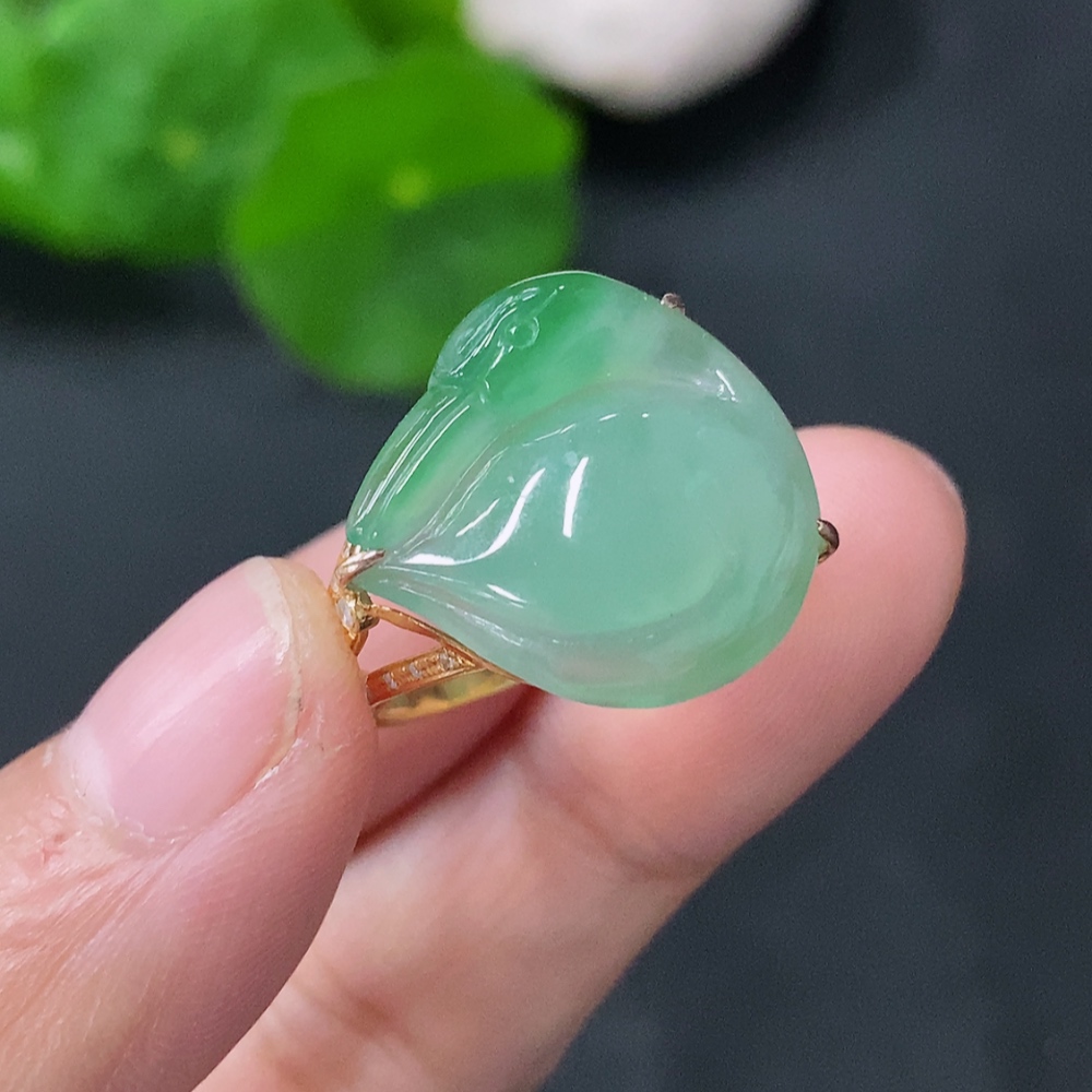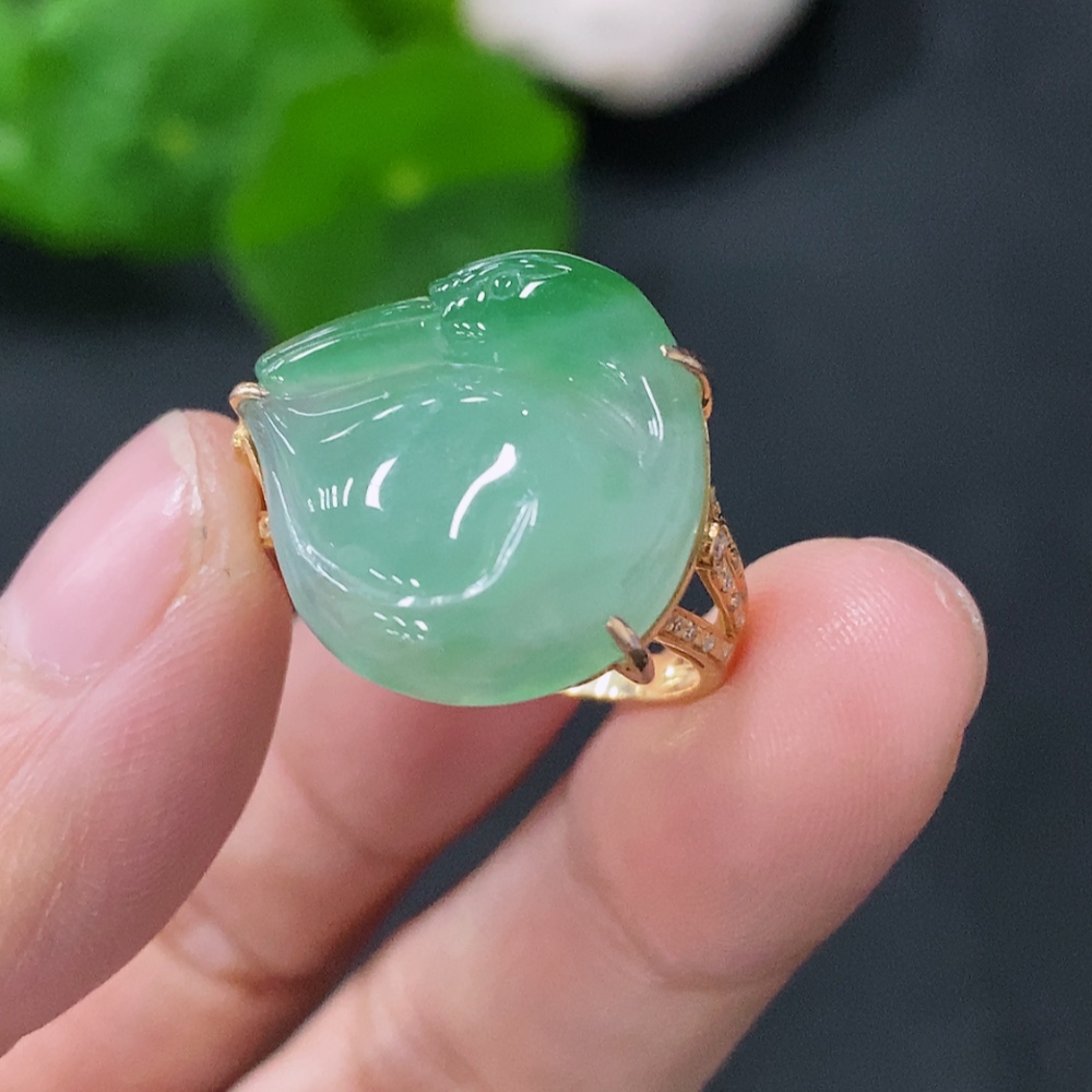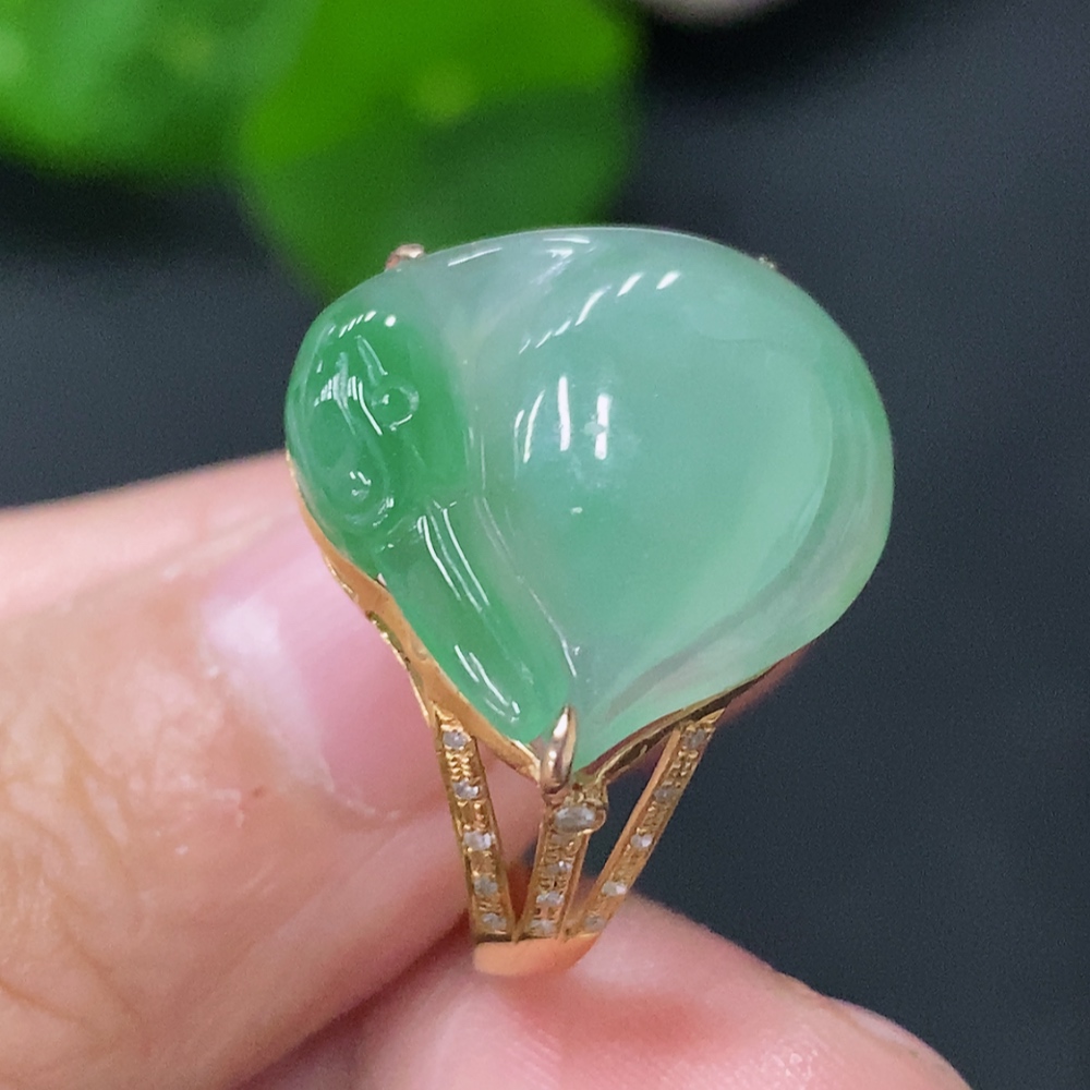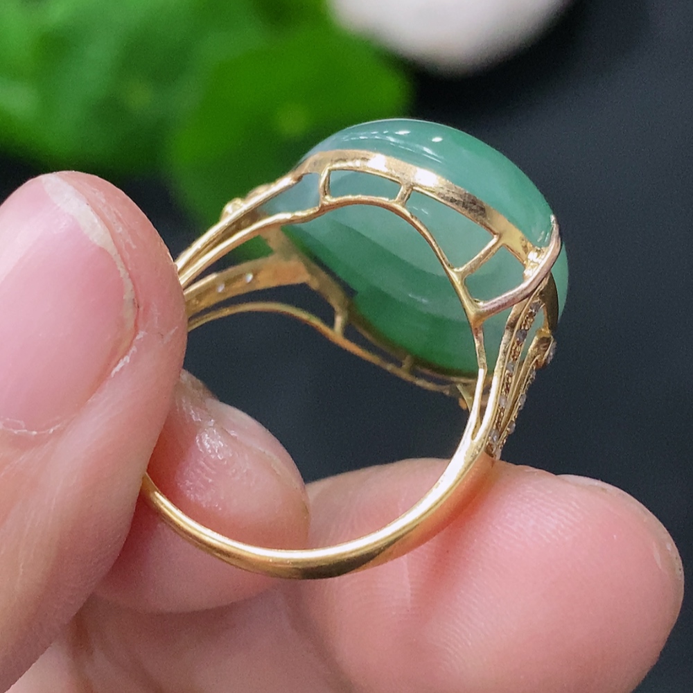 Jadeite Ring with 18K Gold Setting, Size 13, Total Weight 4.2g