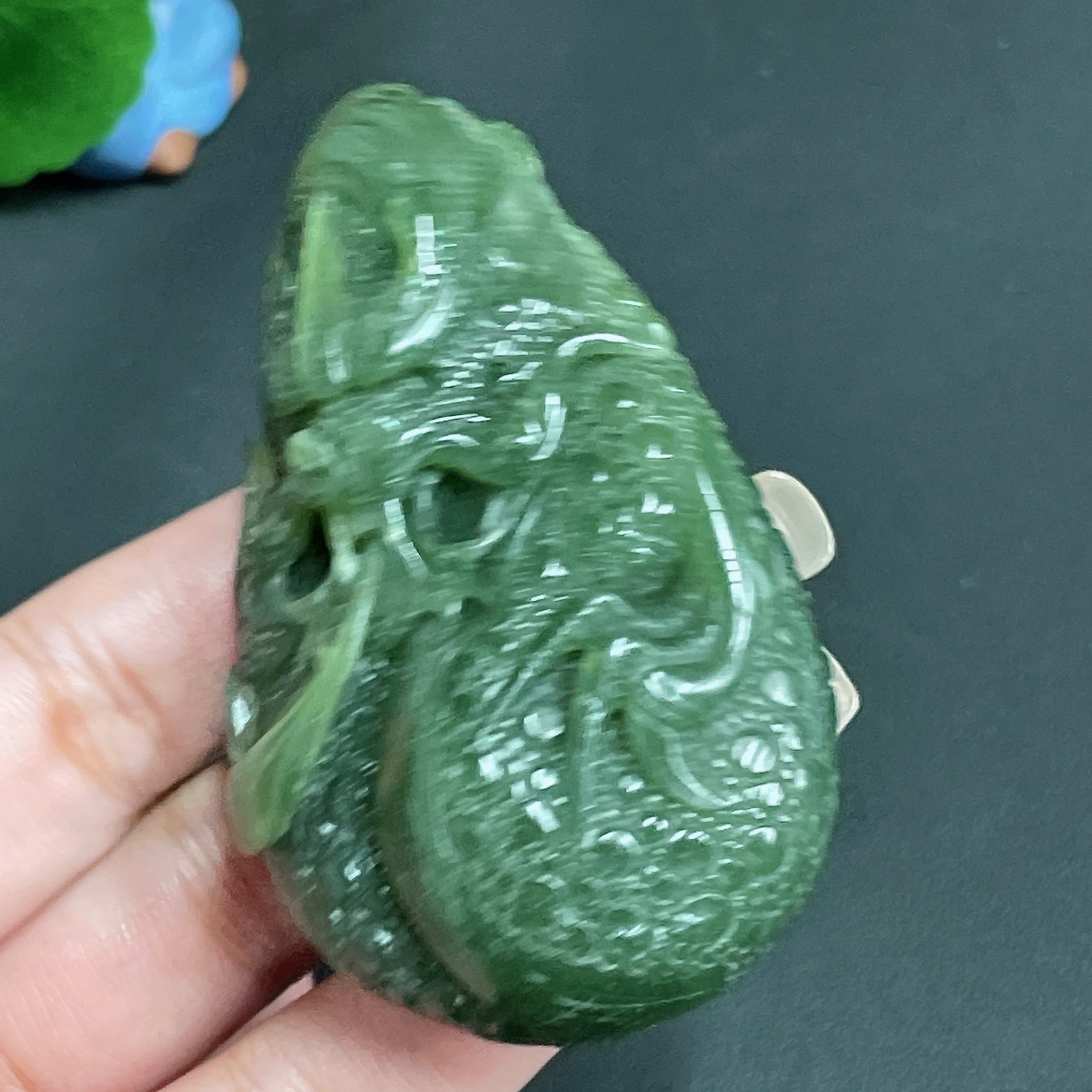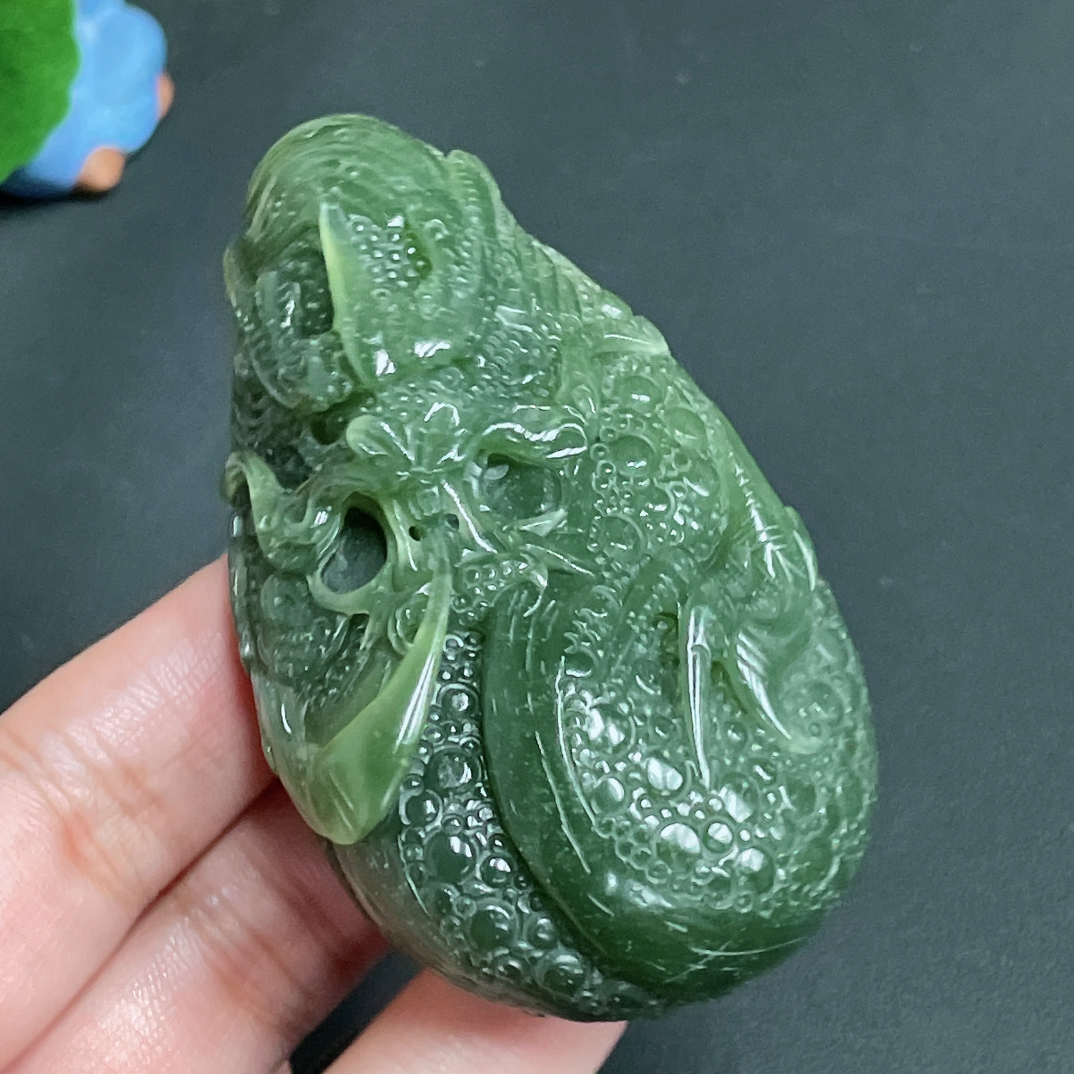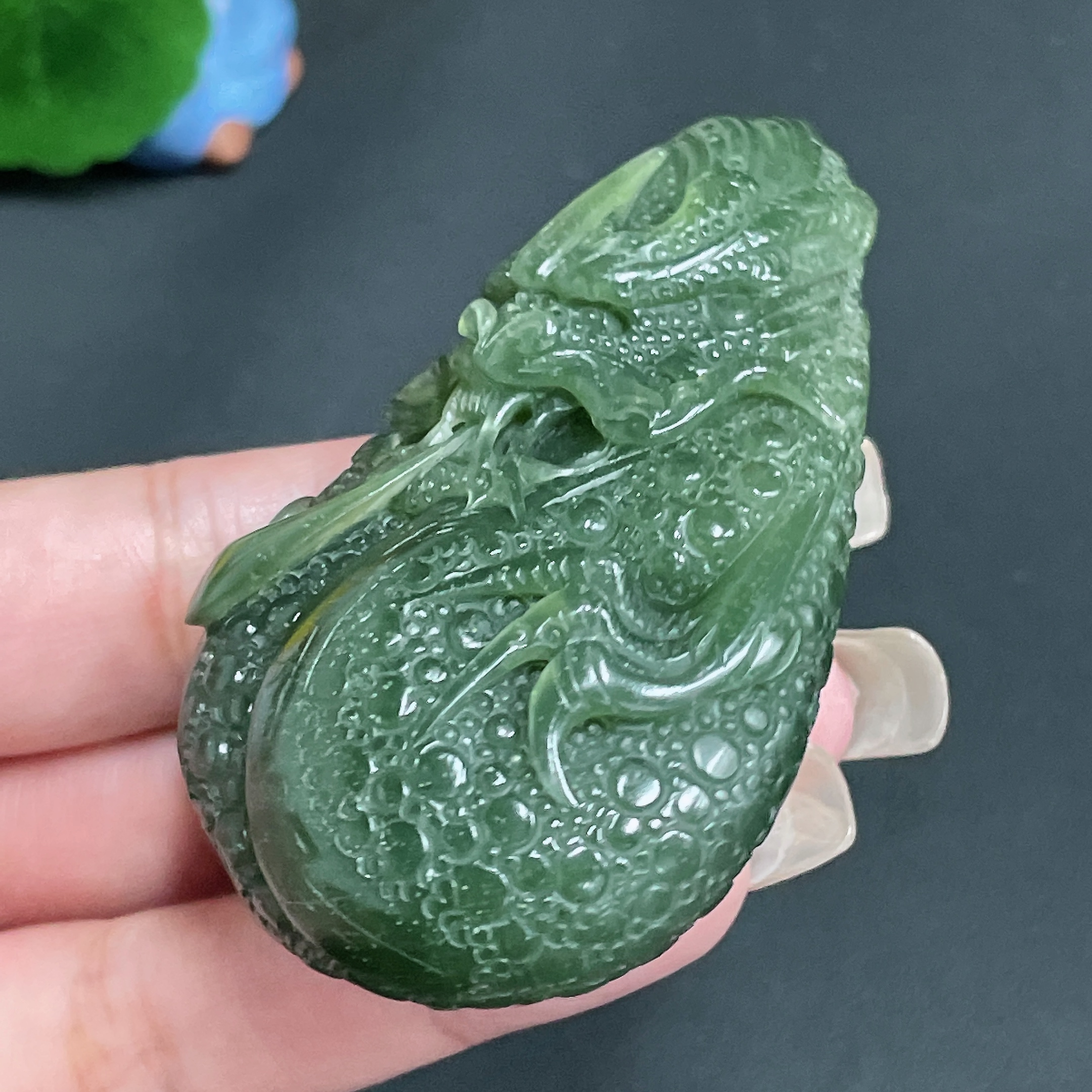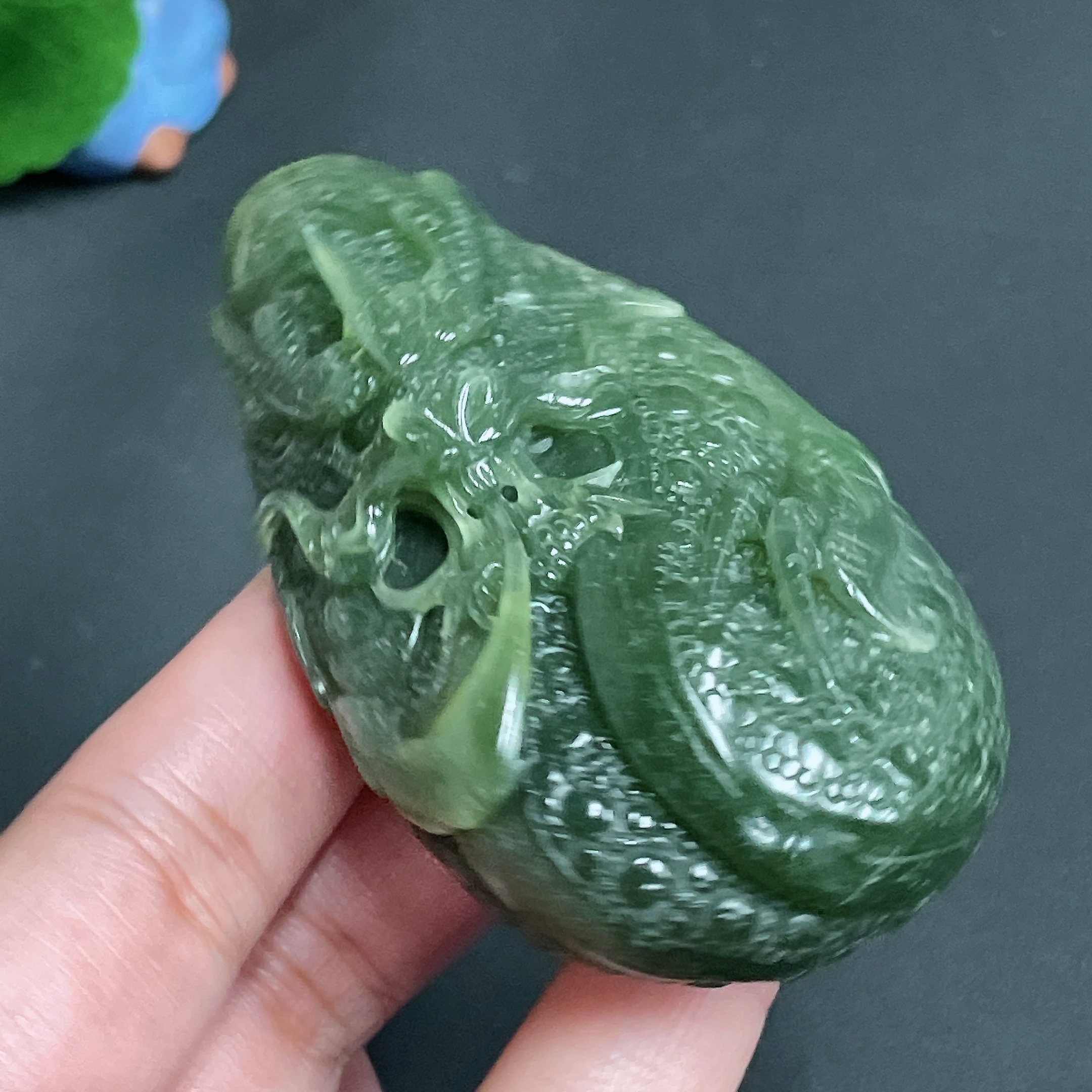 Hetian Jade Handheld Ornament "Dragon Dominates the World" Total Weight Approx. 111.18g