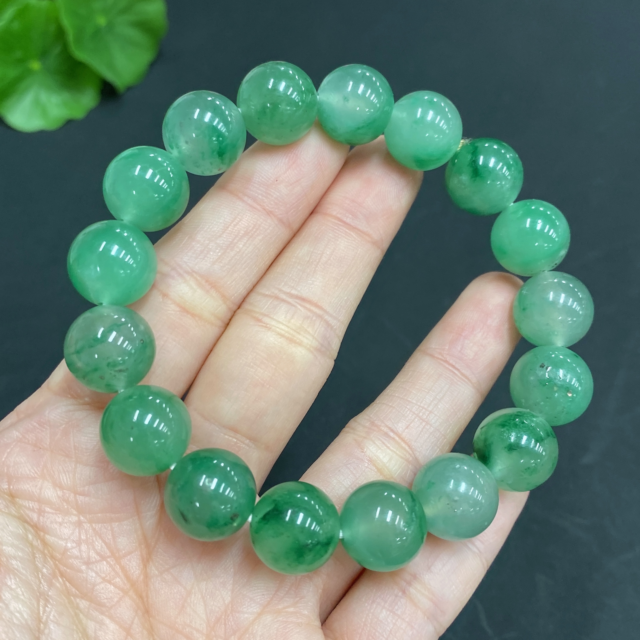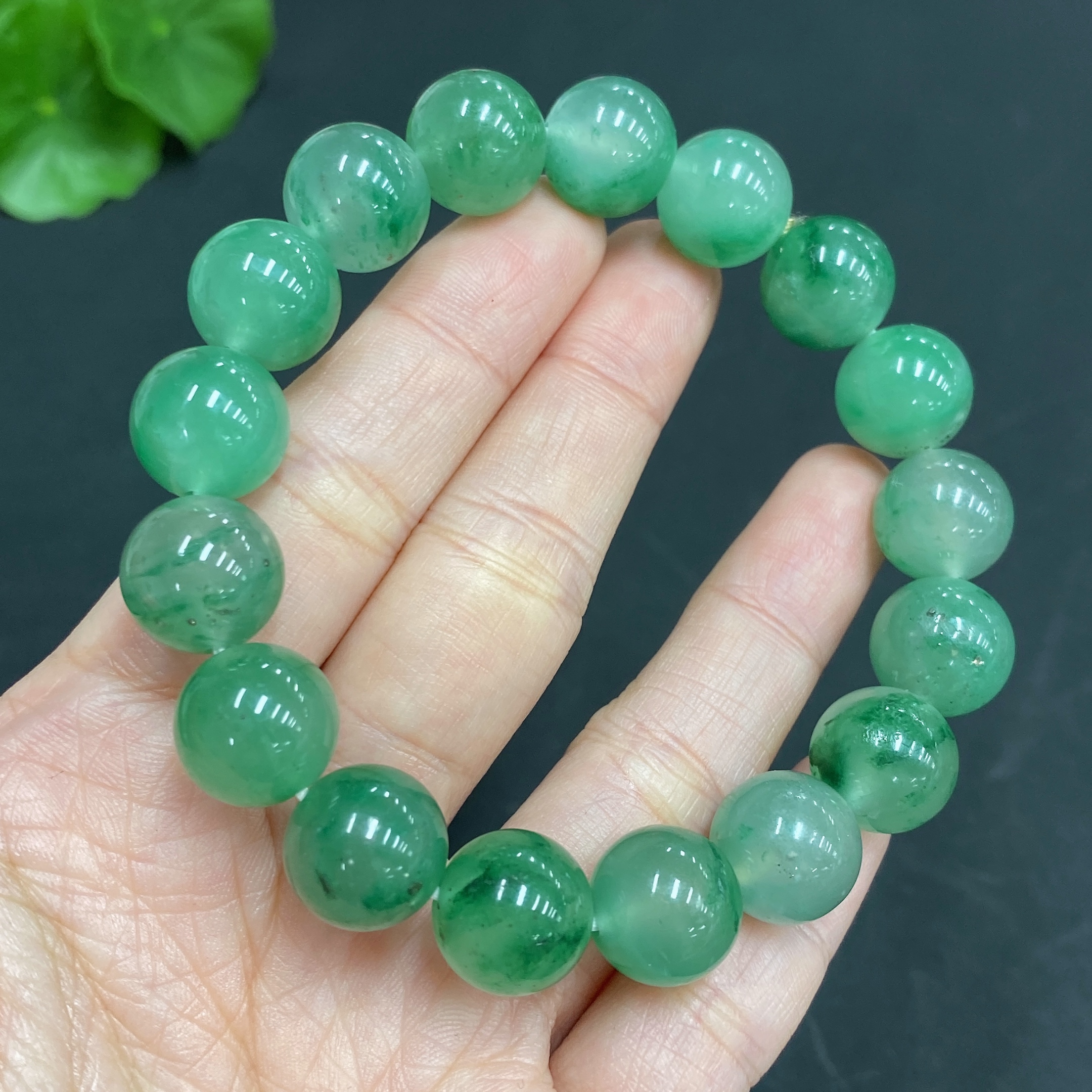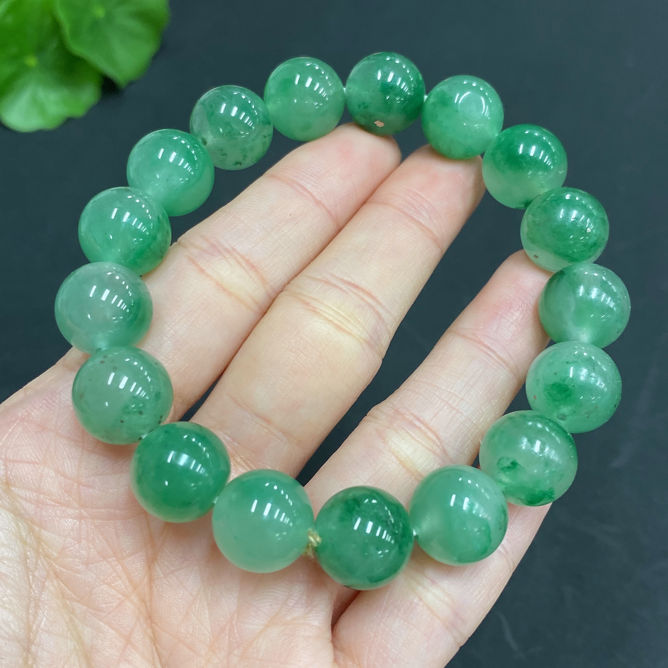 Dulong Jade Bracelet, approx. 11.7mm beads, total weight about 40.5g