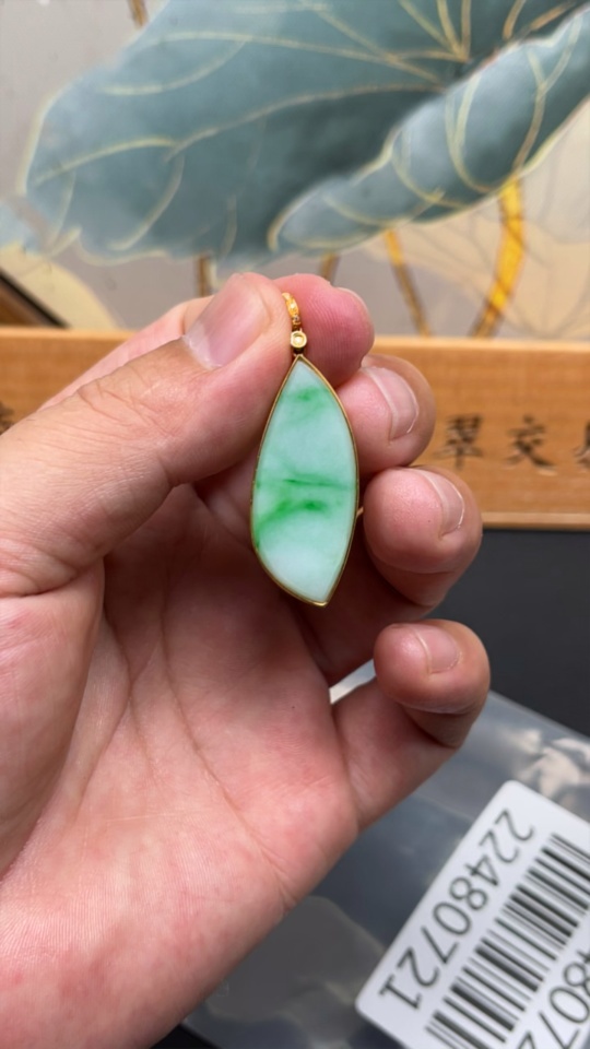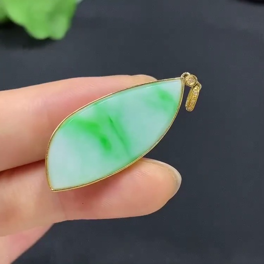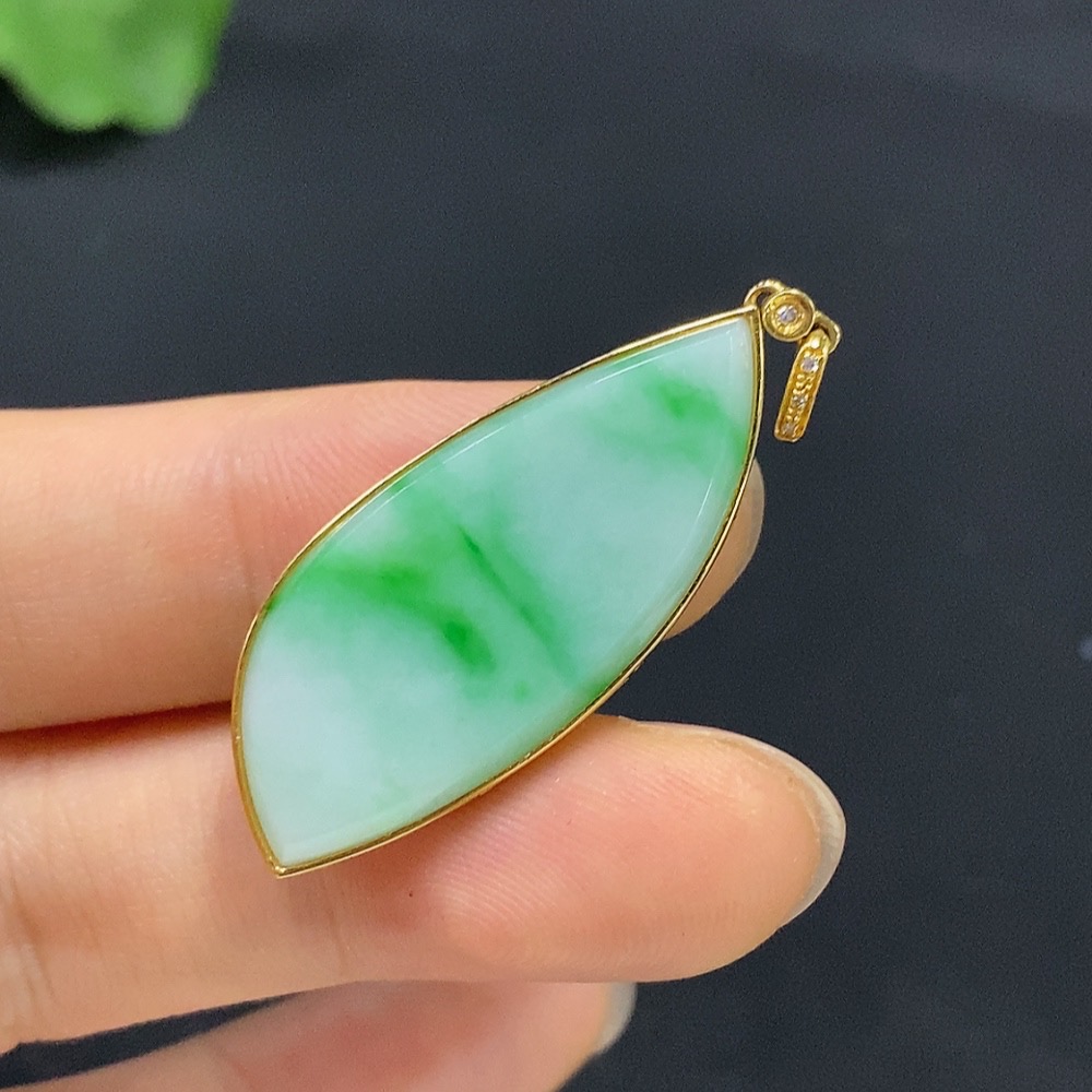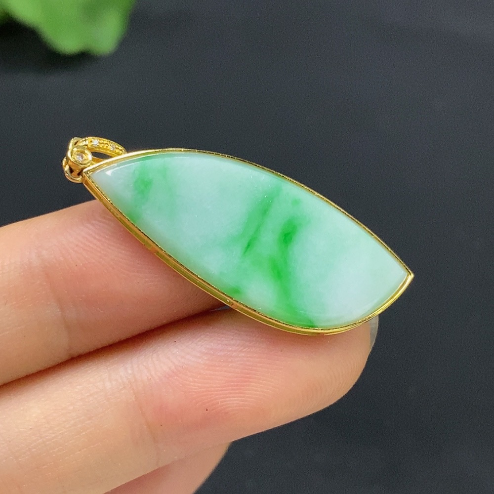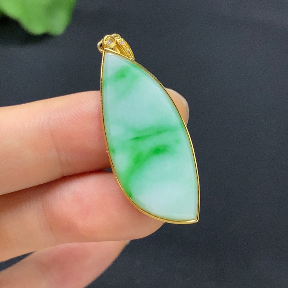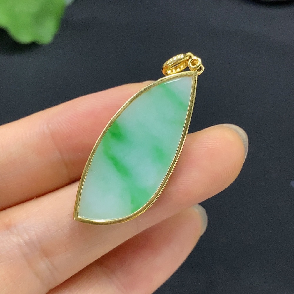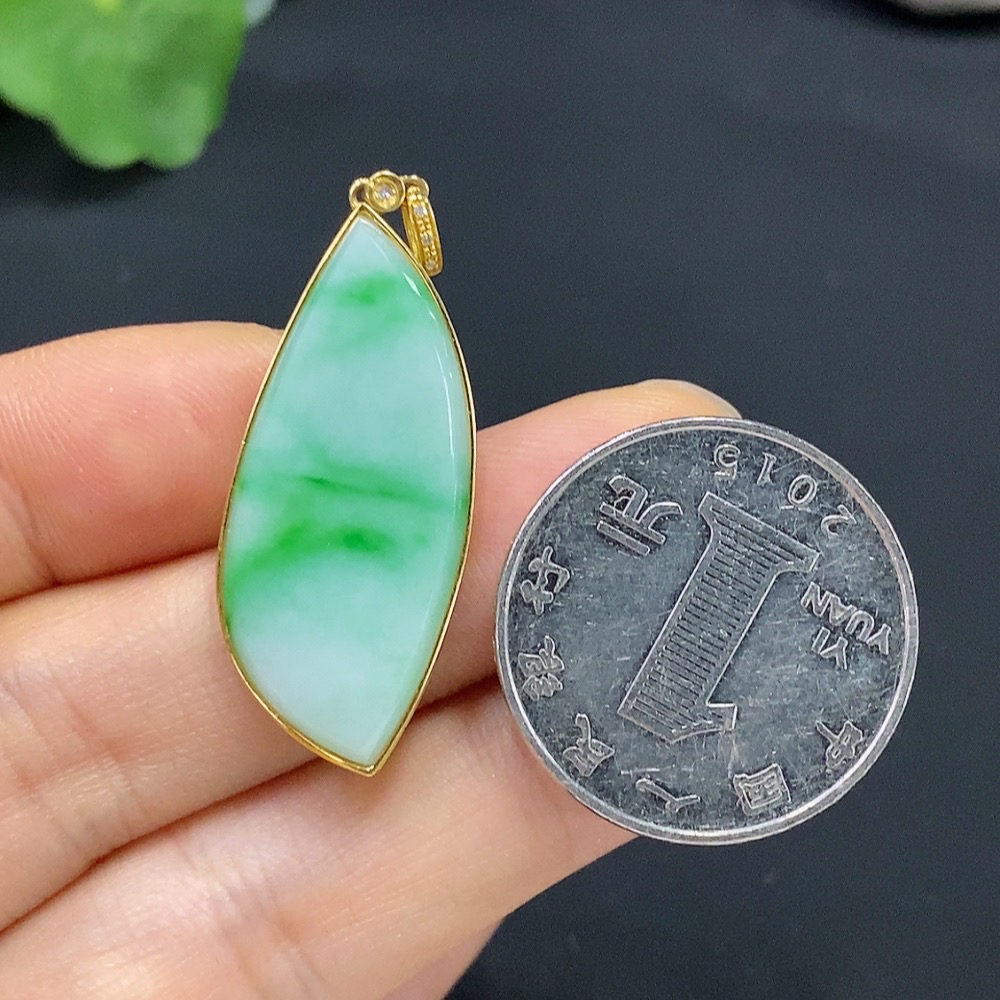 Jadeite Plain Pendant 18K Gold Total Weight Approx. 3.9g