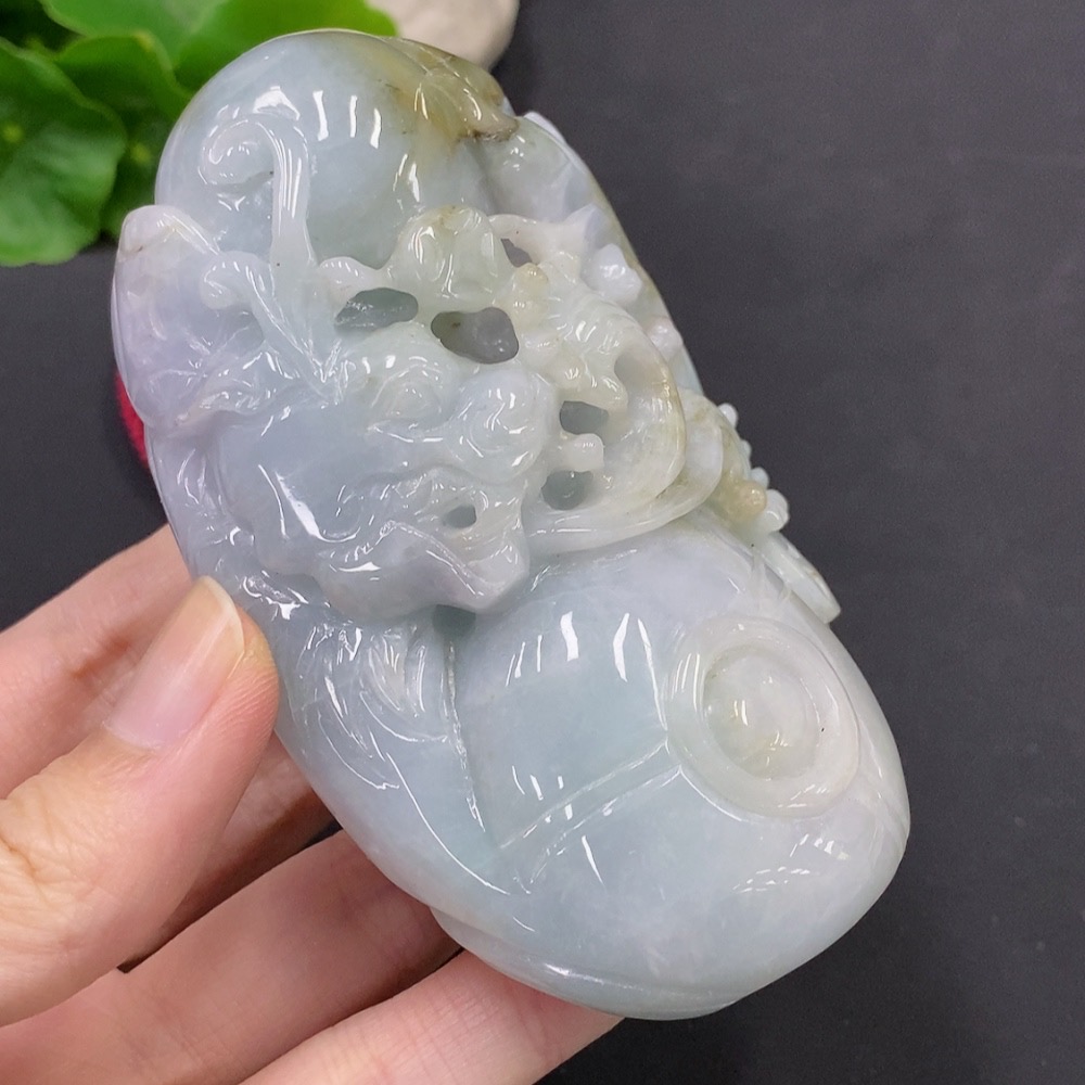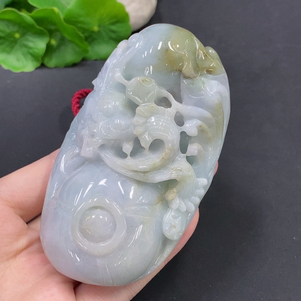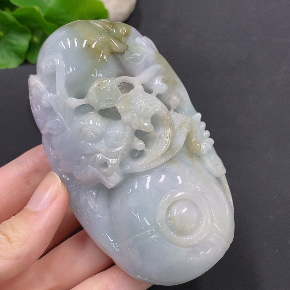 Jadeite Dragon Handheld Carving, Total Weight 348.676g