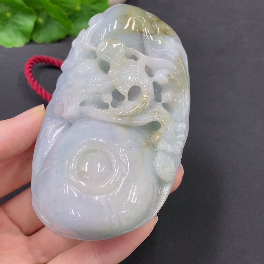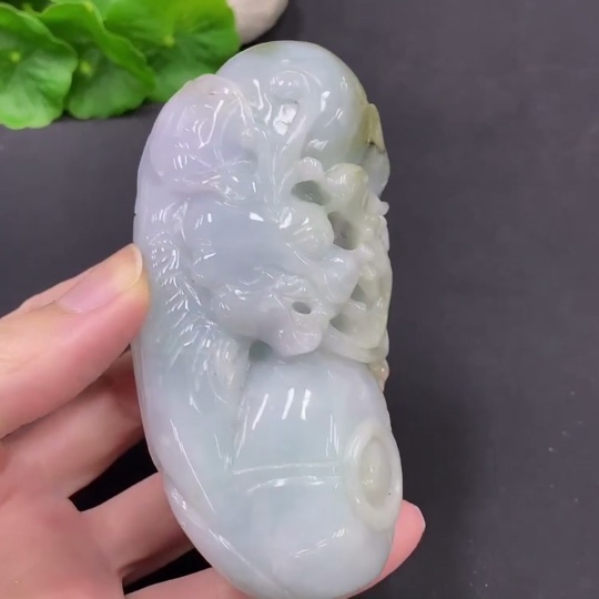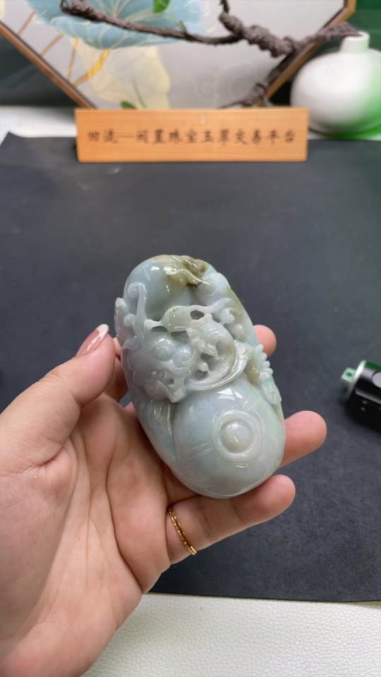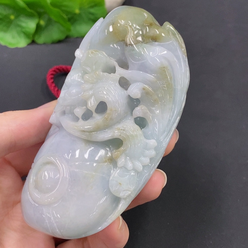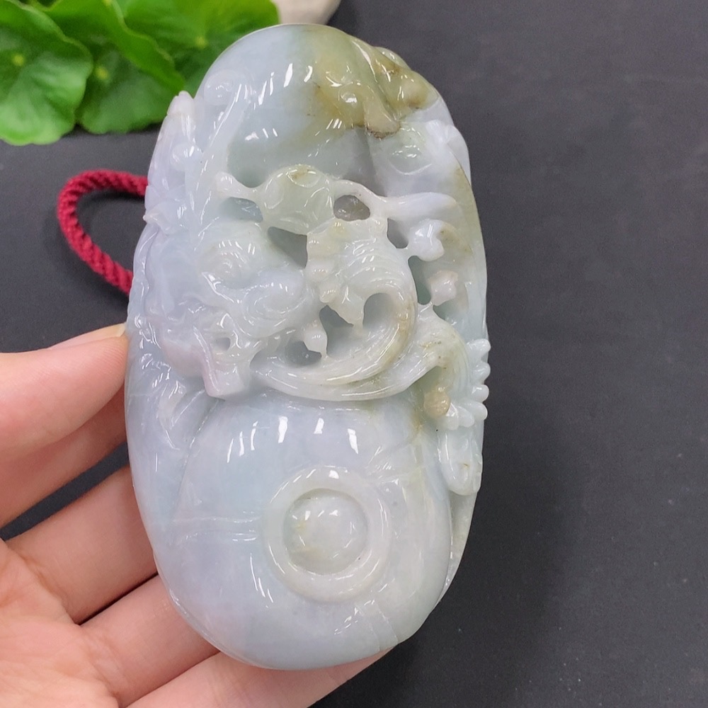 Jadeite Dragon Handheld Carving, Total Weight 348.676g