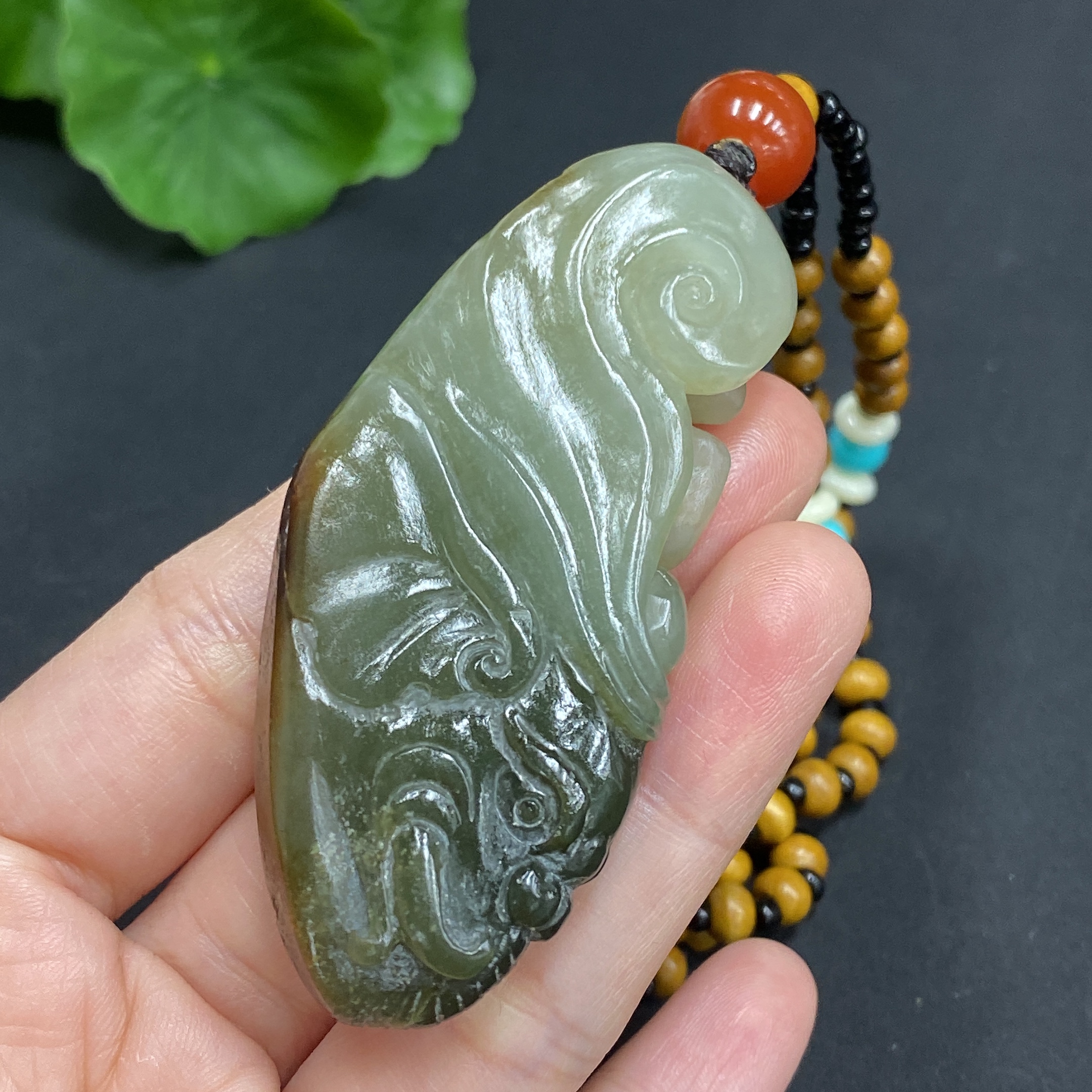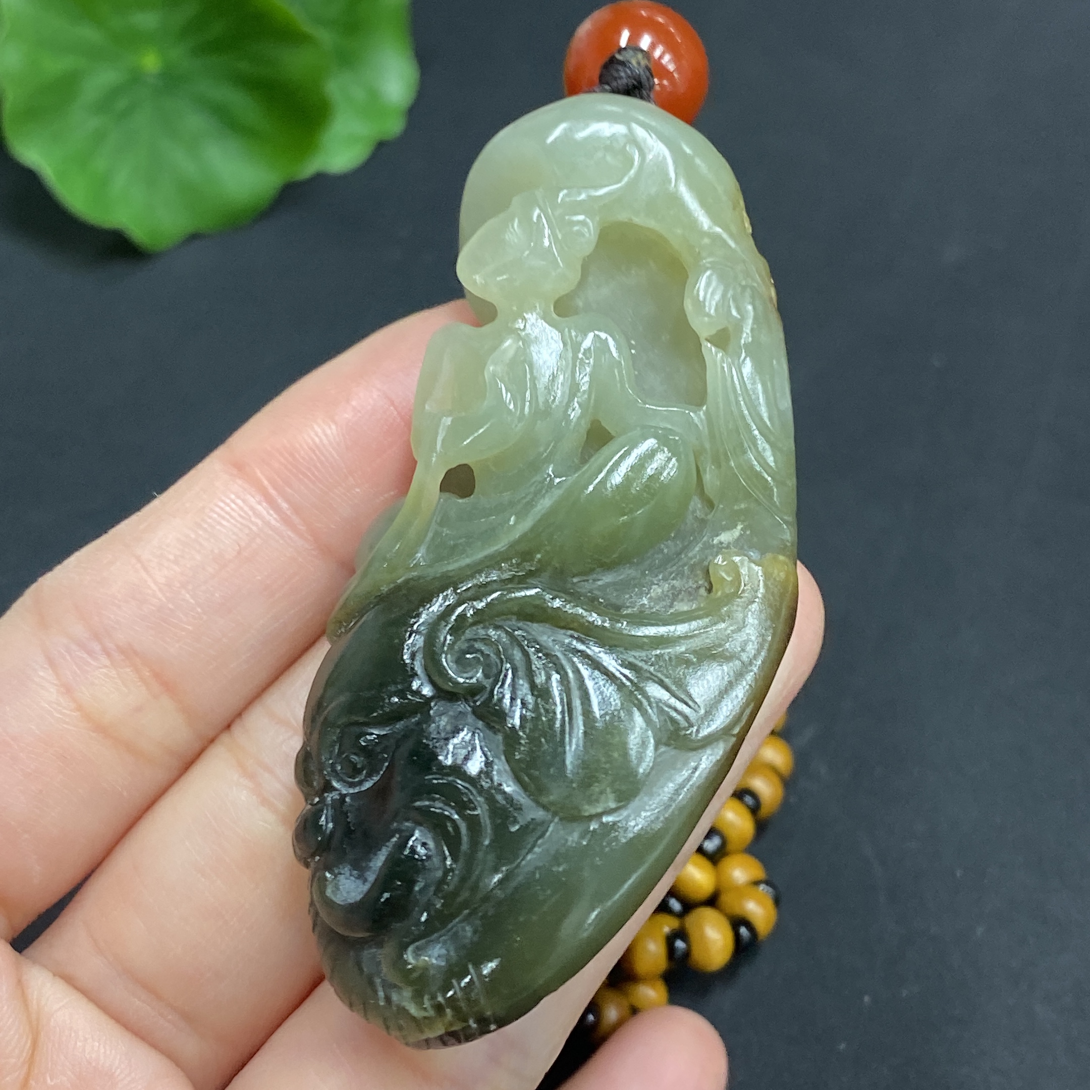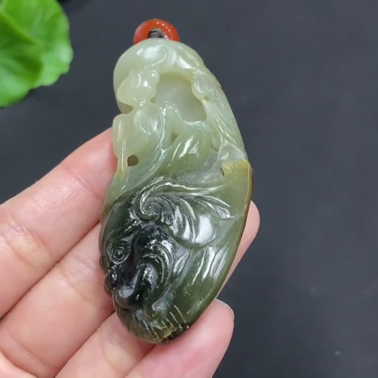 Hetian Jade Pendant: Samantabhadra Bodhisattva, total weight approx. 45.4g (including non-Hetian Jade chain), undetermined skin color origin