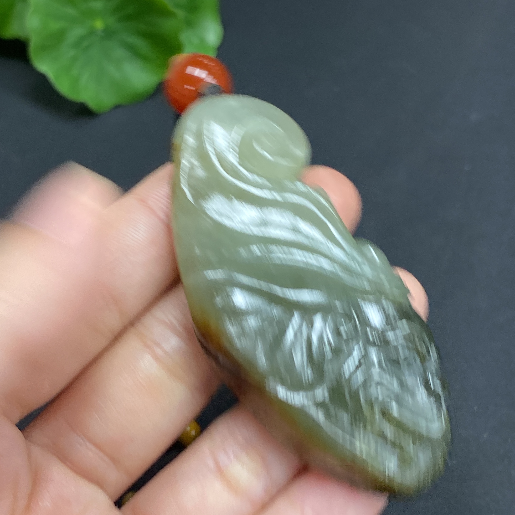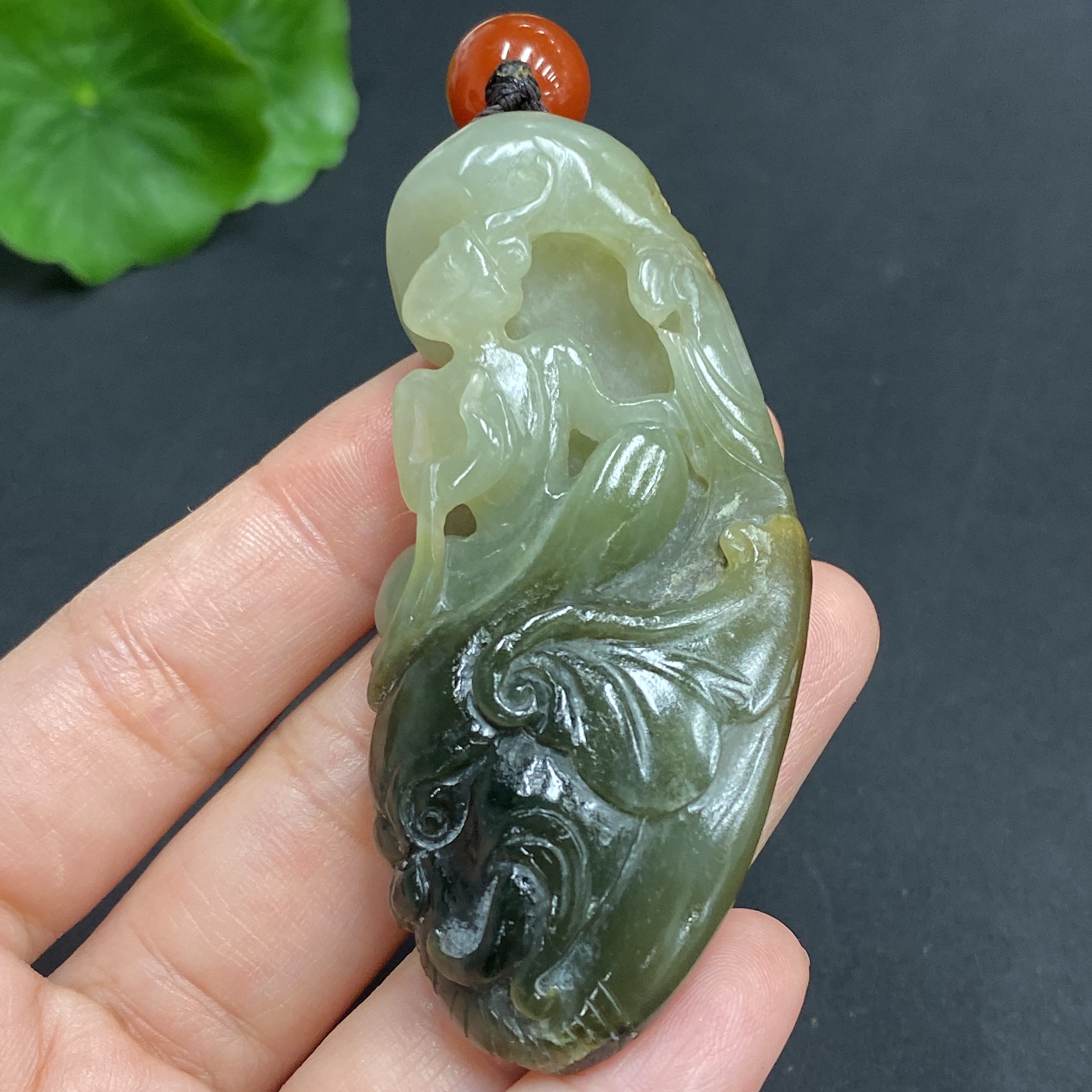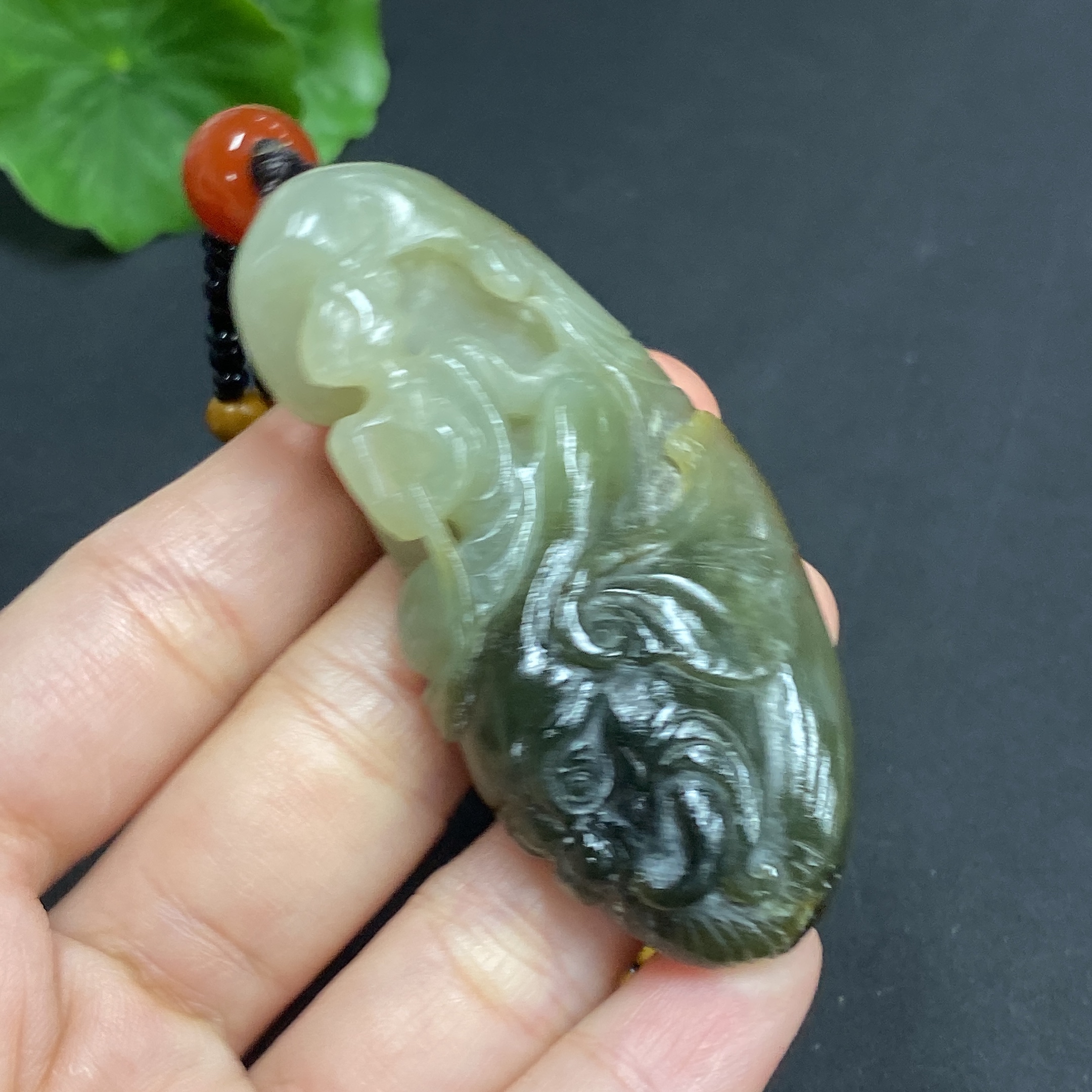 Hetian Jade Pendant: Samantabhadra Bodhisattva, total weight approx. 45.4g (including non-Hetian Jade chain), undetermined skin color origin