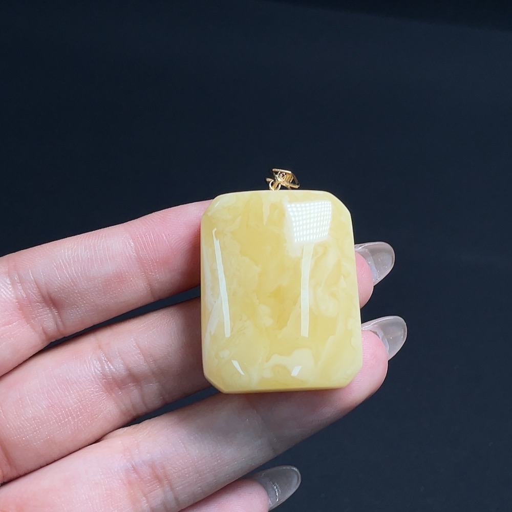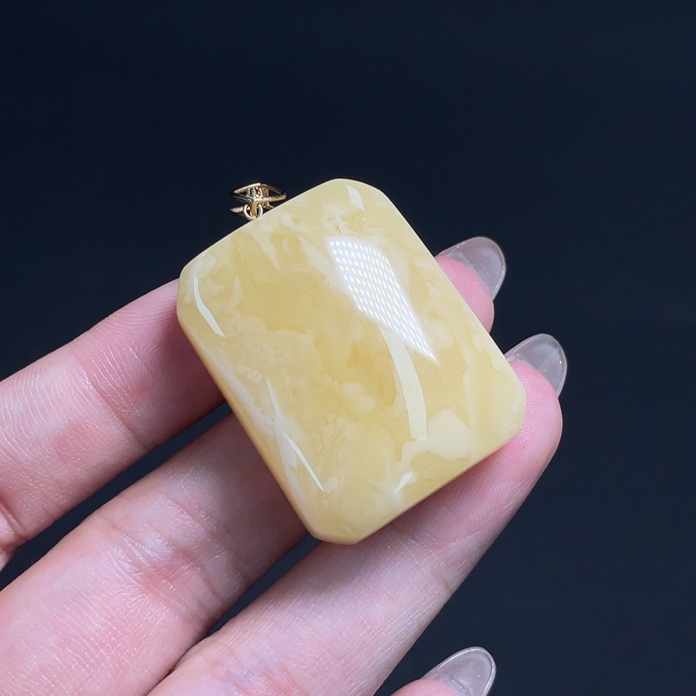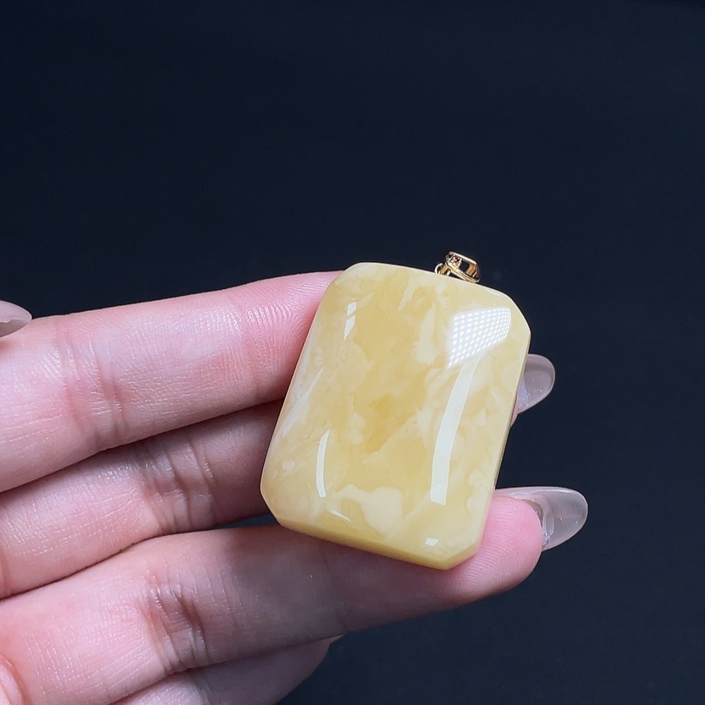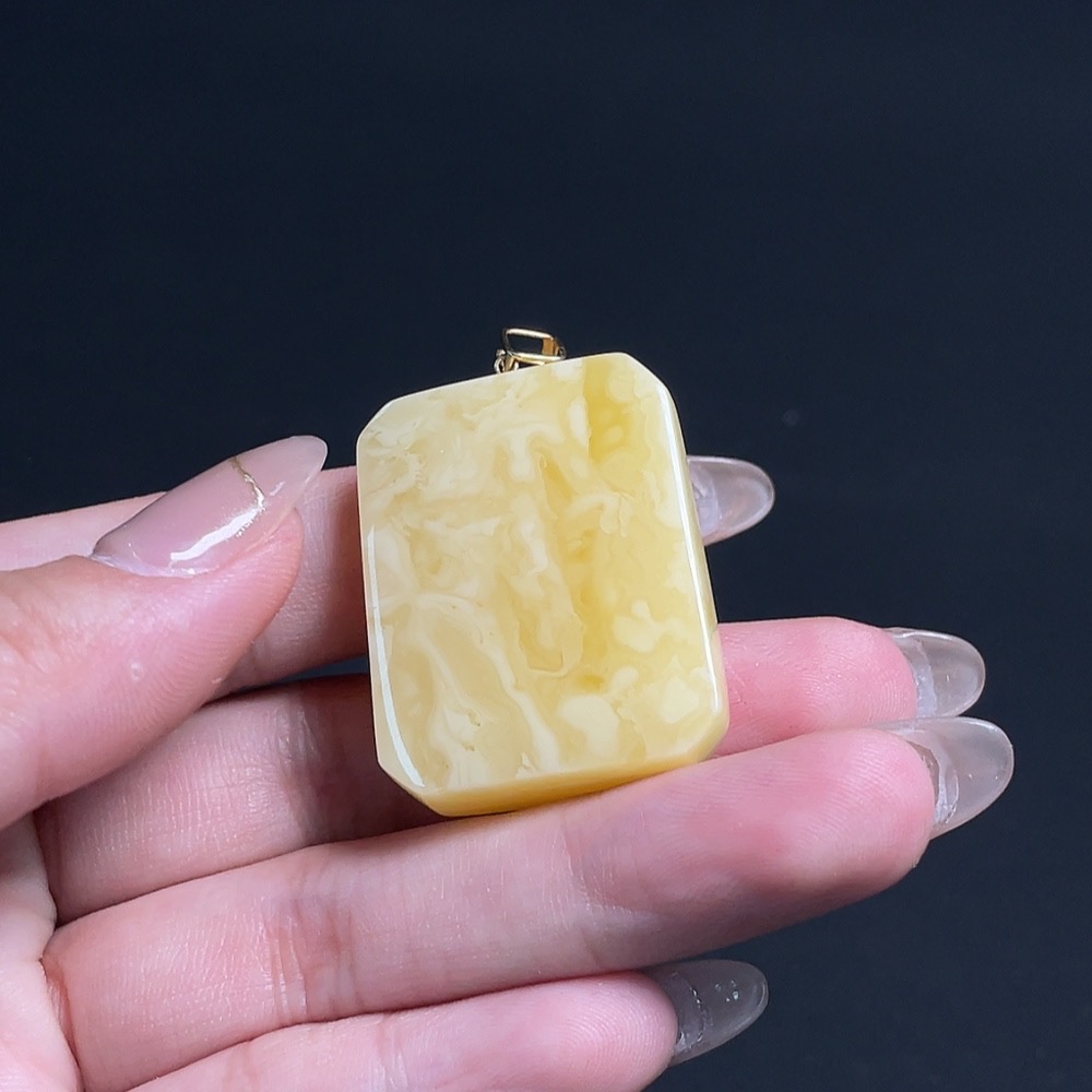 Amber and Beeswax Inlaid Pendant 18k Gold Total Weight Approx. 8.92g
