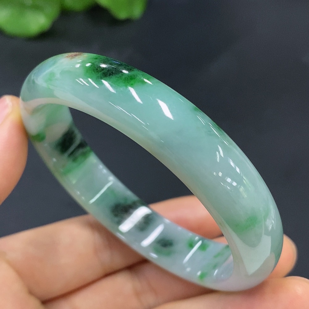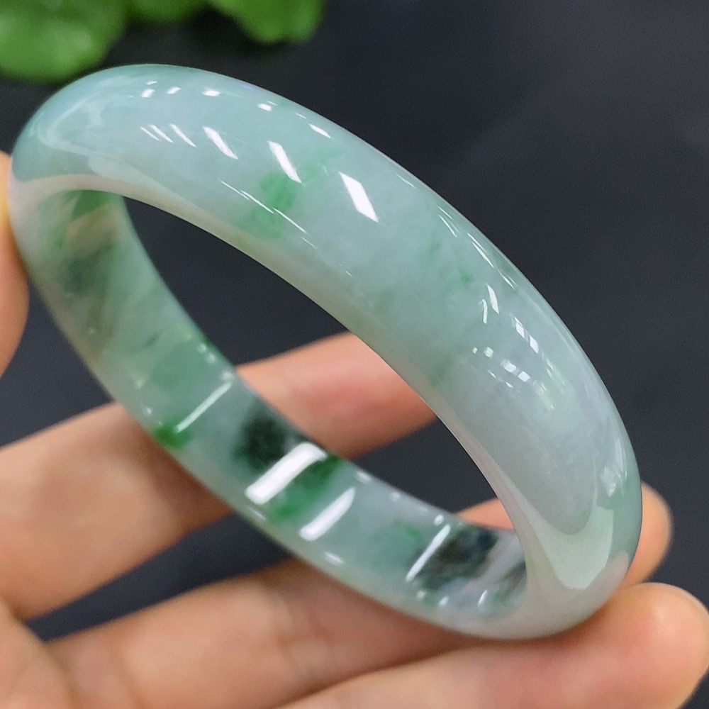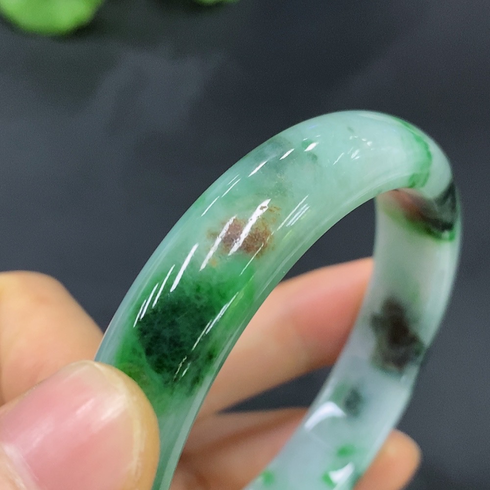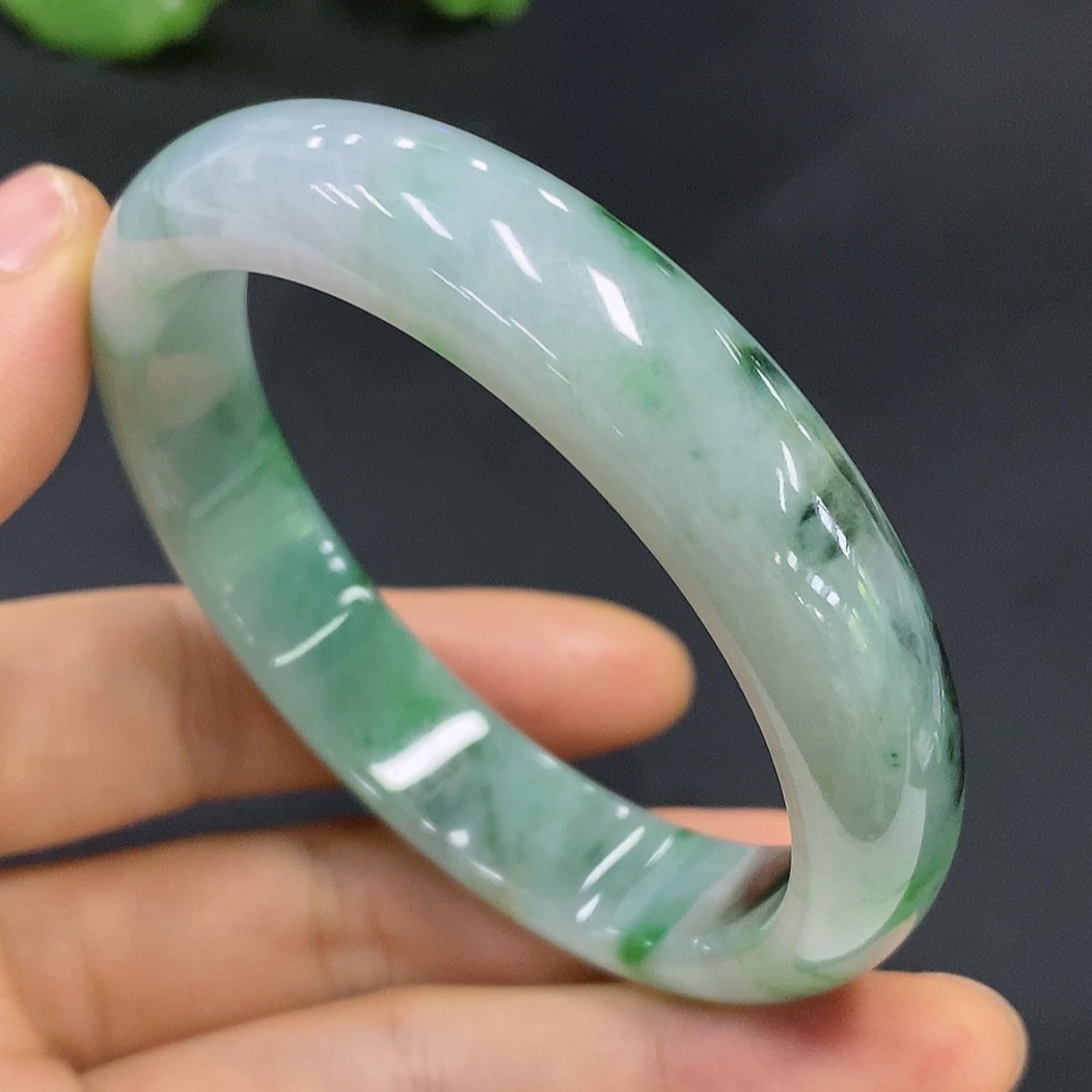 Jadeite Round Bracelet Size 55.3 with Other Mineral Components Total Weight 47.221g