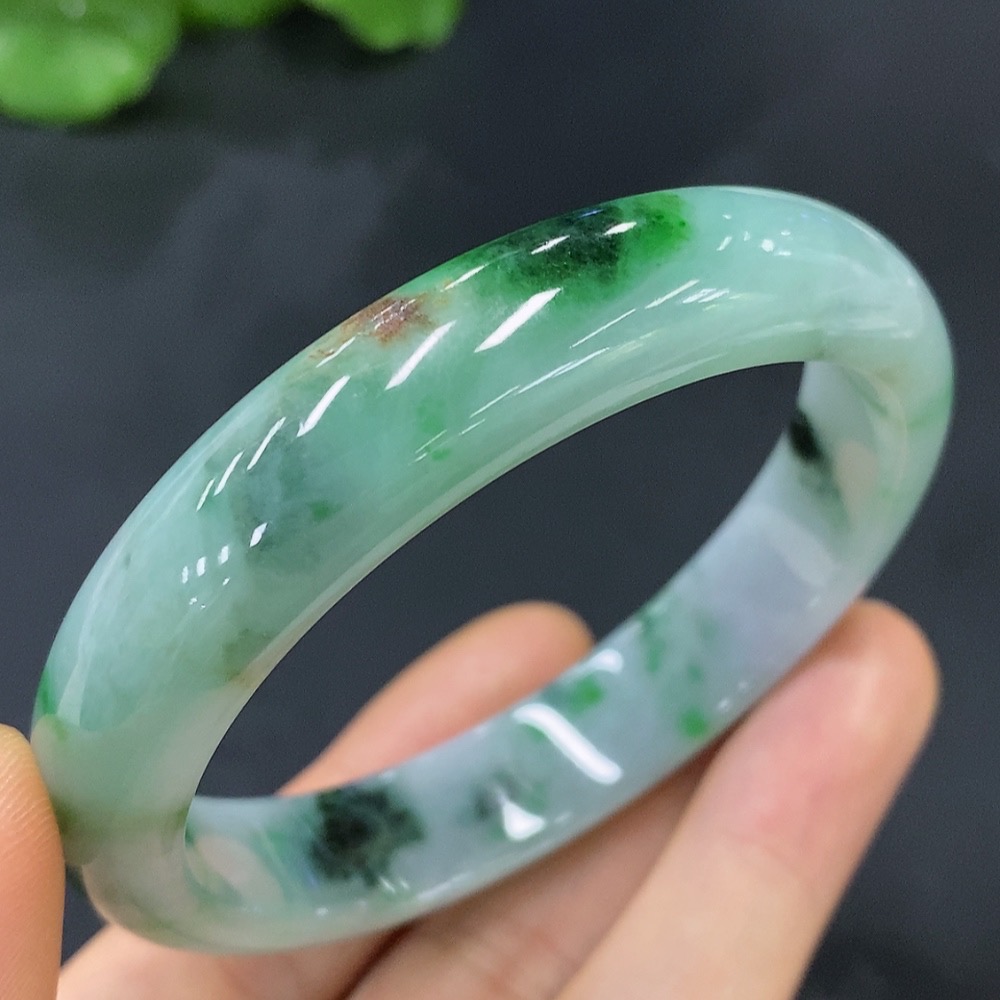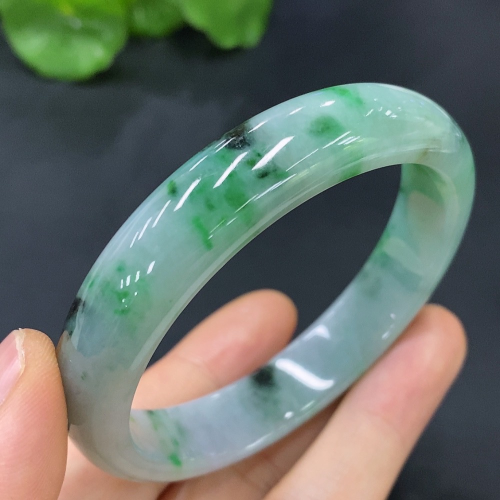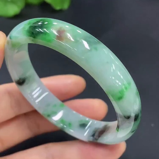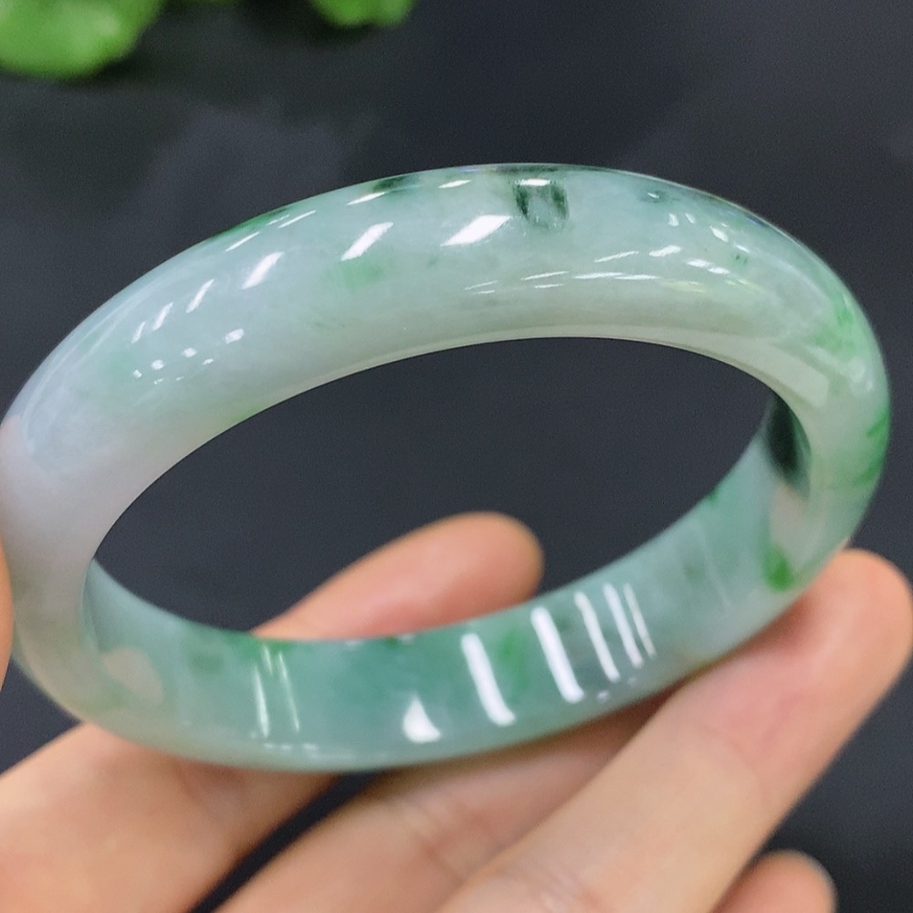 Jadeite Round Bracelet Size 55.3 with Other Mineral Components Total Weight 47.221g
