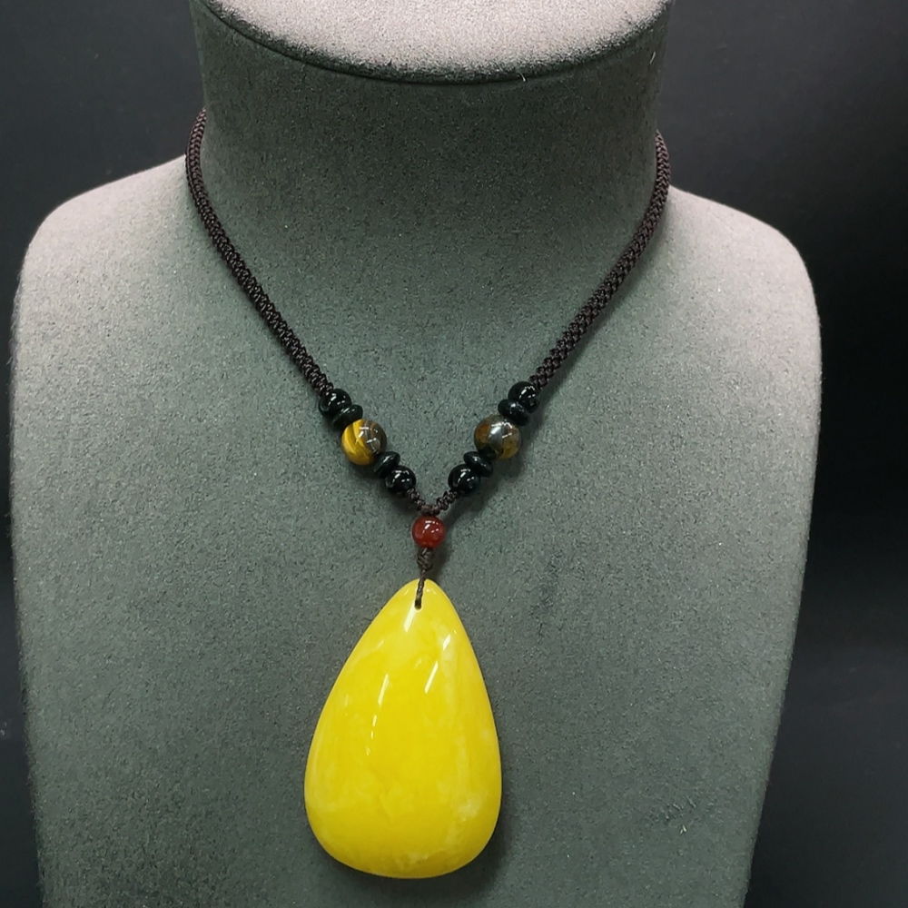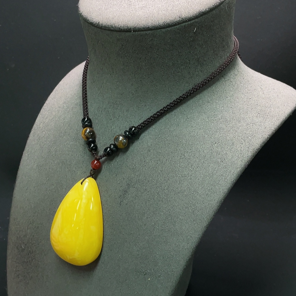 Amber Beeswax Pendant with Cord, Total Weight Approx. 25.92g