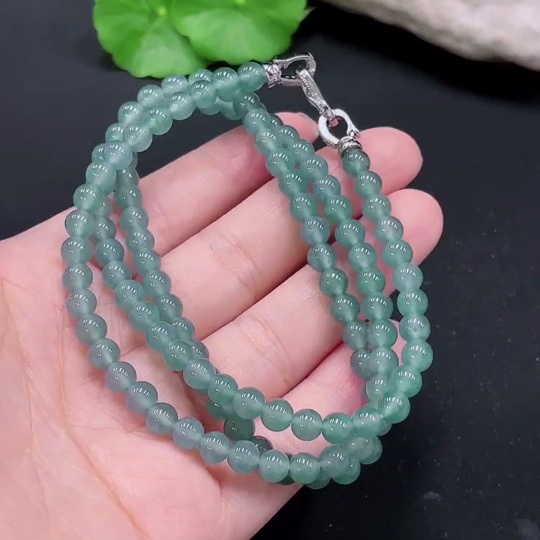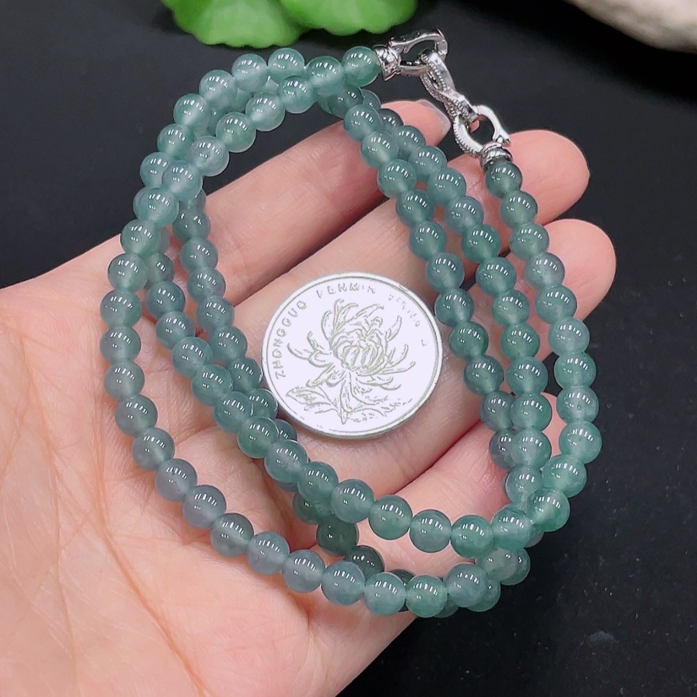 Jadeite bead necklace, approx. 5.6mm, non-gold inlaid, total weight 34.794g