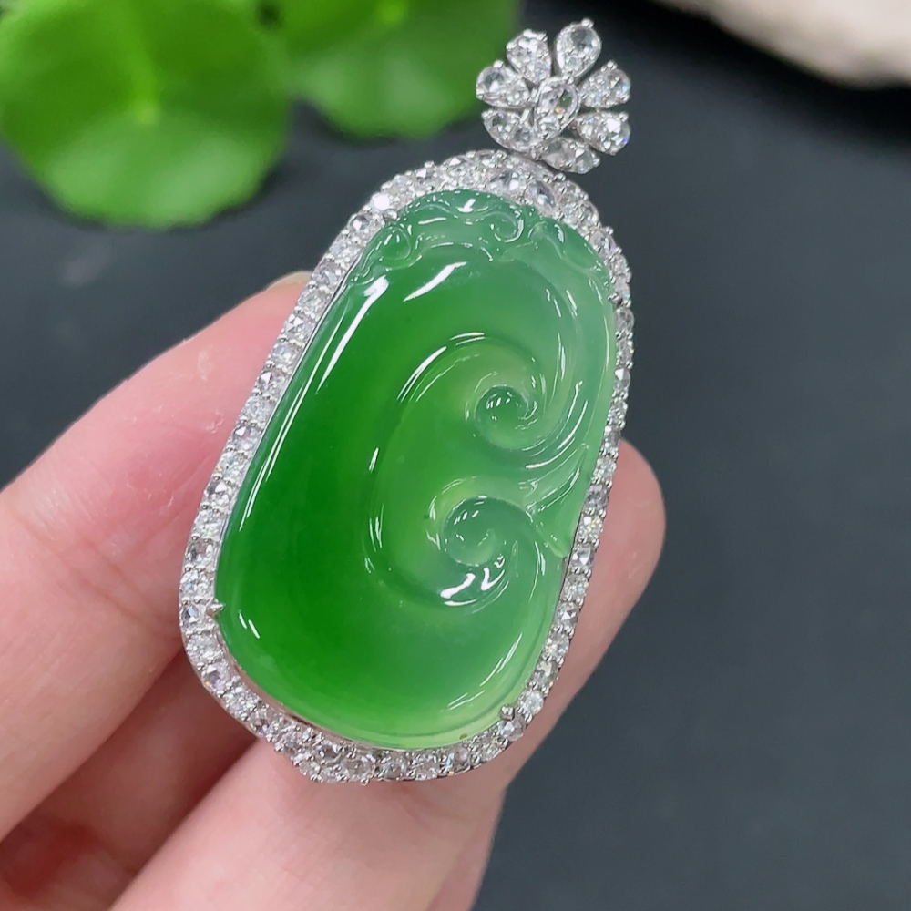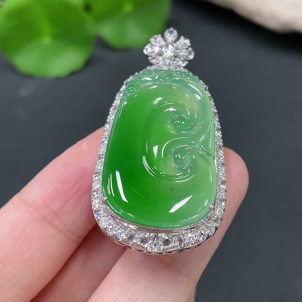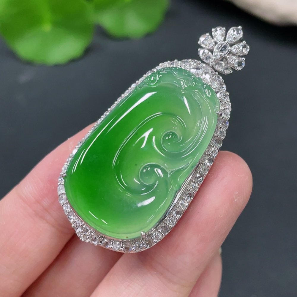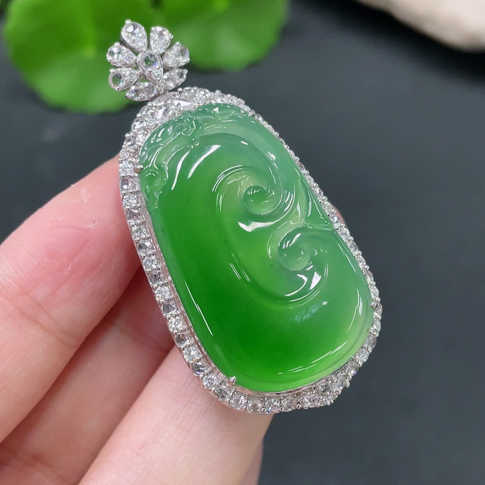 Jadeite Ruyi Inlaid Piece 18k Gold Inlaid Total Weight Approx. 11.61g