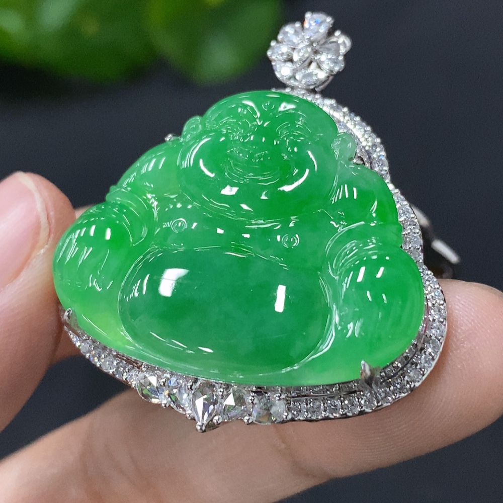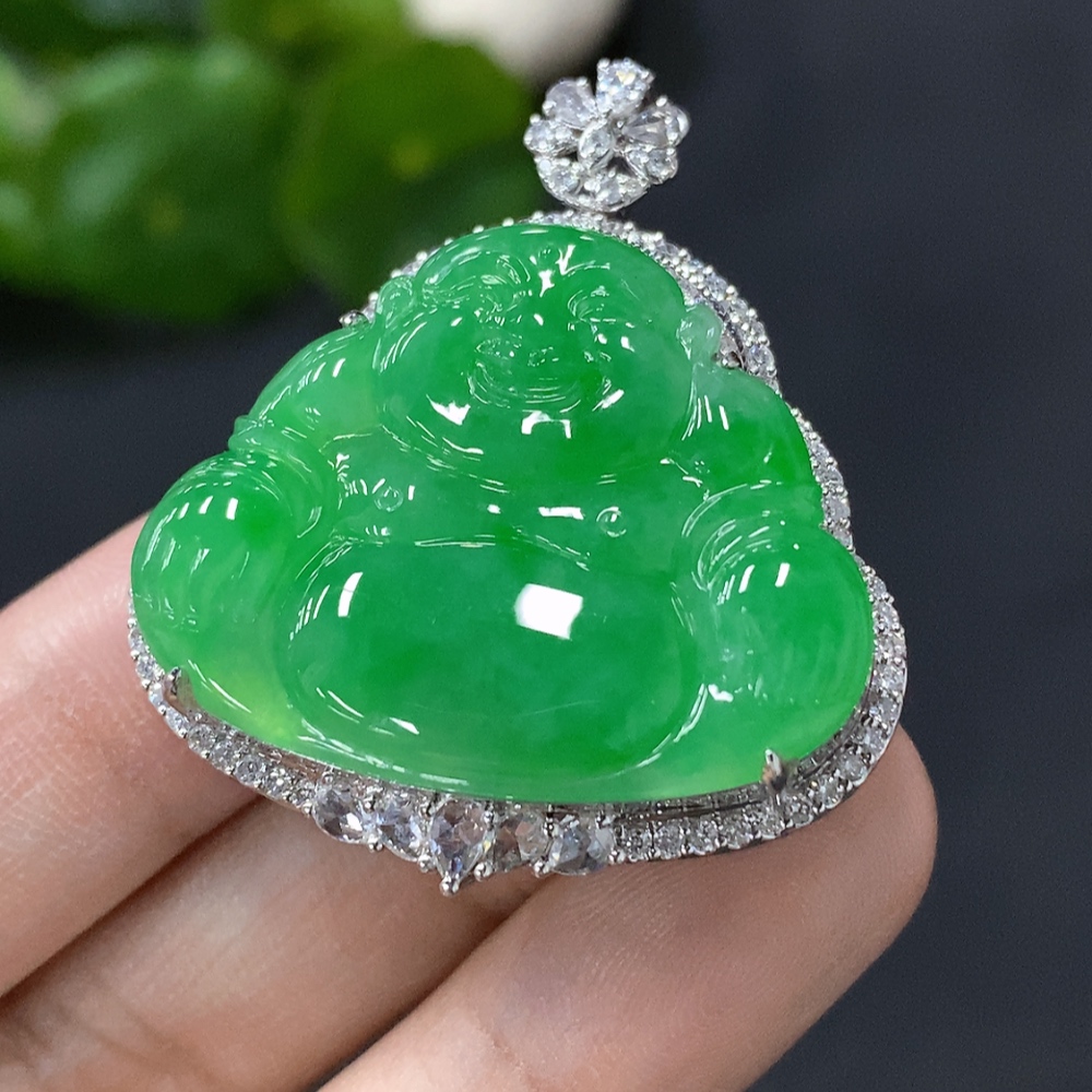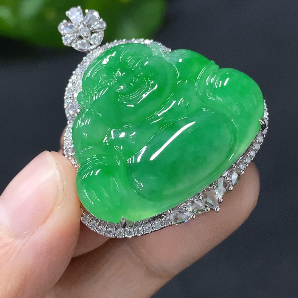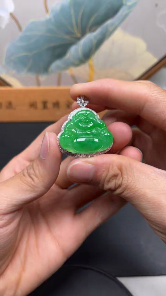 Jadeite Buddha Pendant with 18k Gold Setting, Total Weight Approximately 13.9g