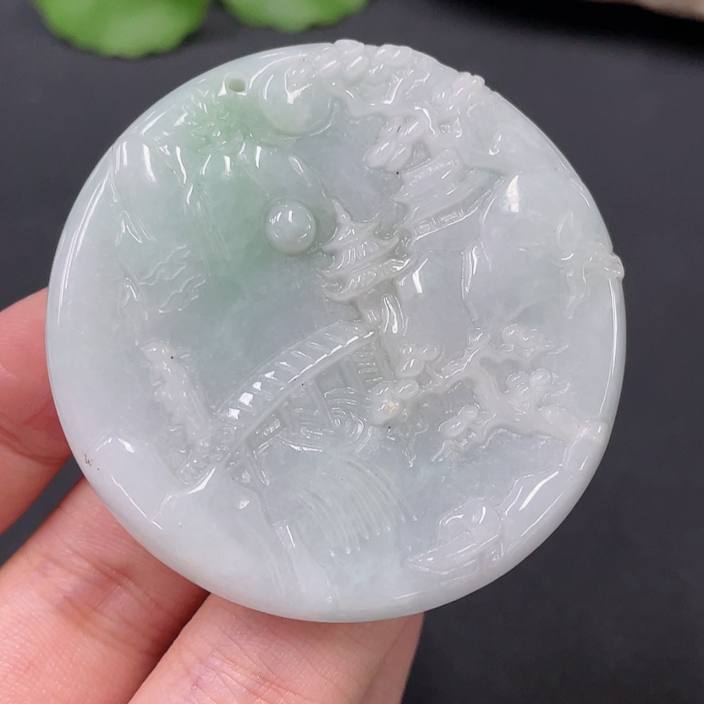 Jadeite Landscape Pendant with Crack, Total Weight 37.994g