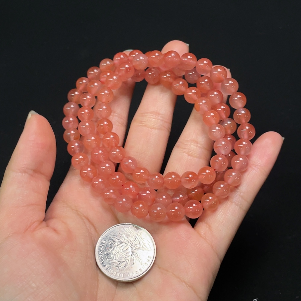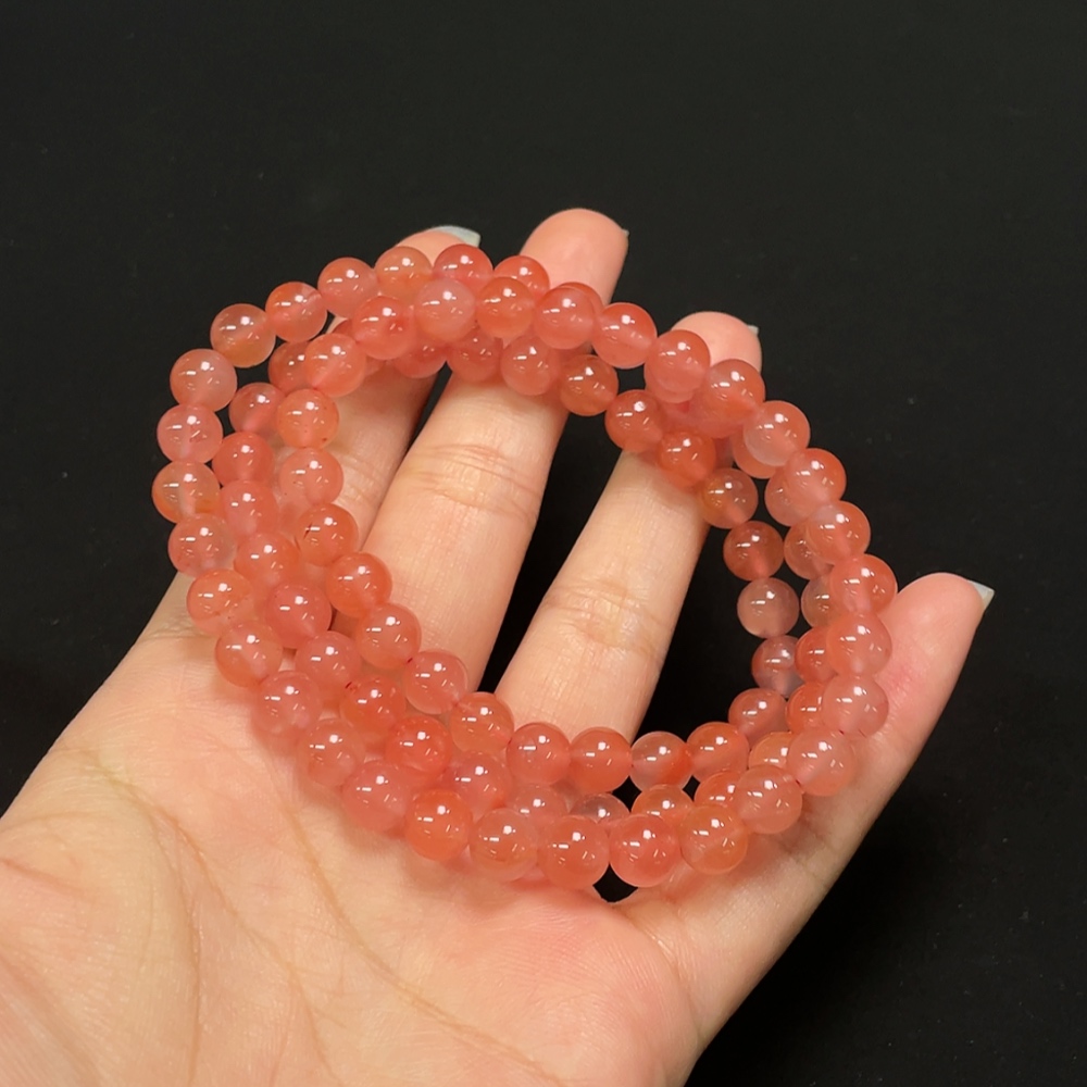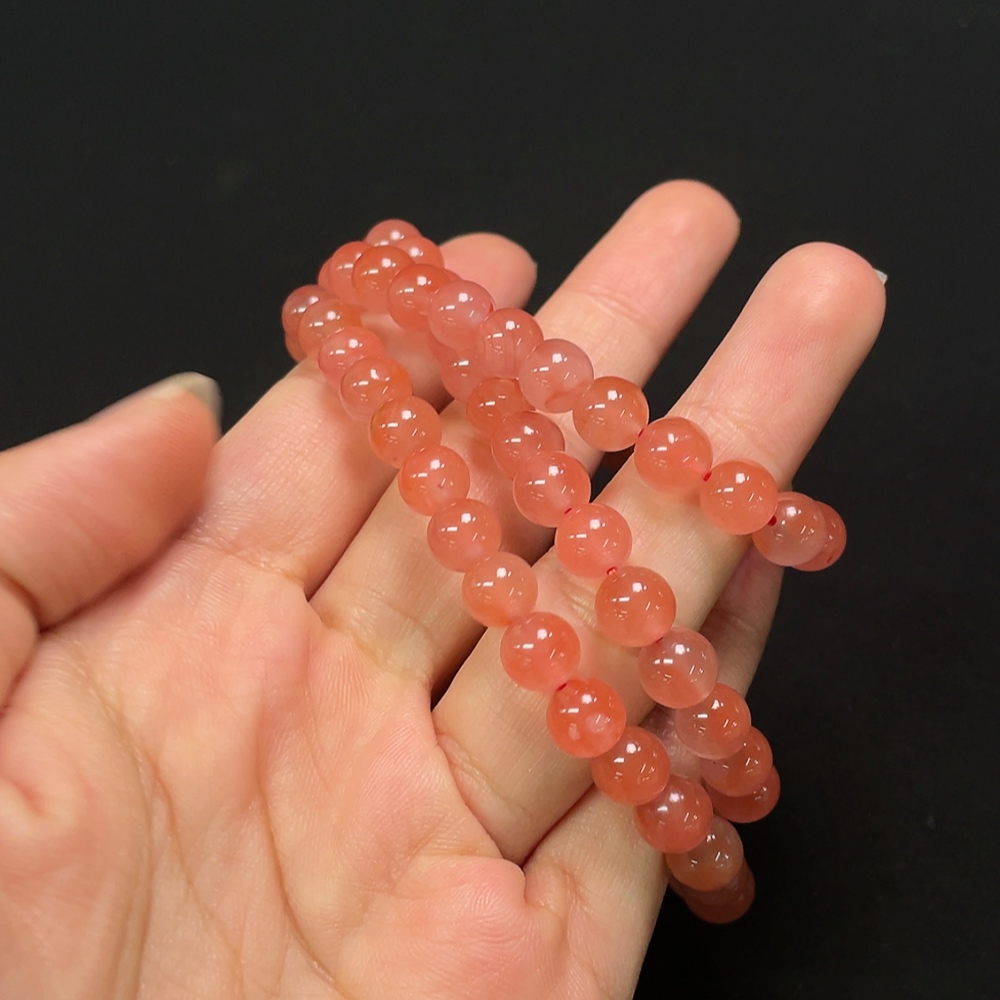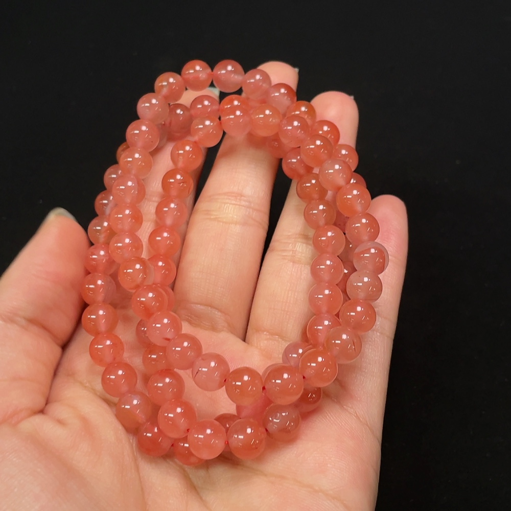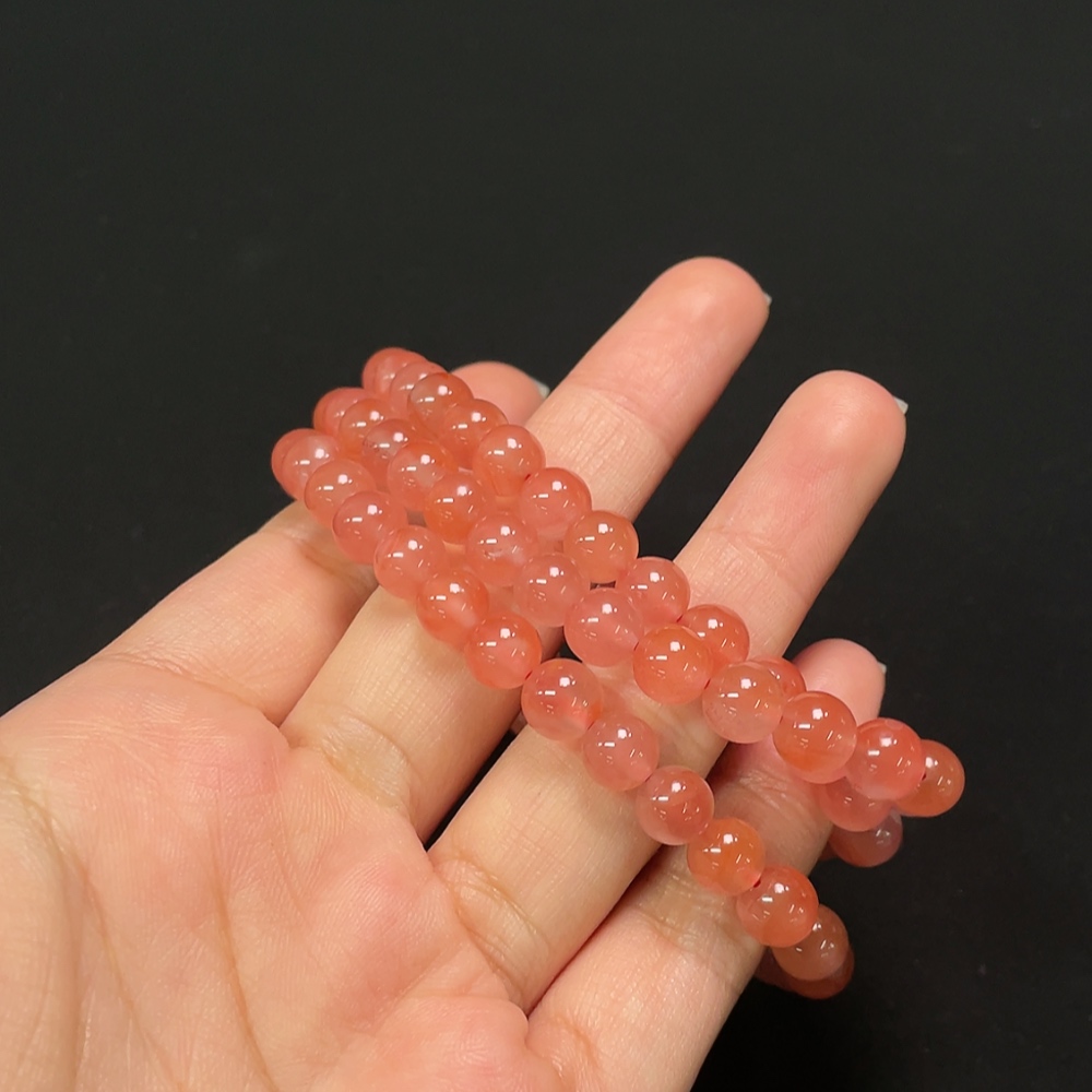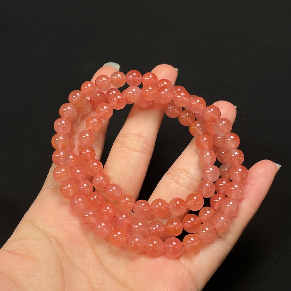 South Red Agate Bead Necklace, Total Weight Approx. 51.34g, Size 7.6mm, Visible Organic Matter