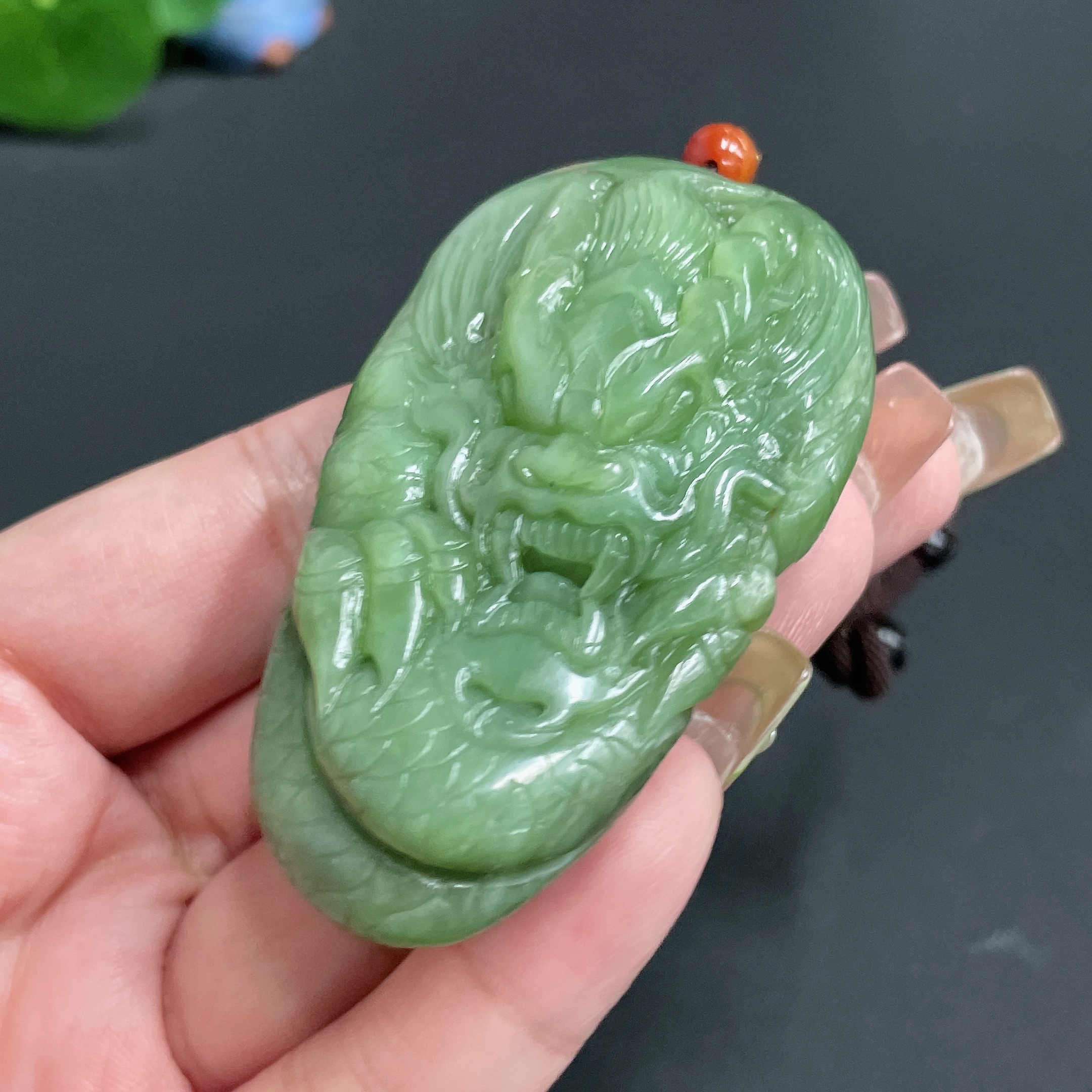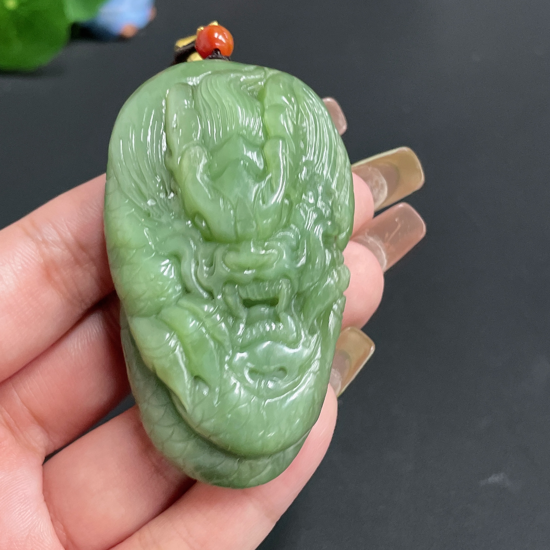Hetian Jade Pendant "Dragon Roaming the World" with Cord, Total Weight 84.44g