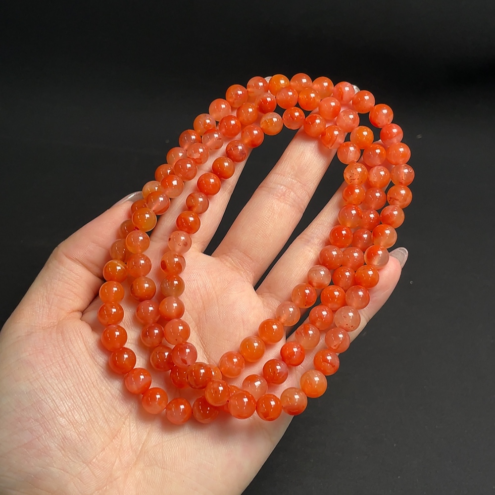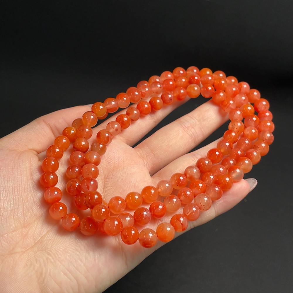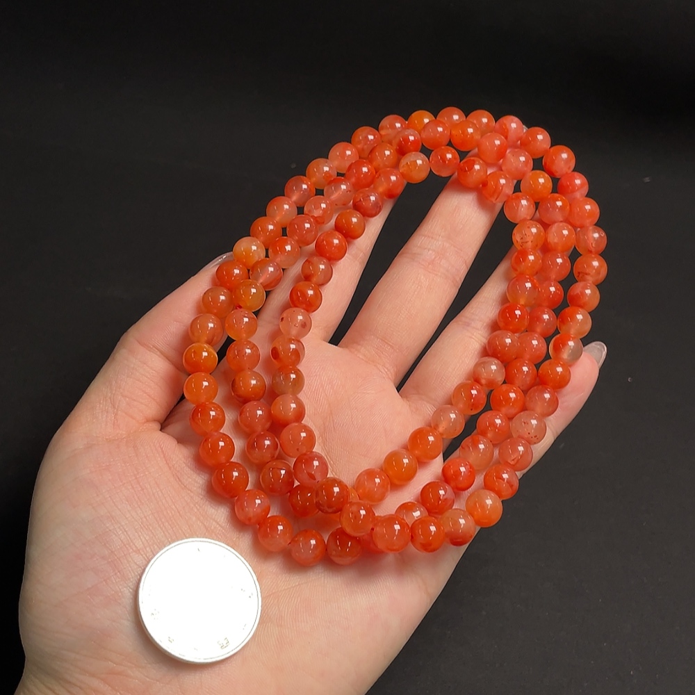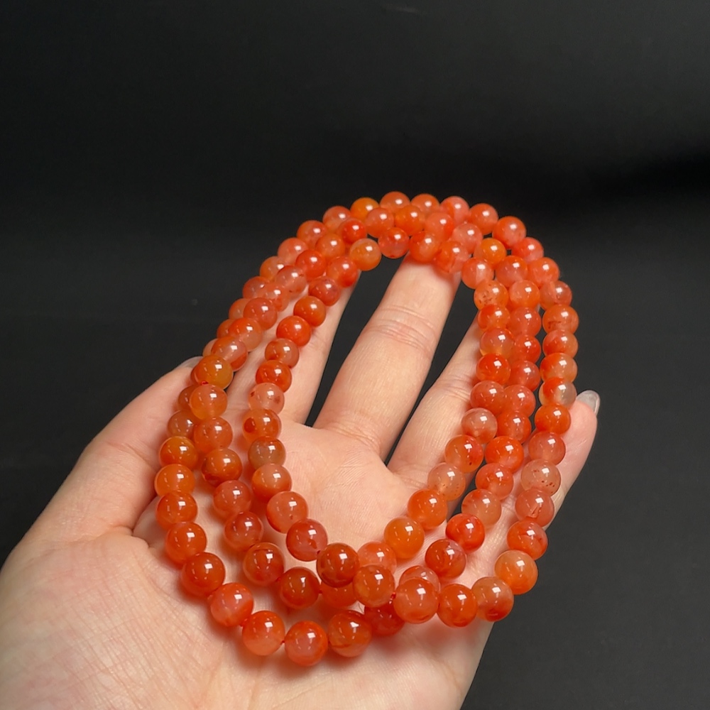 South Red Agate Bead Strand, Total Weight Approx. 66.11g, Bead Size About 7.4mm