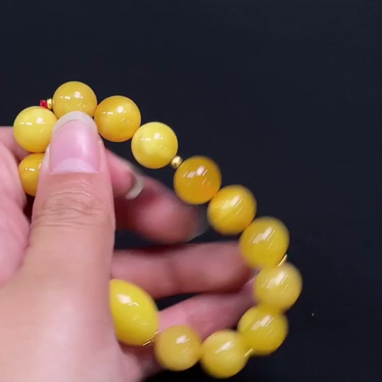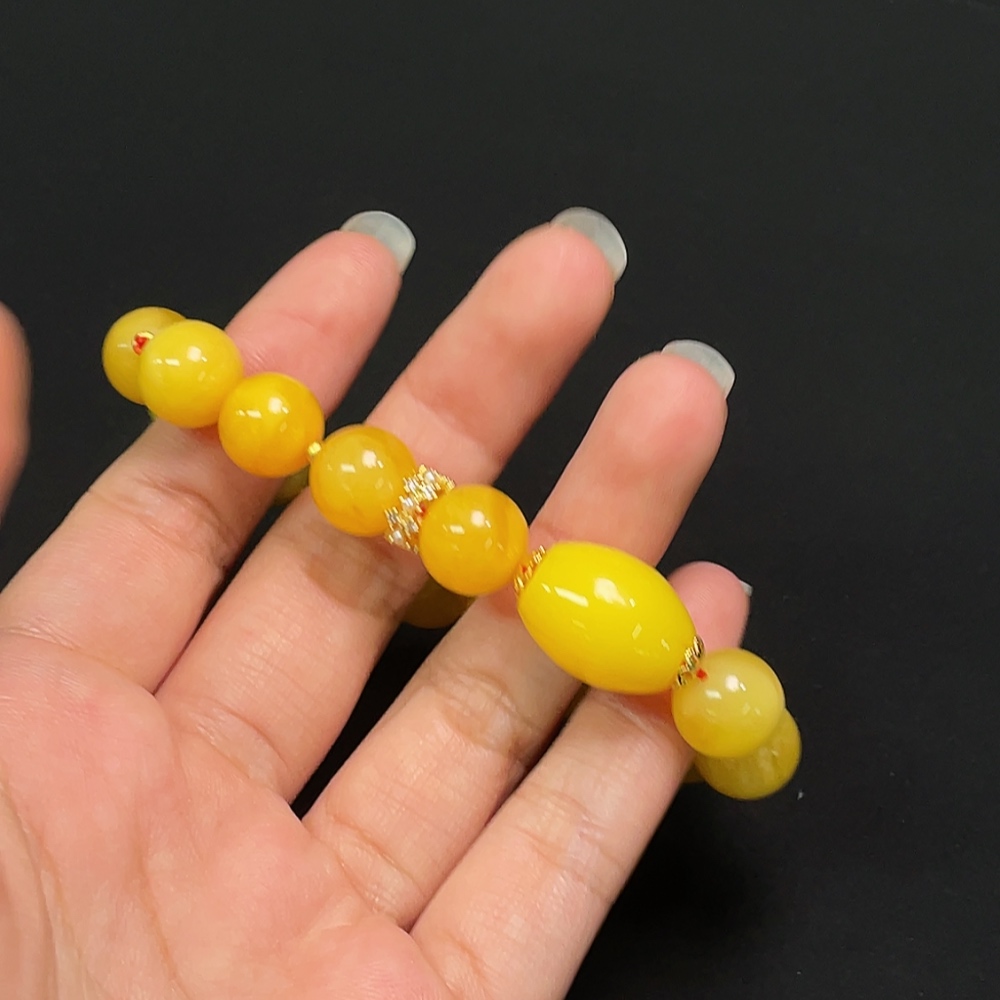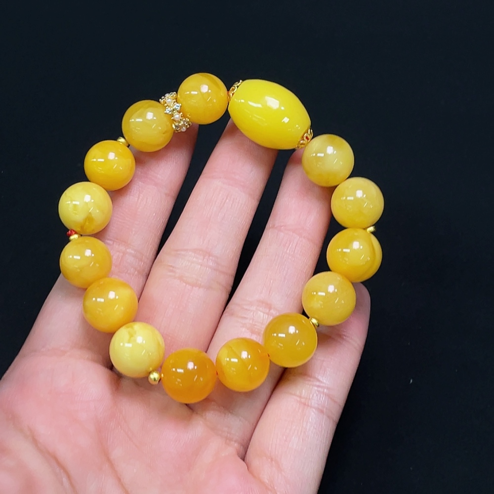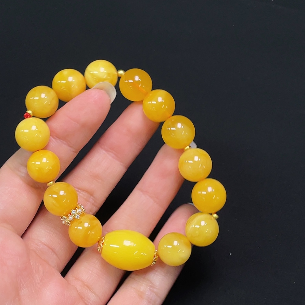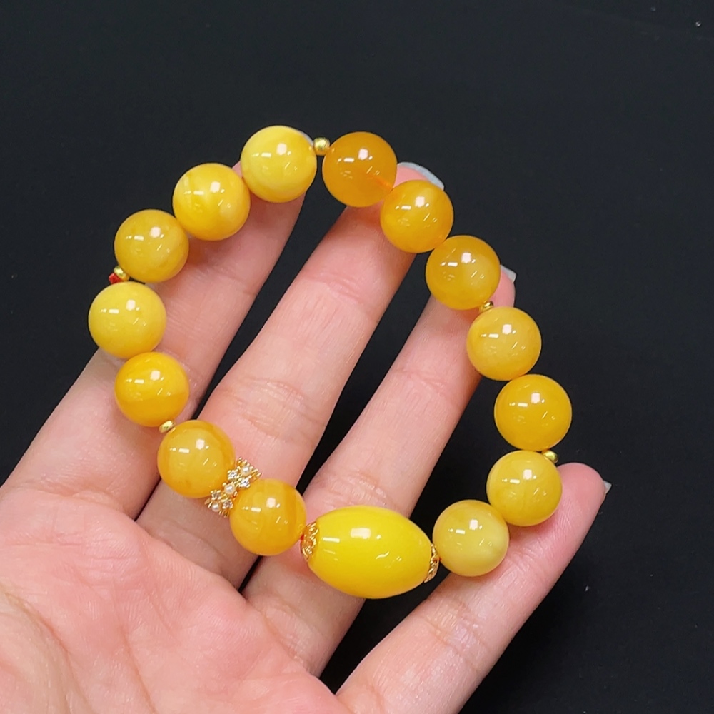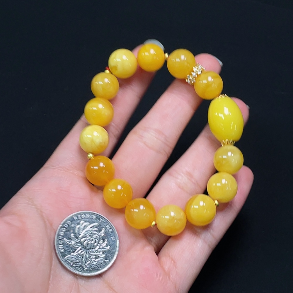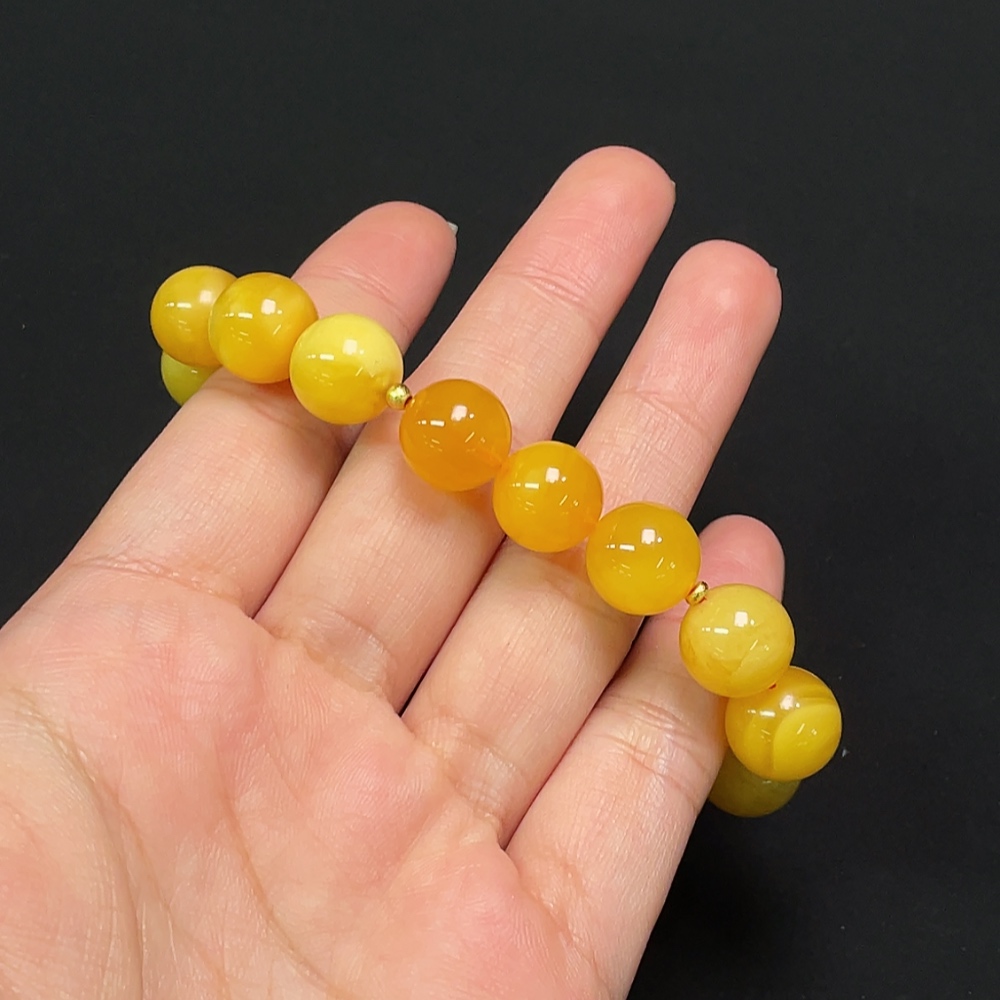 Amber Bead Bracelet, Total Weight Approx. 16.76g, Bead Size 12.0mm, Round Beads Amber, Drum Beads Non-Natural
