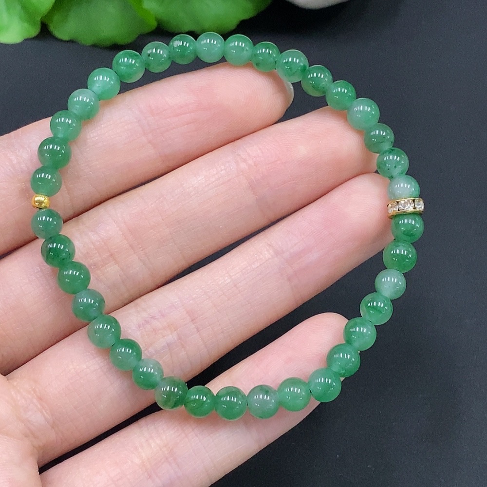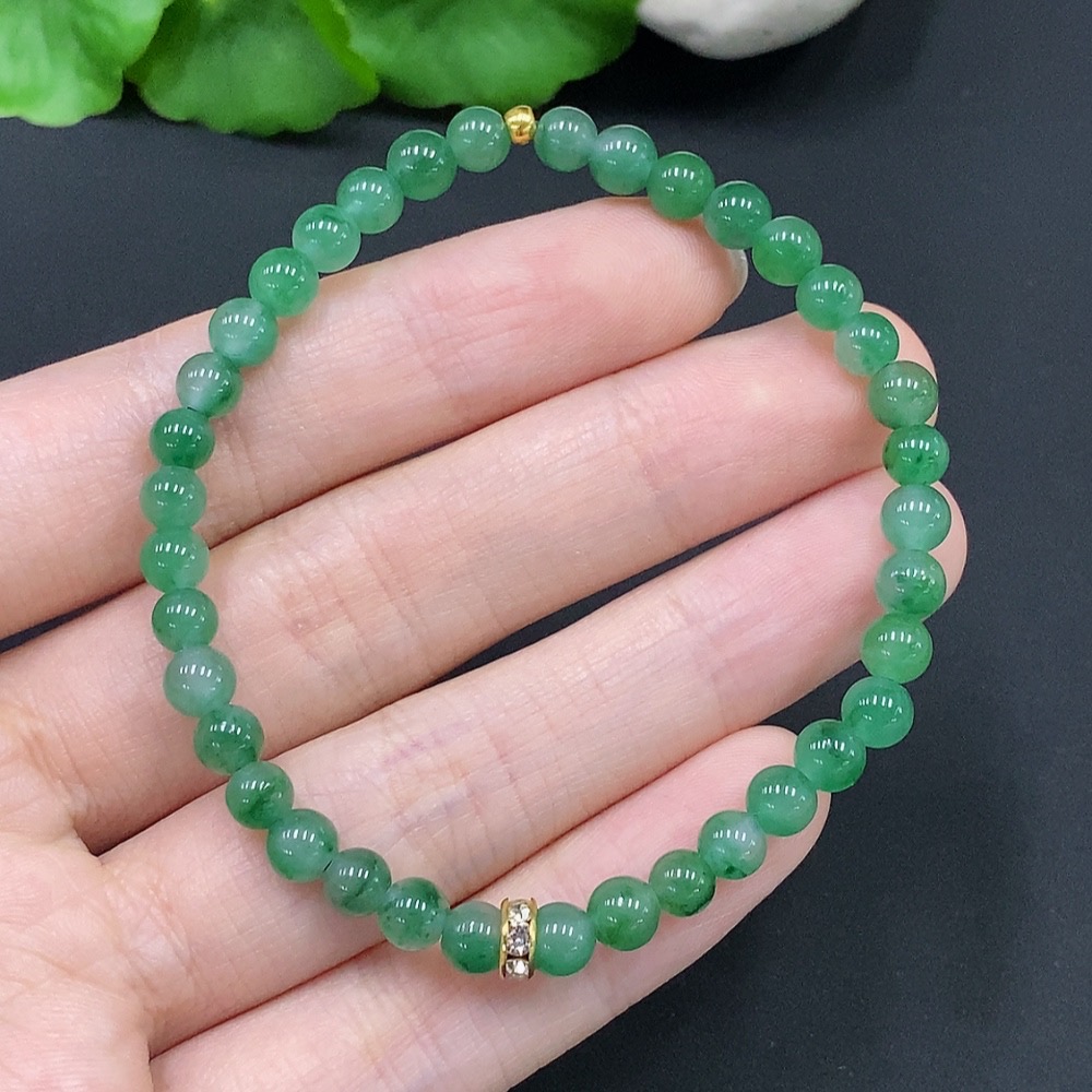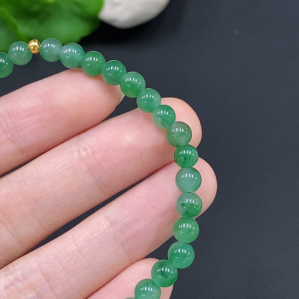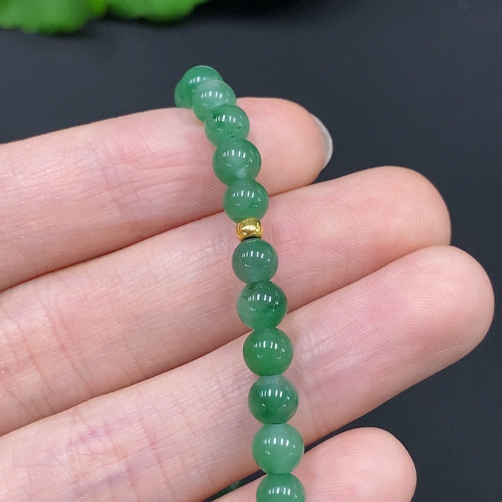 Trezaar - Dulong jade bracelet, approx. 5.1mm small round beads, 99% gold content, non-gold inlaid for the rest, total weight 6.976g