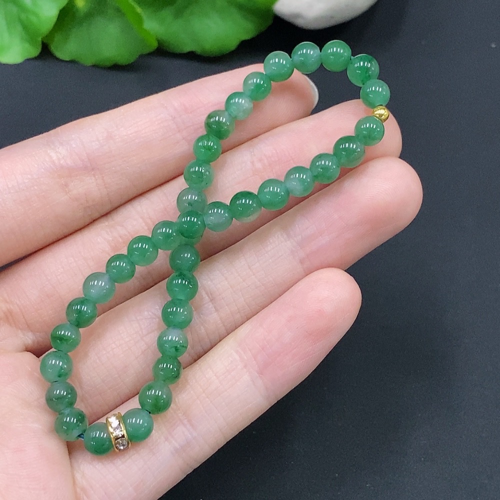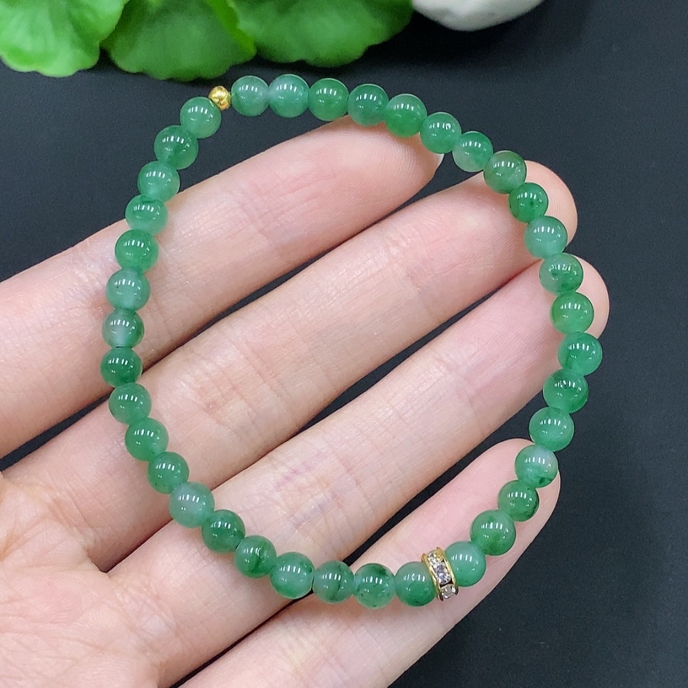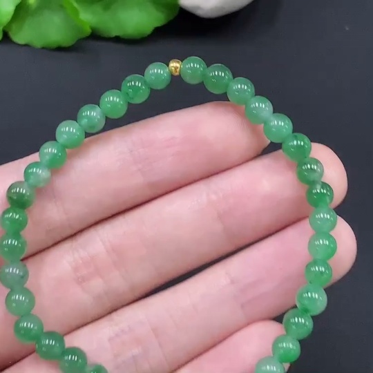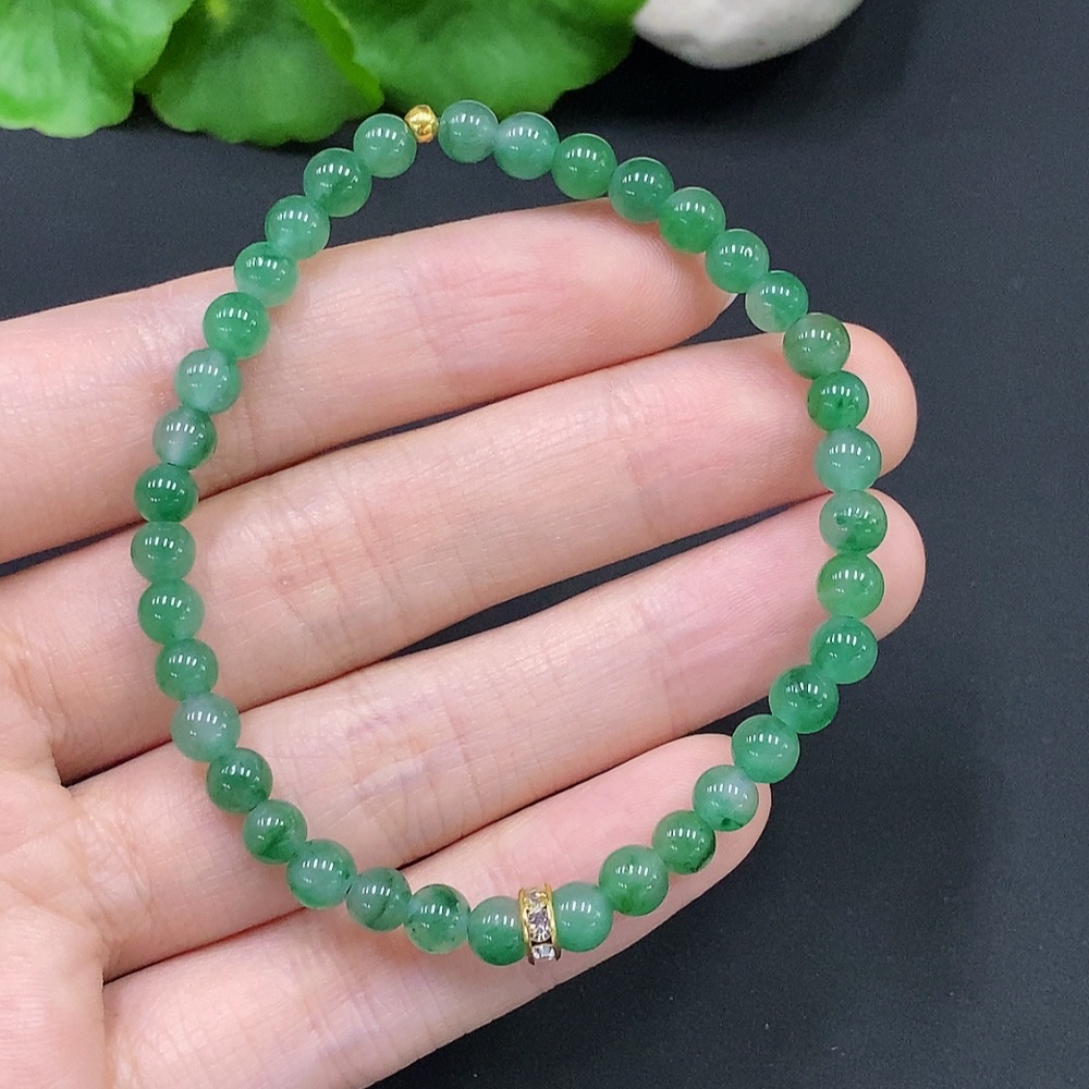 Trezaar - Dulong jade bracelet, approx. 5.1mm small round beads, 99% gold content, non-gold inlaid for the rest, total weight 6.976g