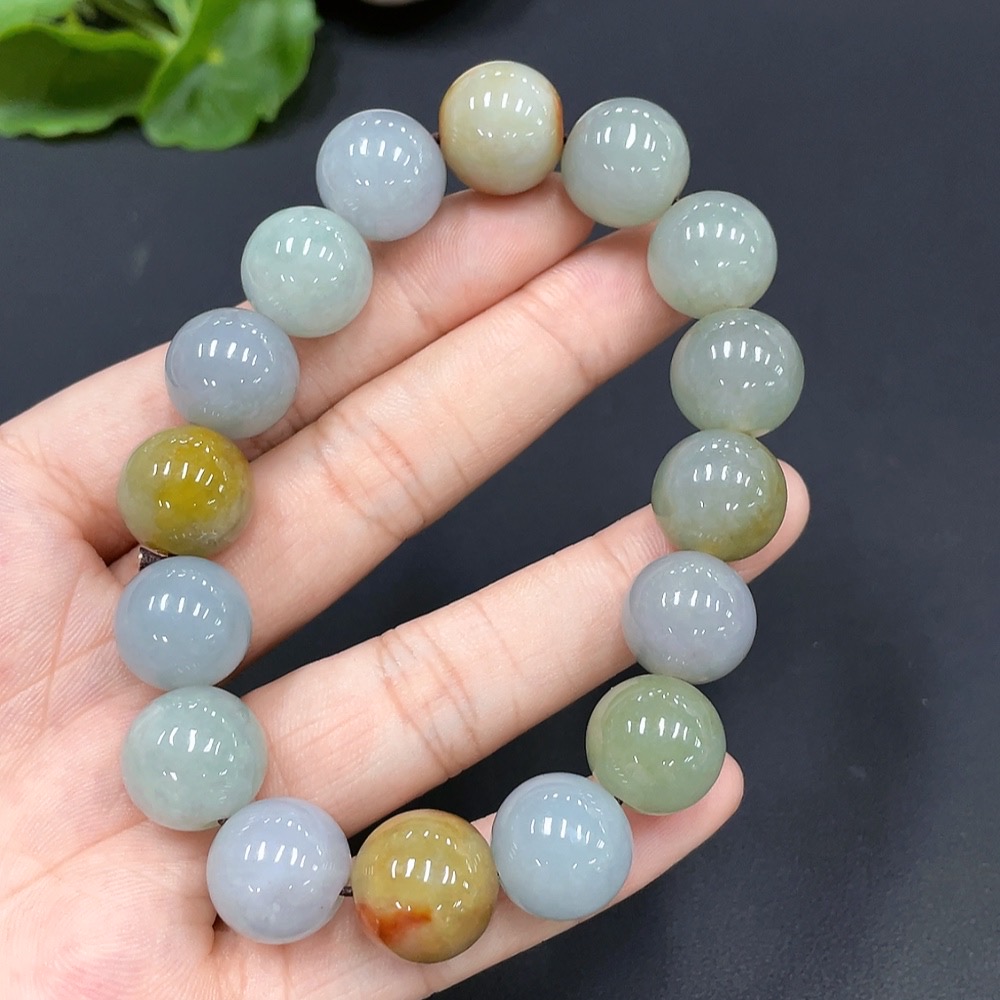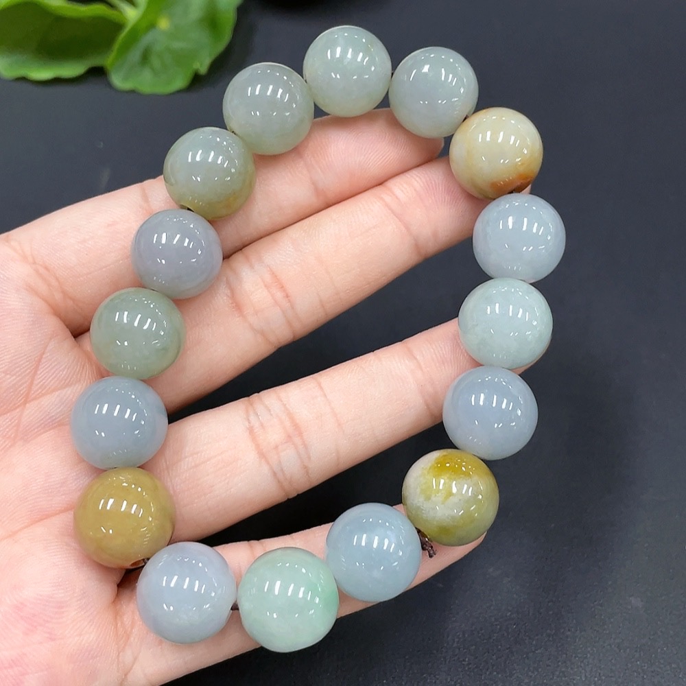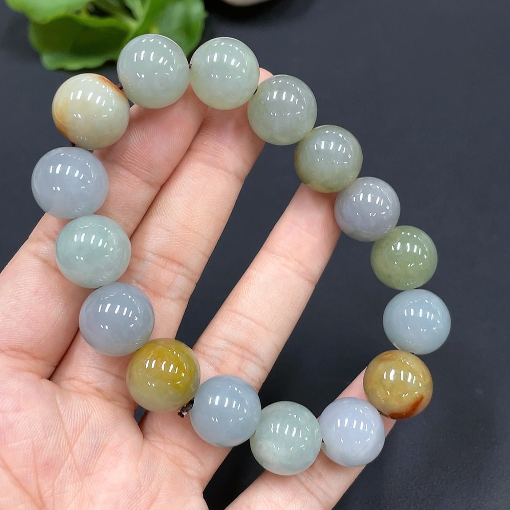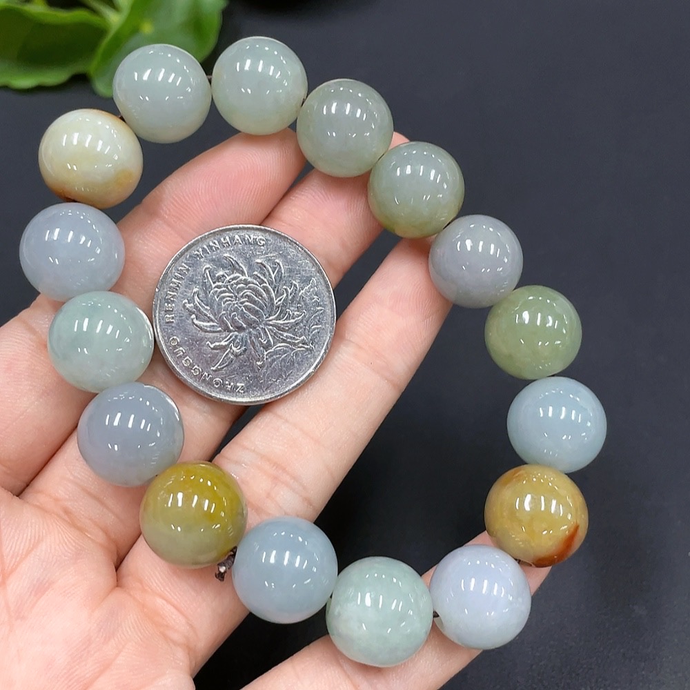 Jadeite Bead Bracelet Approx. 13.7mm Yellow Bead Color Origin Undetermined Total Weight 64.851g