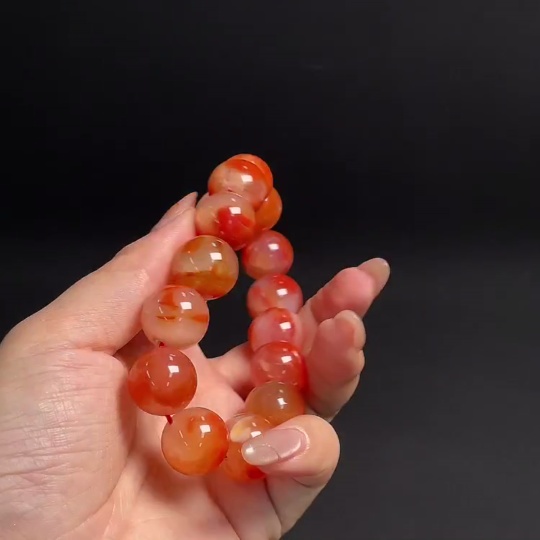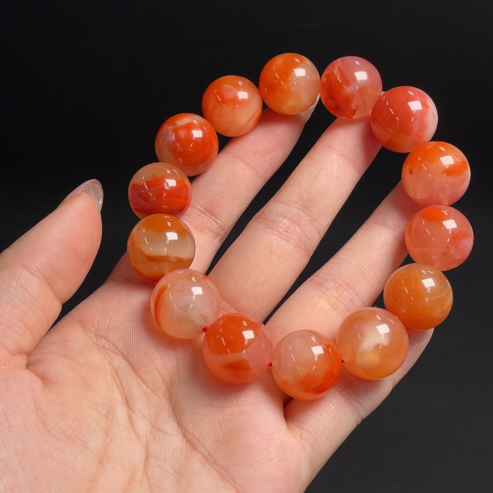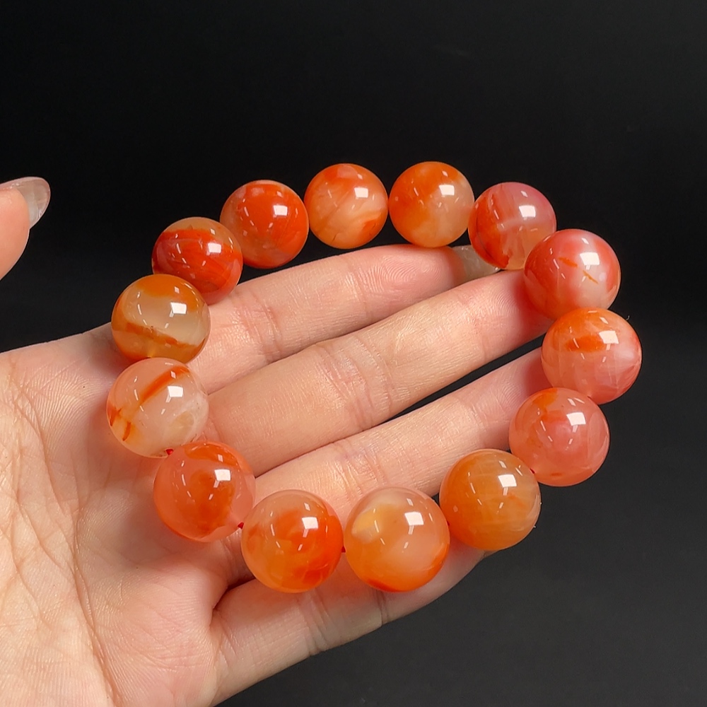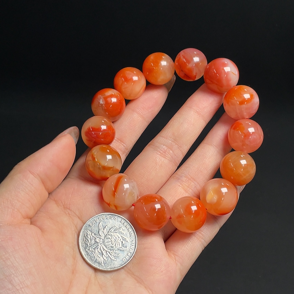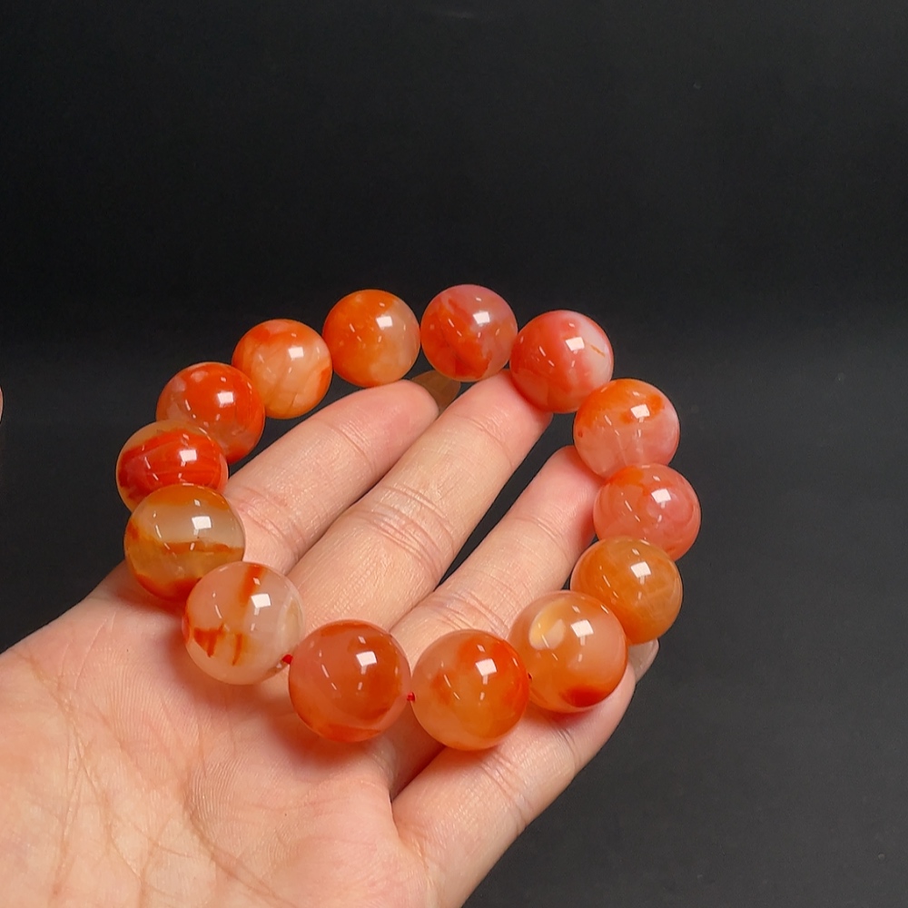 South Red Agate Bracelet with Visible Organic Matter, Total Weight Approx. 83.69g, Bead Size Approx. 16.1mm