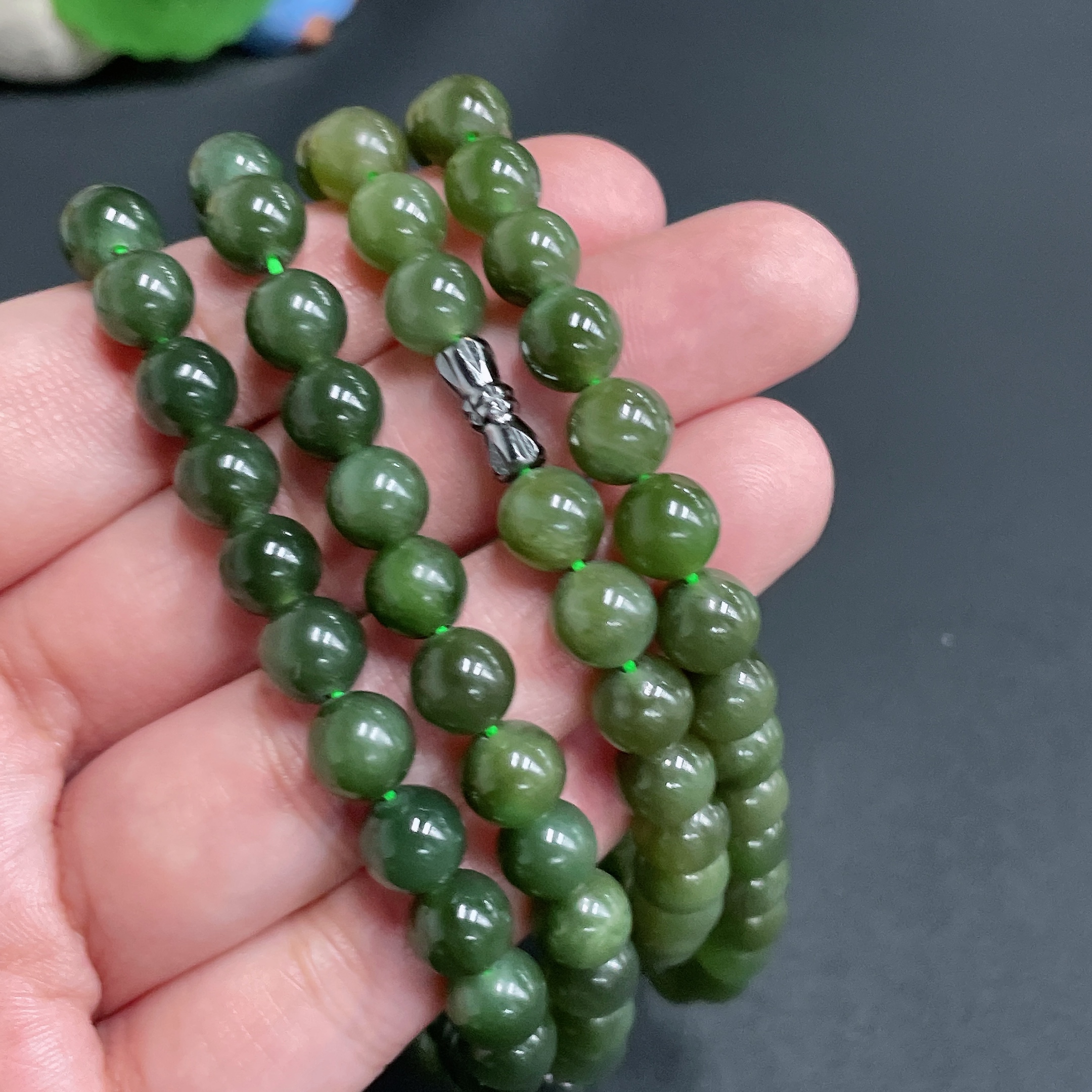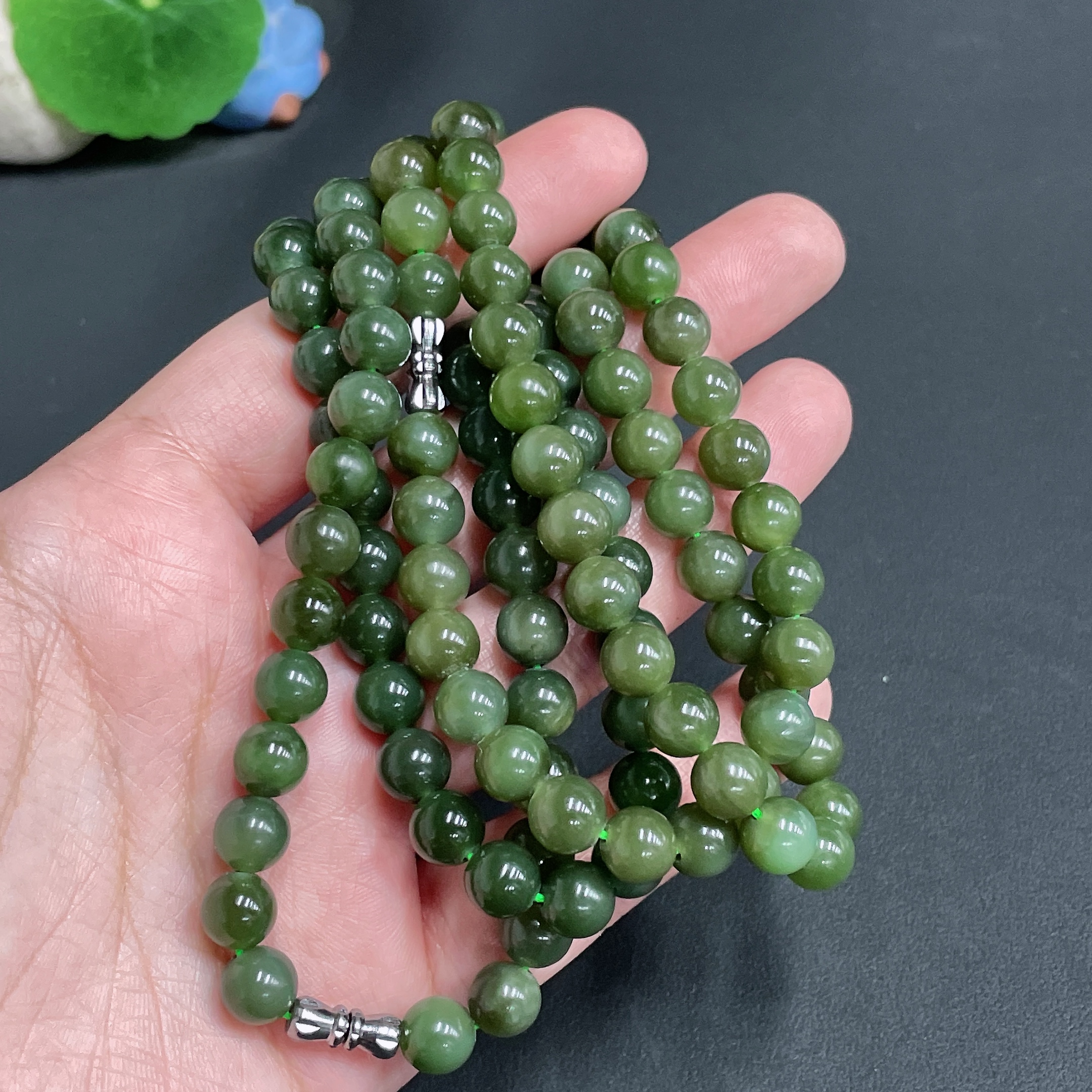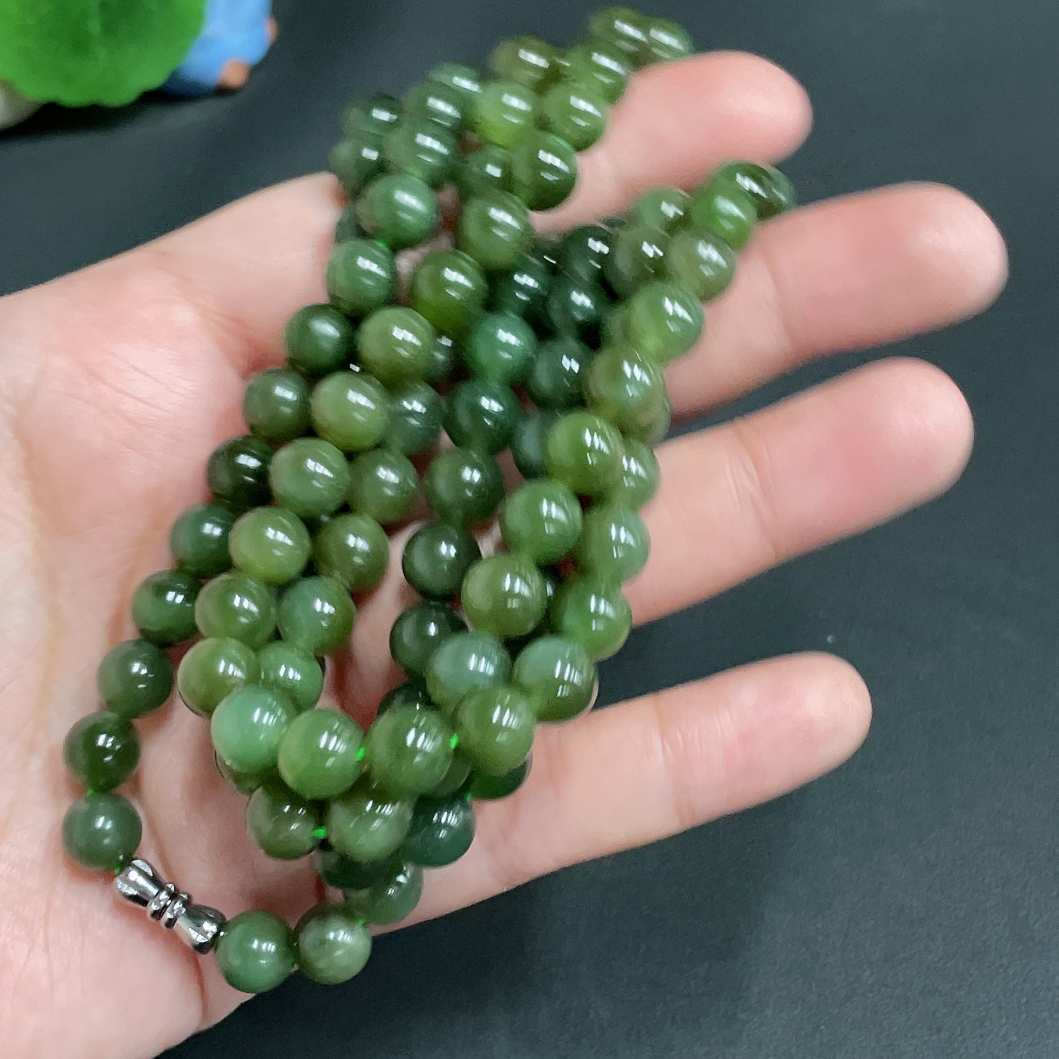 Hetian Jade Bead Necklace, Approx. 7.7mm, Total Weight Approx. 87.7g