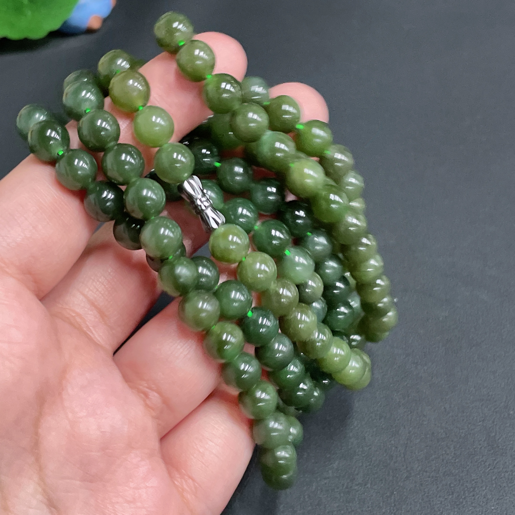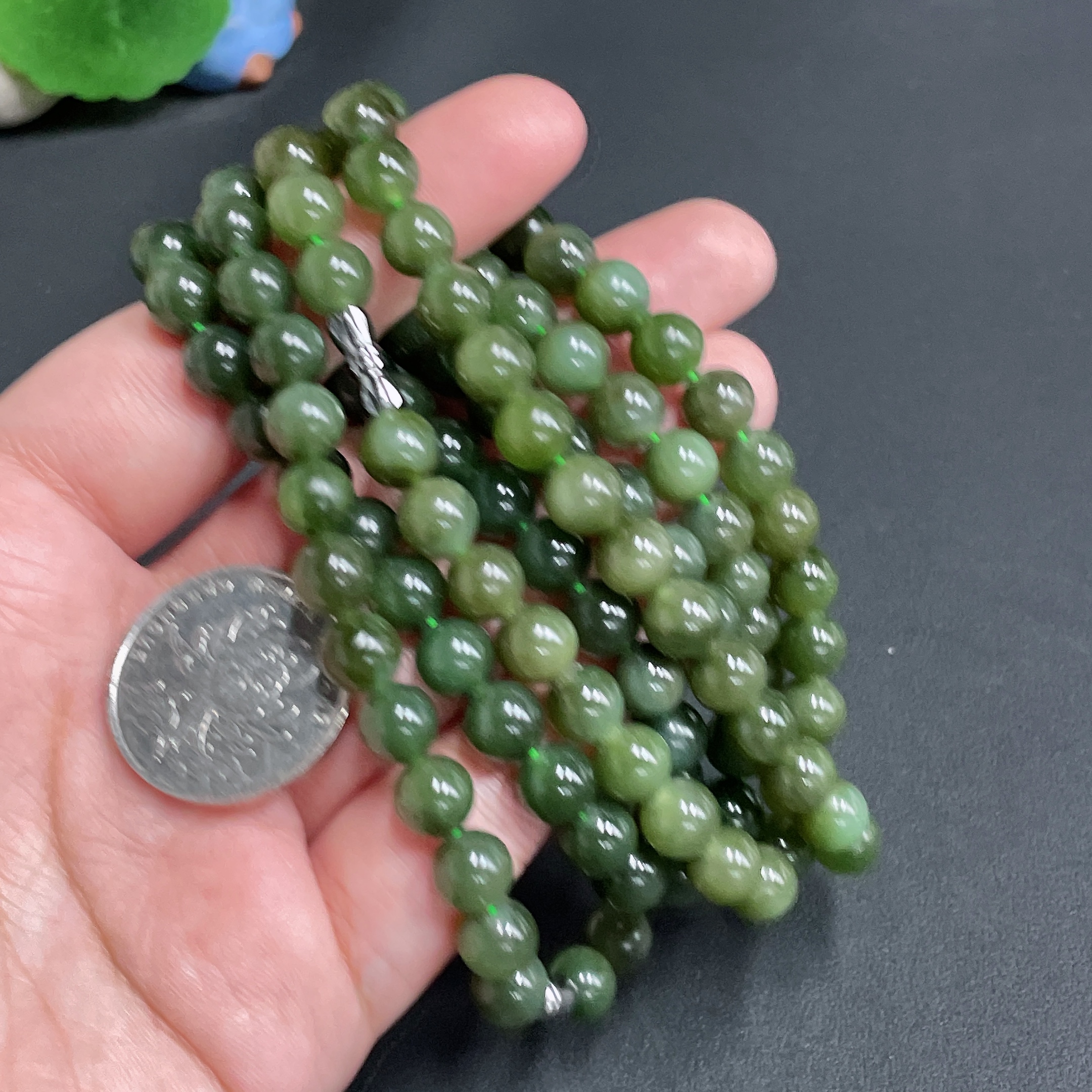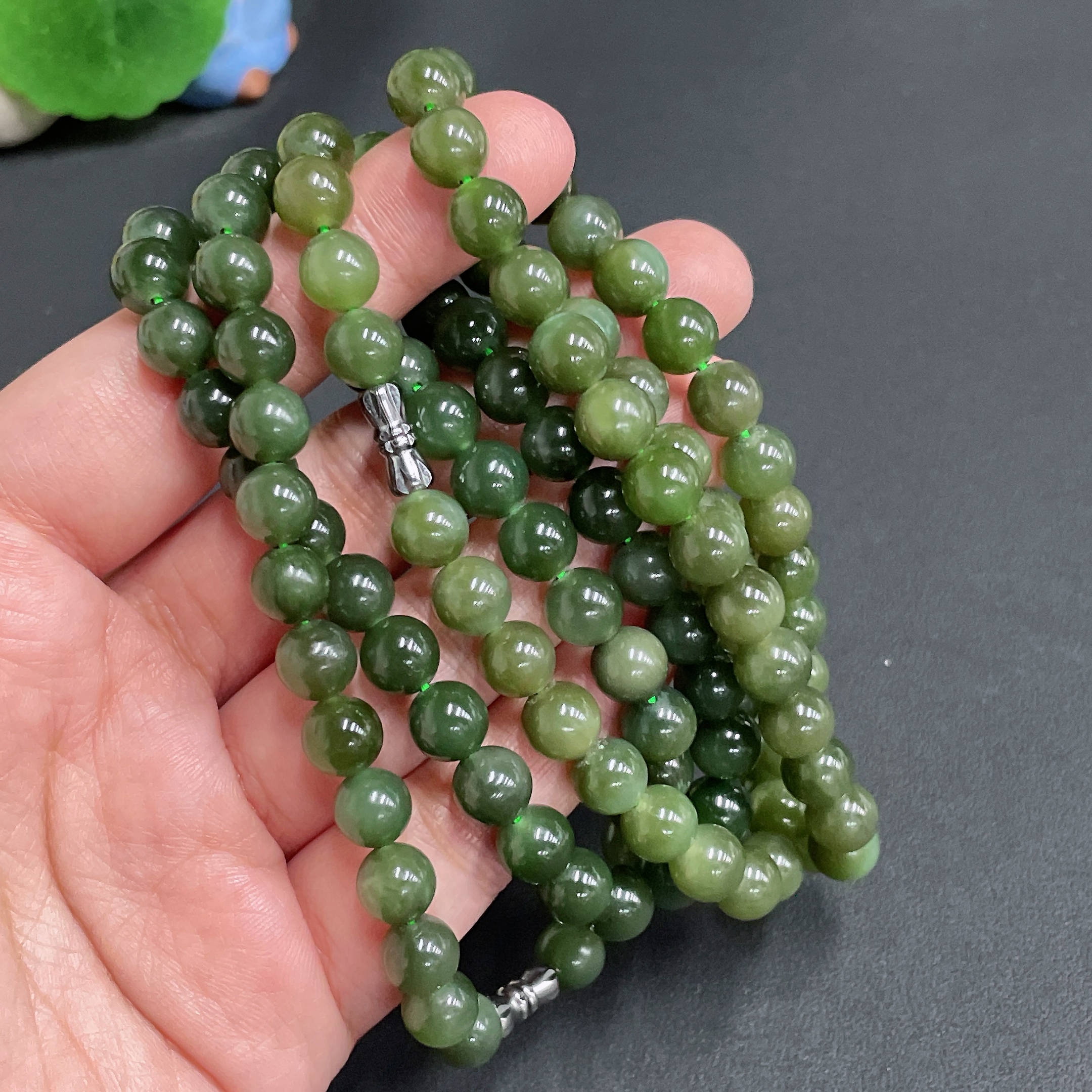 Hetian Jade Bead Necklace, Approx. 7.7mm, Total Weight Approx. 87.7g