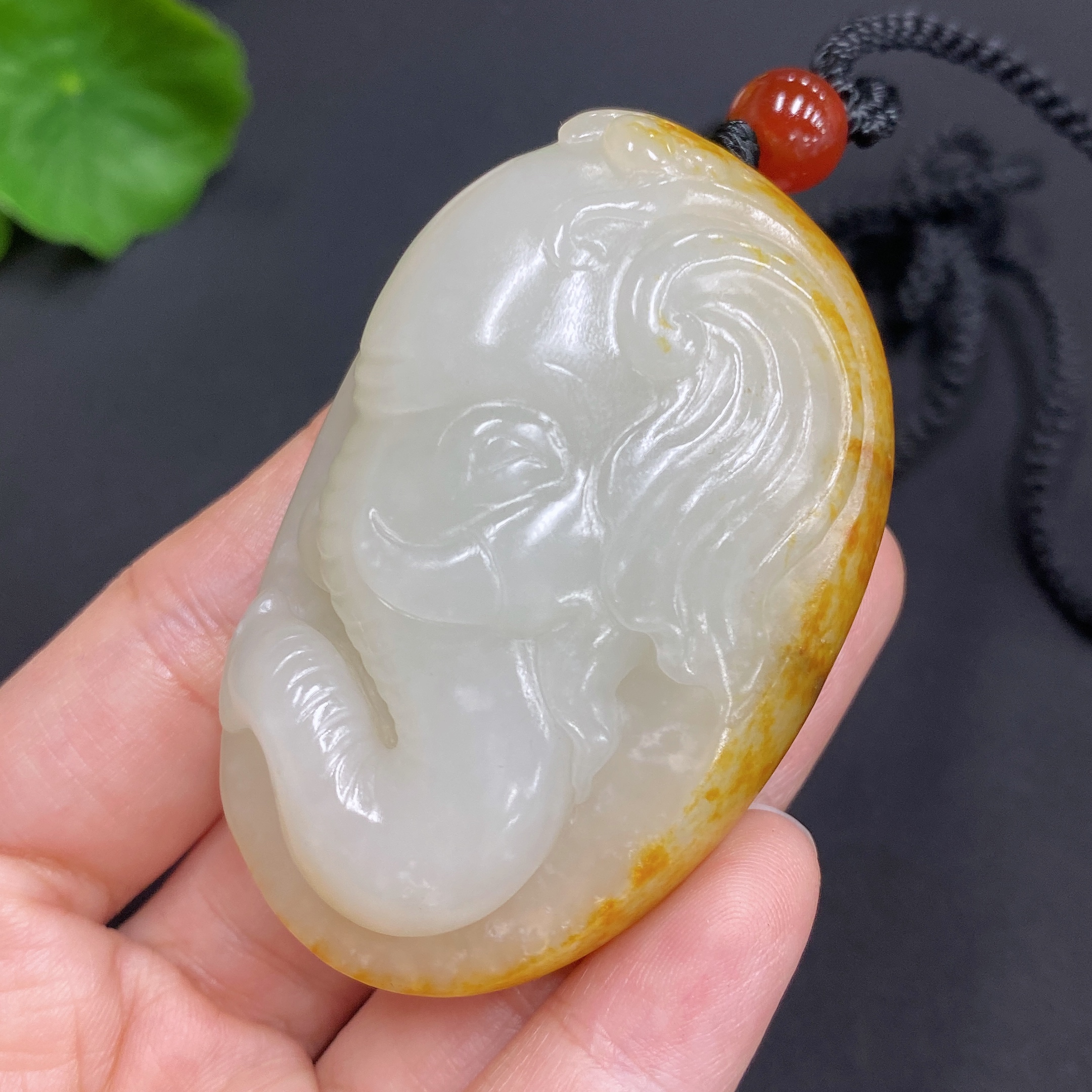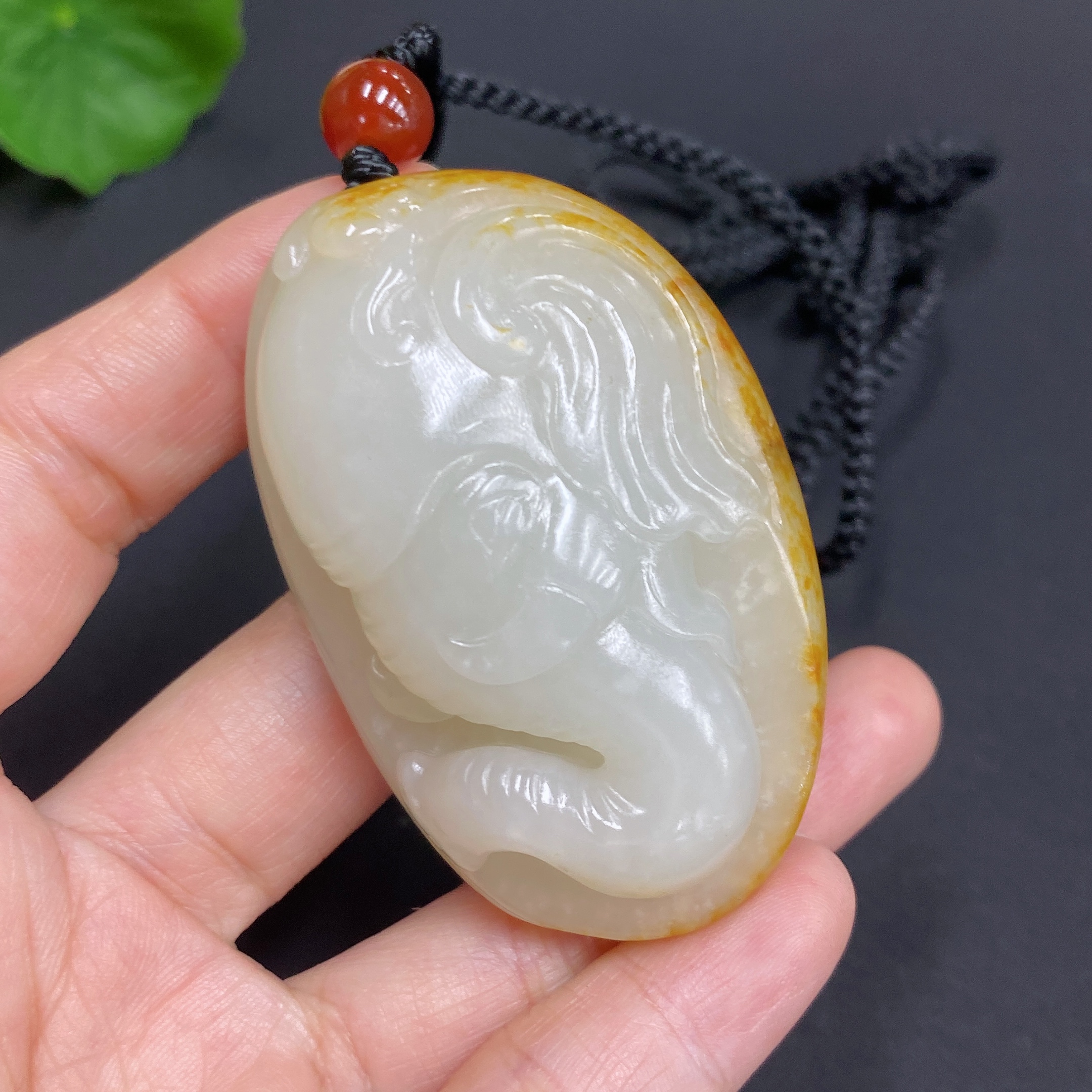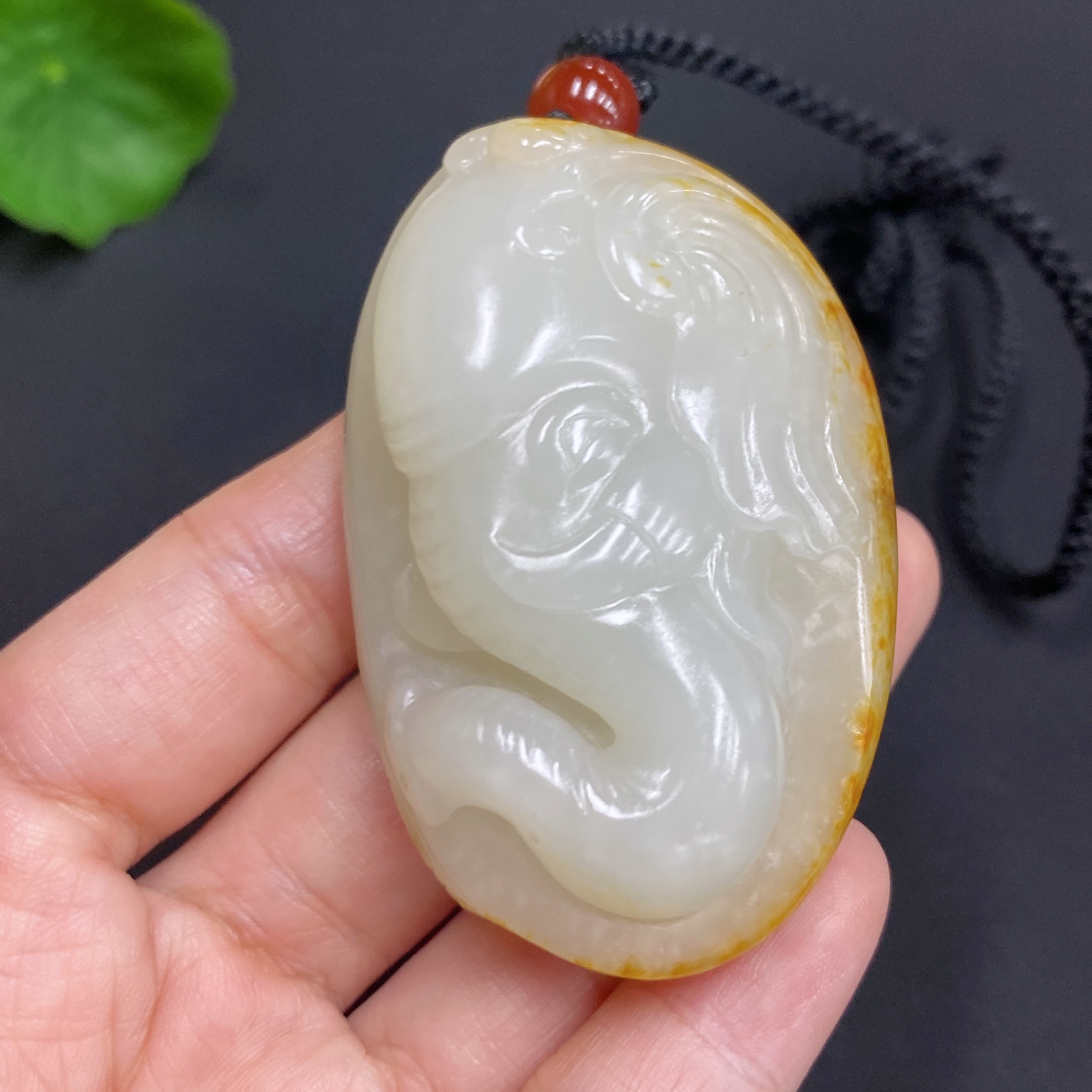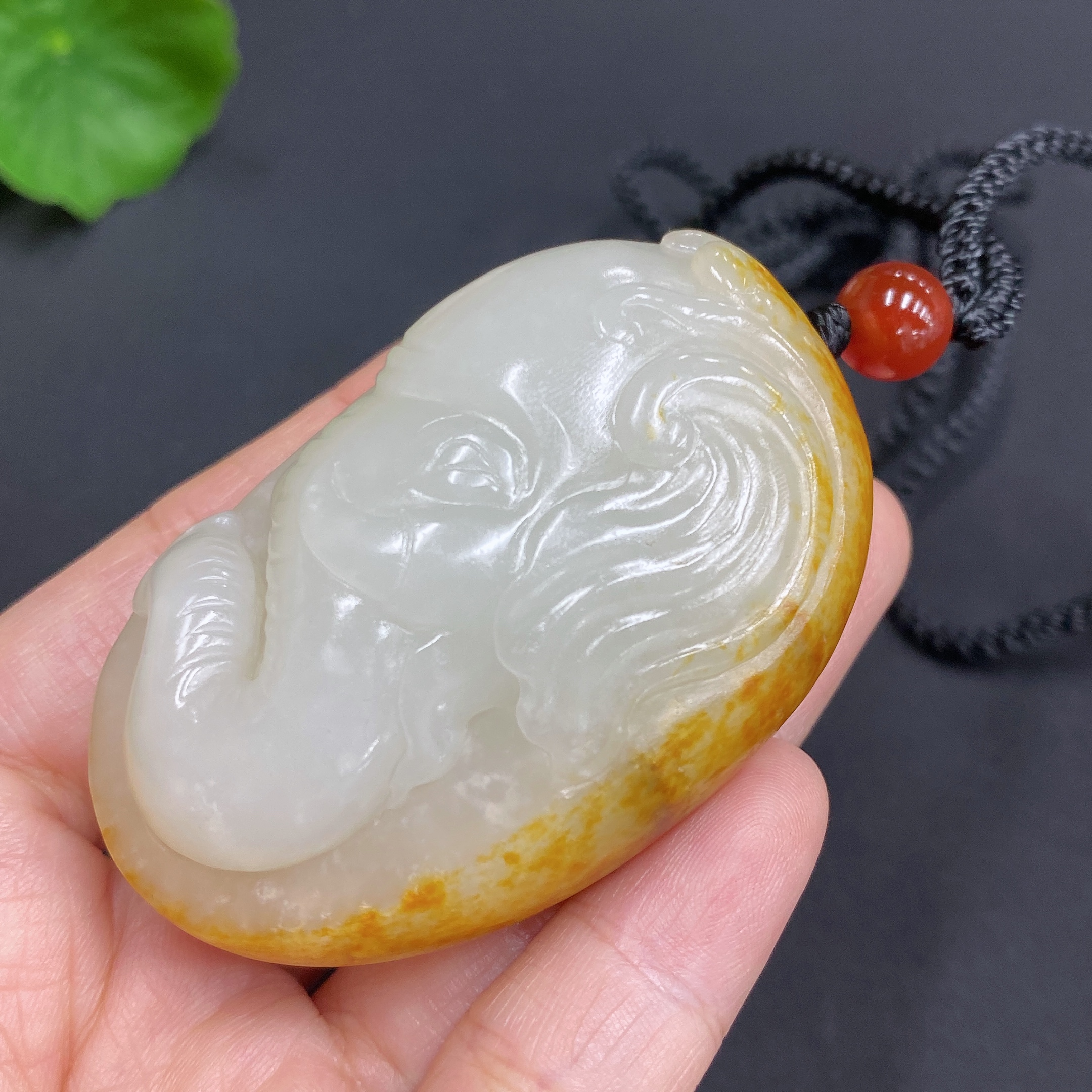 Hetian Jade Pendant Auspicious Undetermined Skin Color Formation Total Weight (Including Rope) Approx. 85.7g