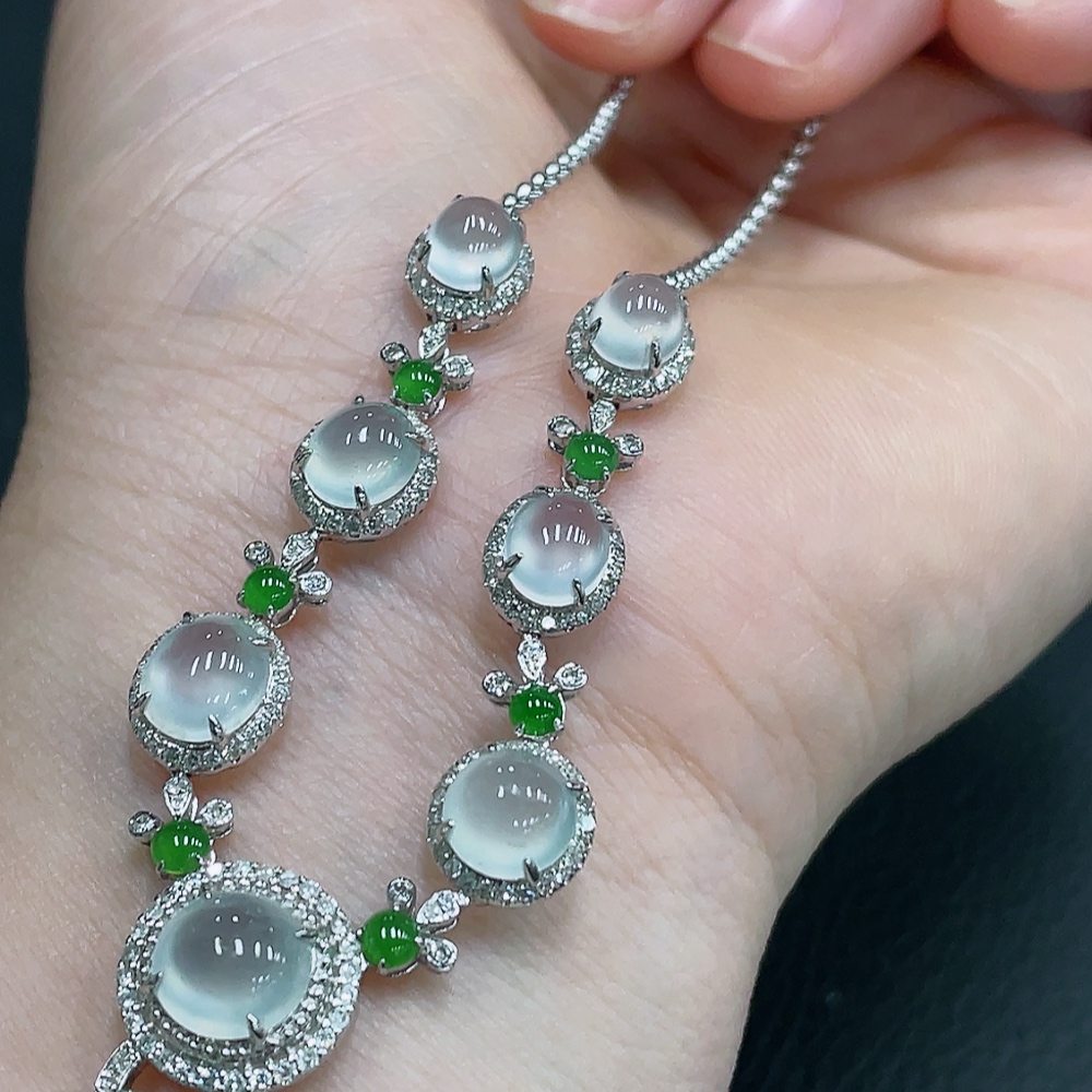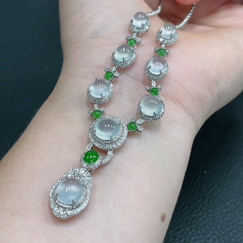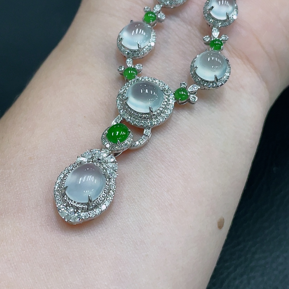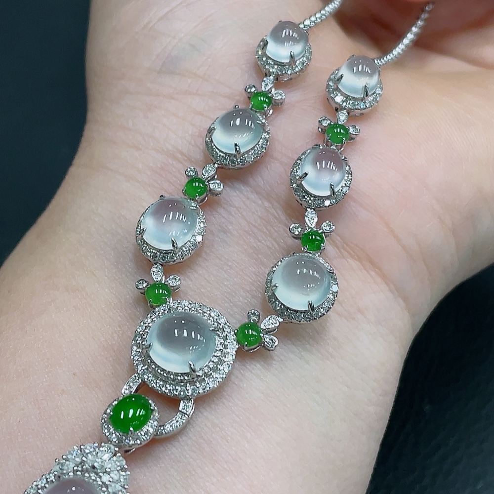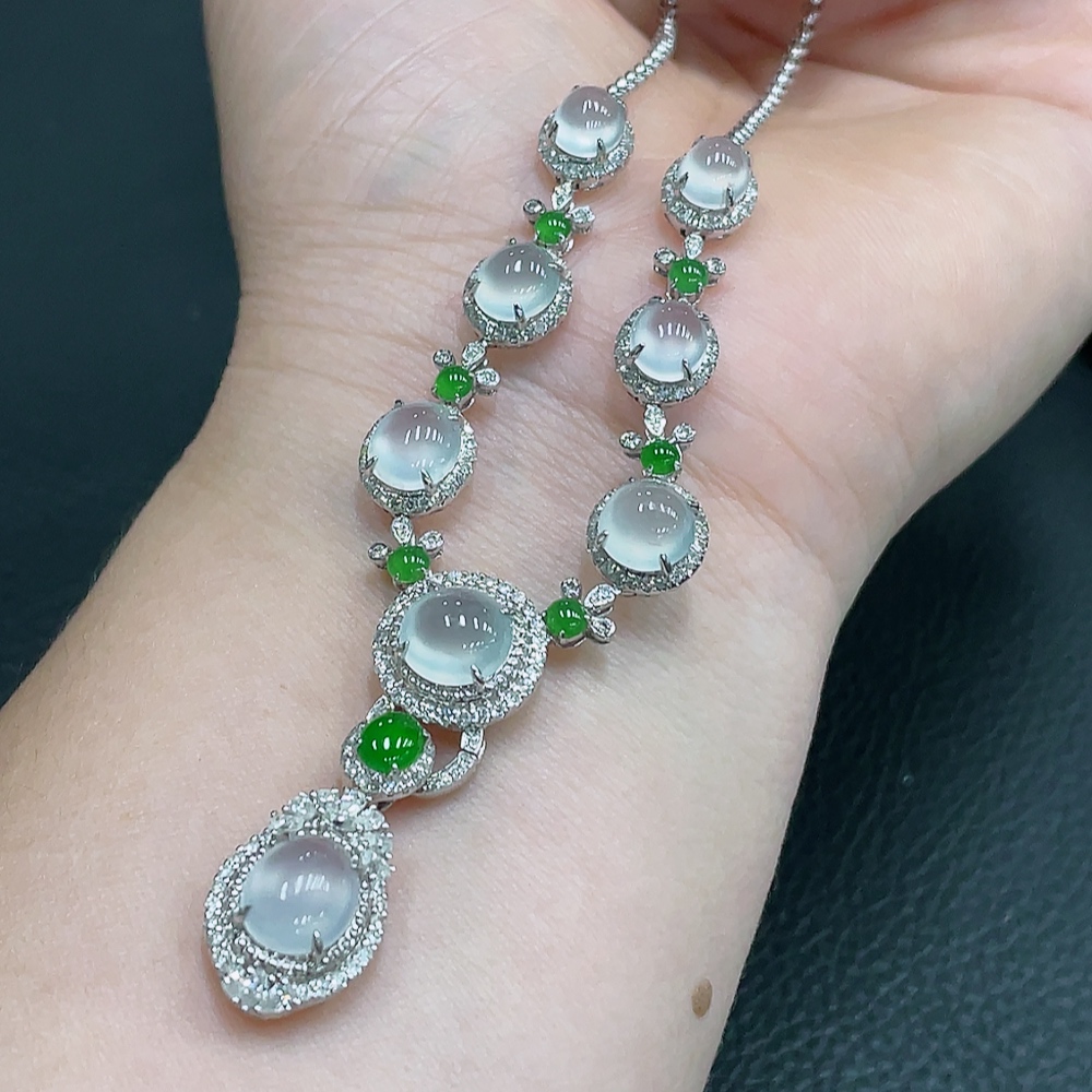Jadeite Bezel-Set Cabochon Necklace 18k Main Chain Approx. Total Weight 13.88g