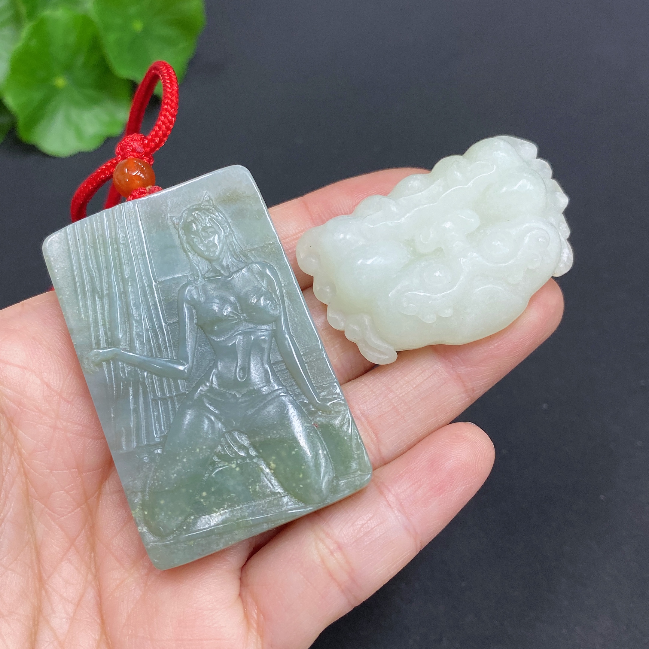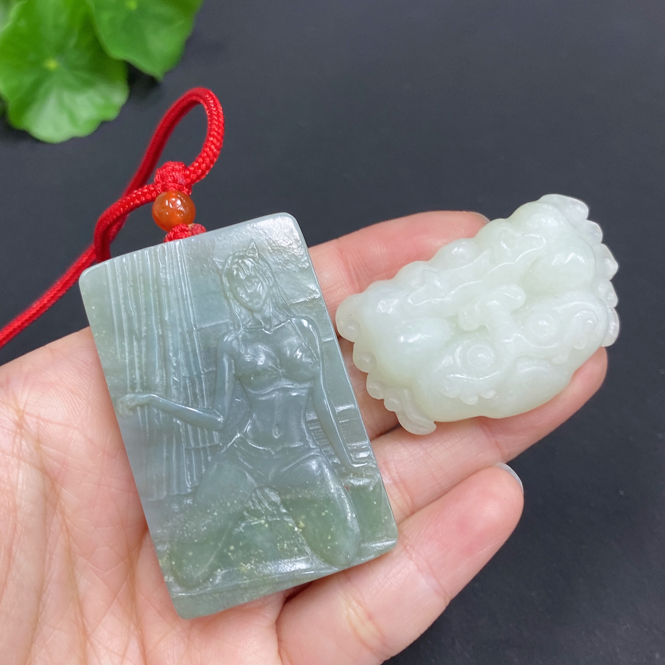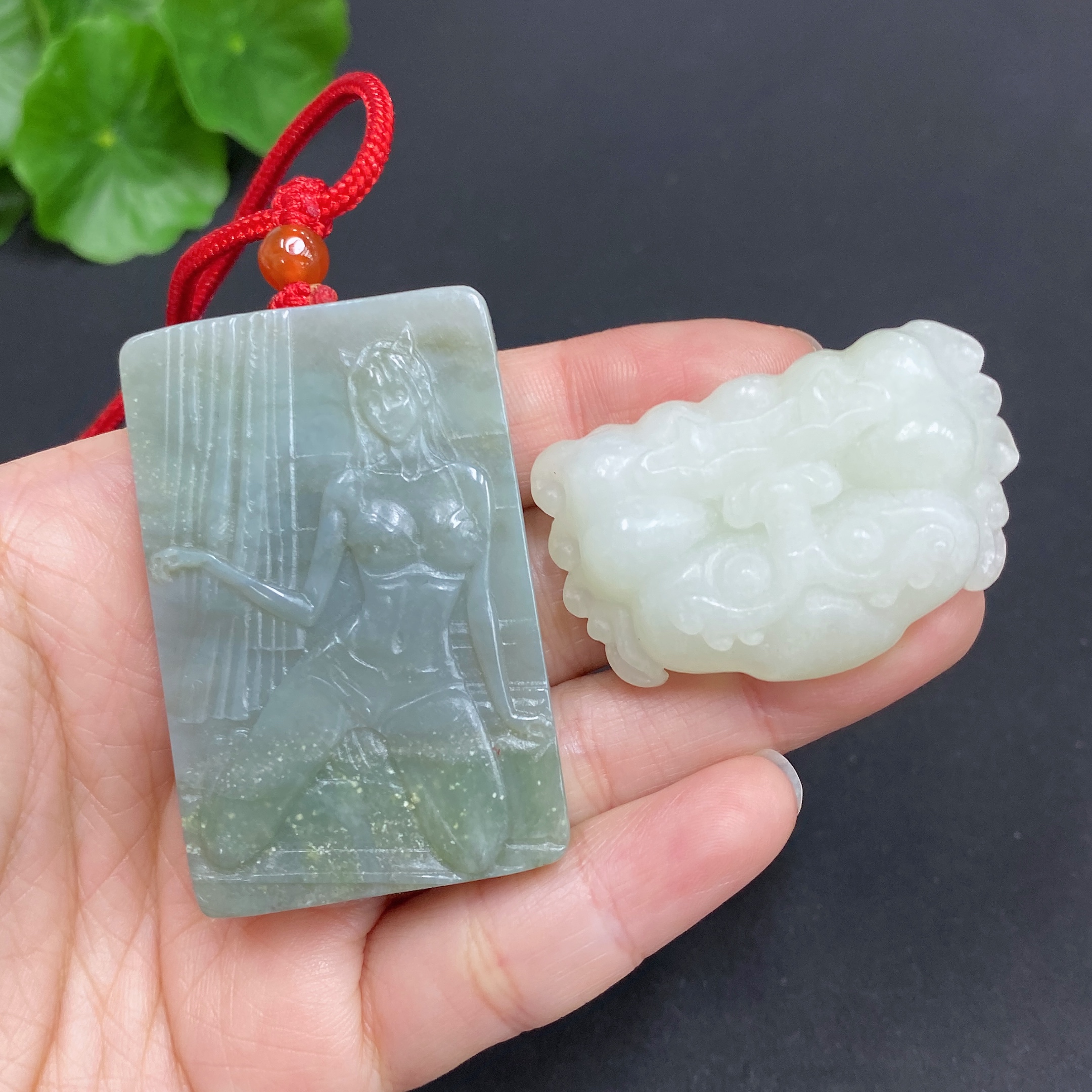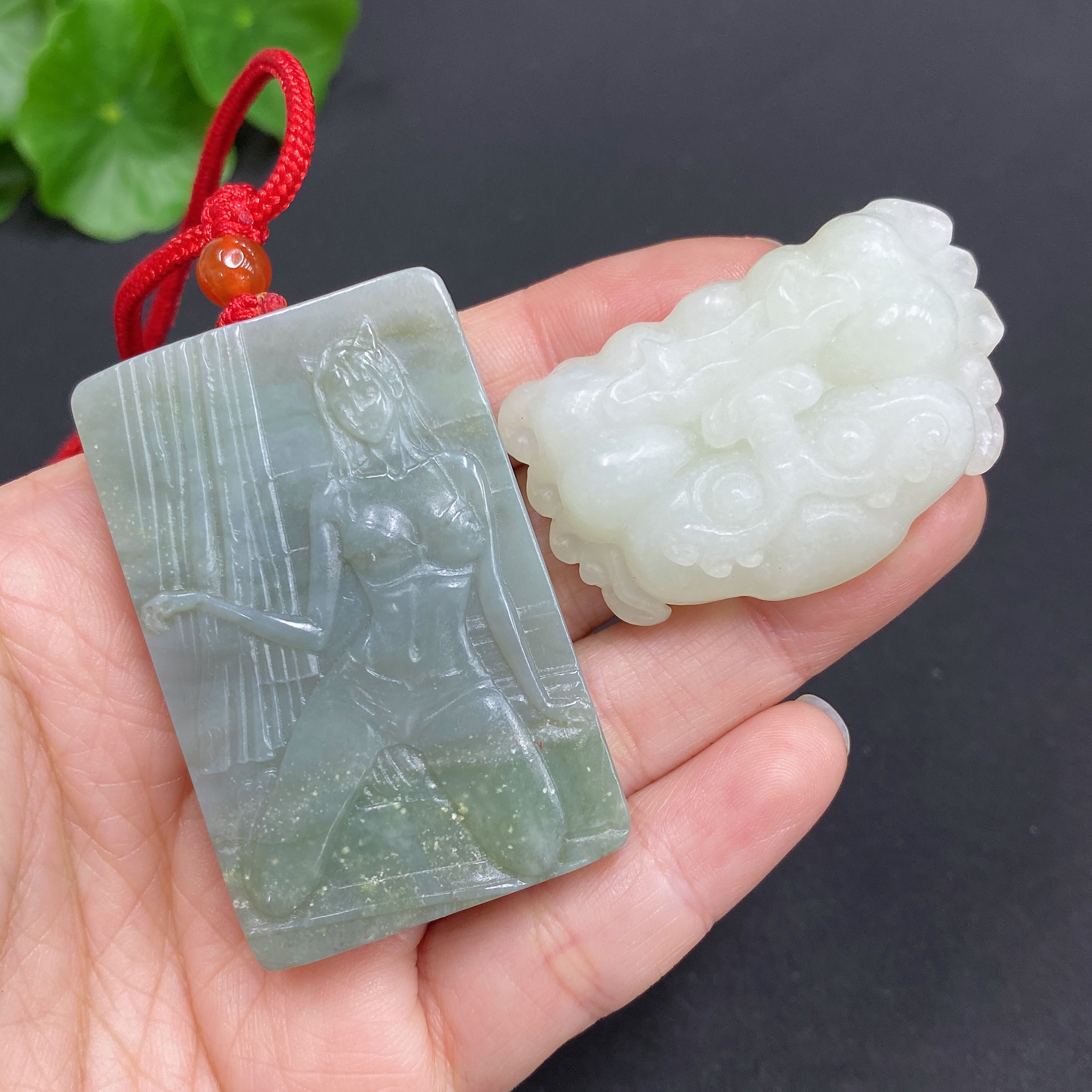 Hetian Jade Pendant: National Beauty and Heavenly Fragrance + Auspicious Beast