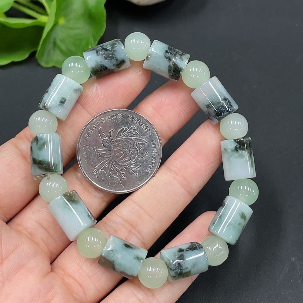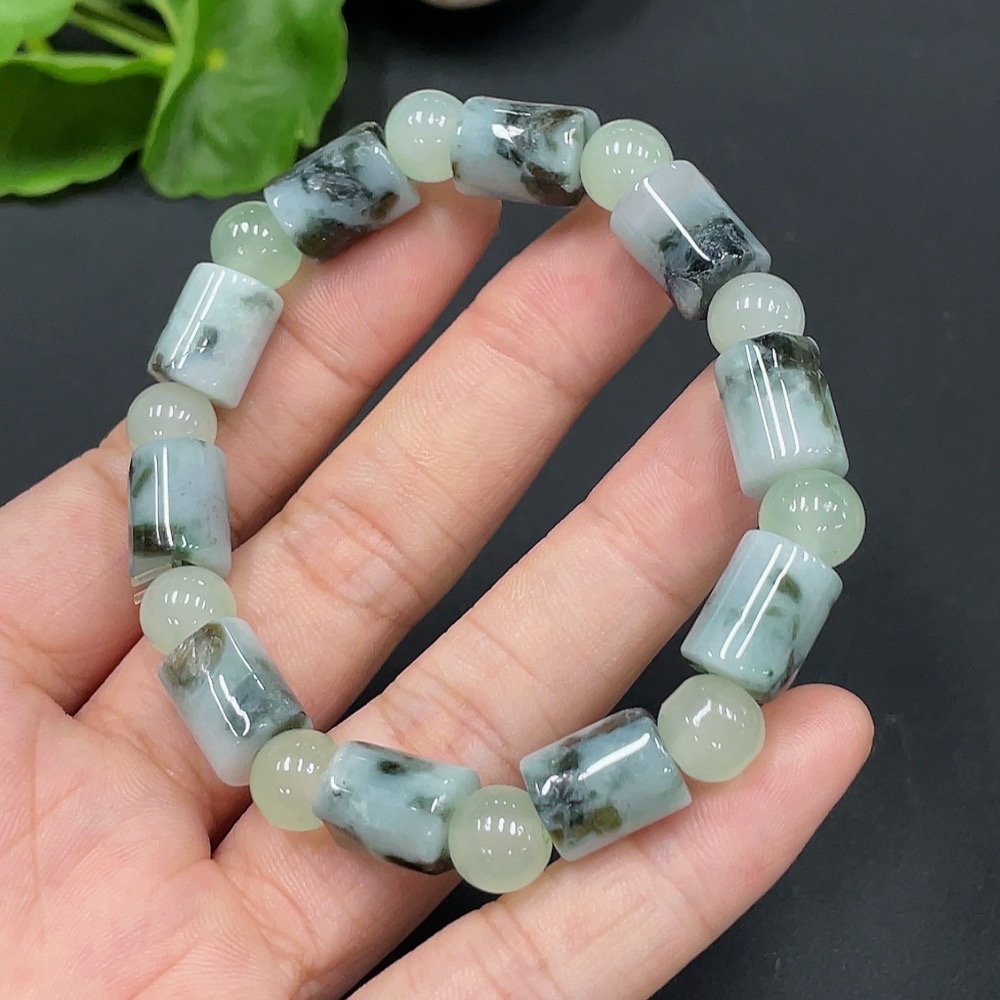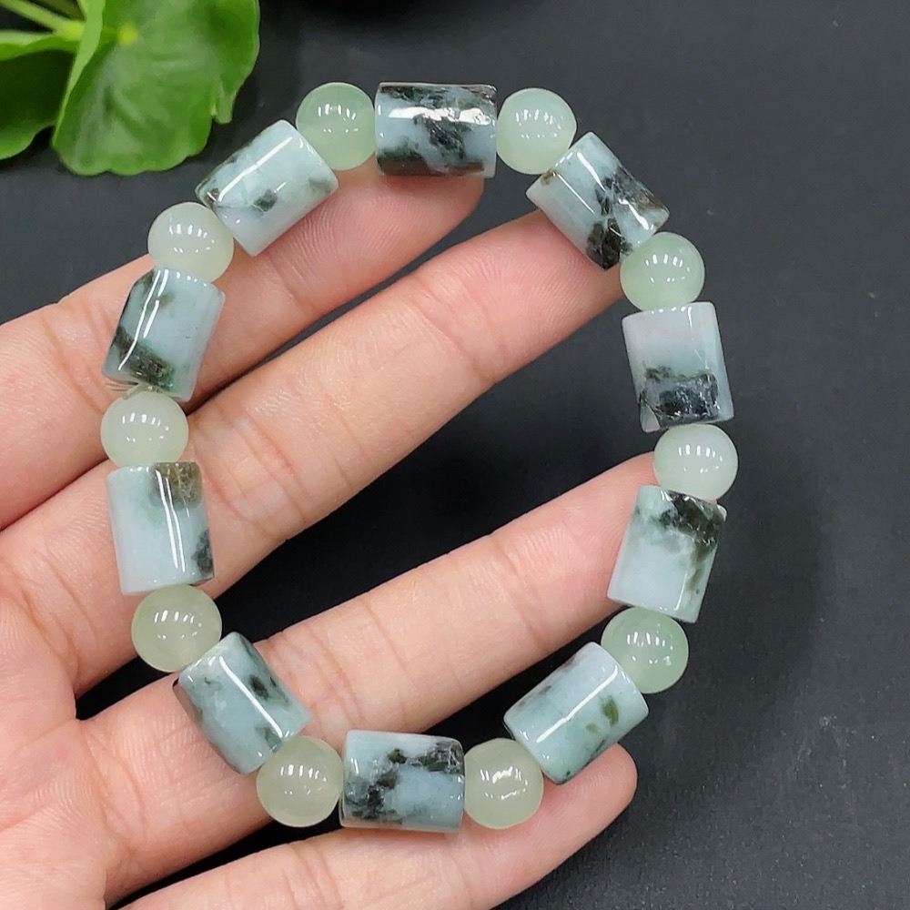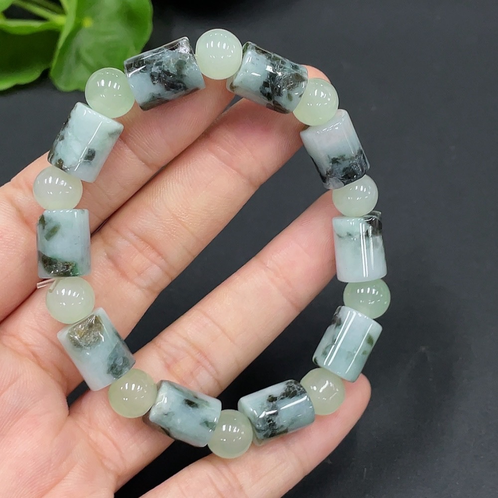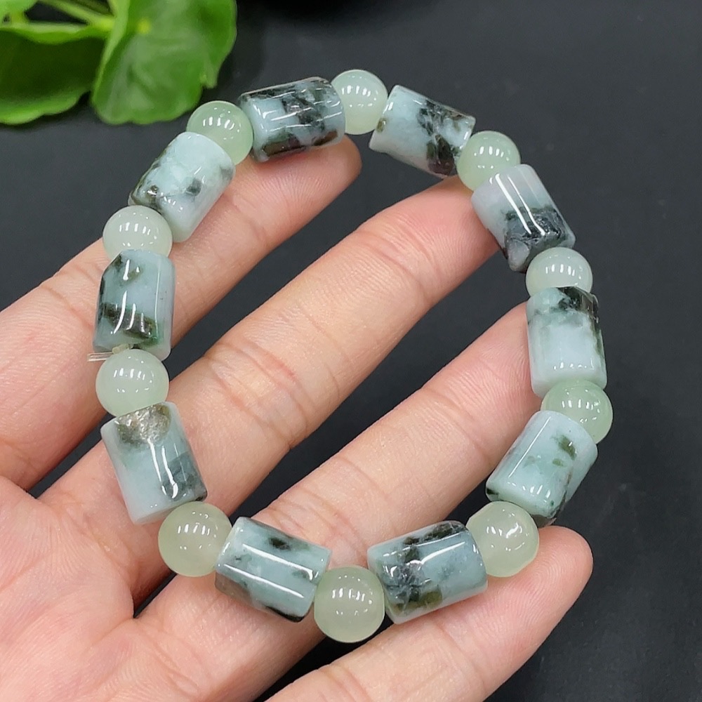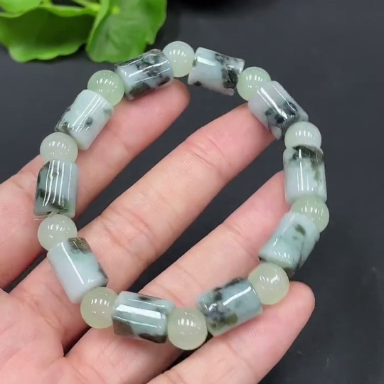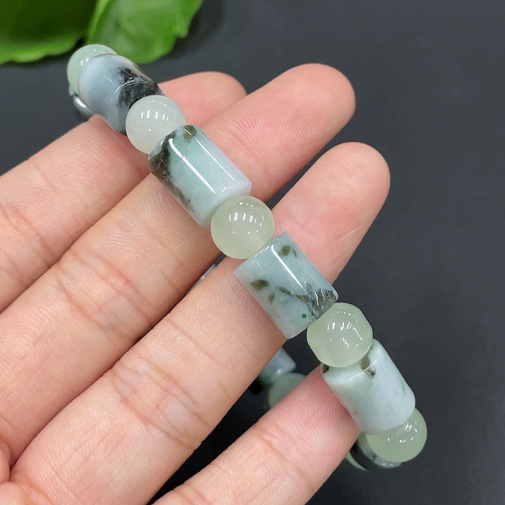 Jadeitebead bracelet approx. 8.9mm with non-grade A beads containing other mineral components total weight 27.232g