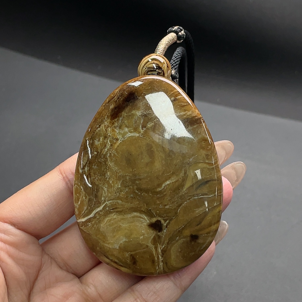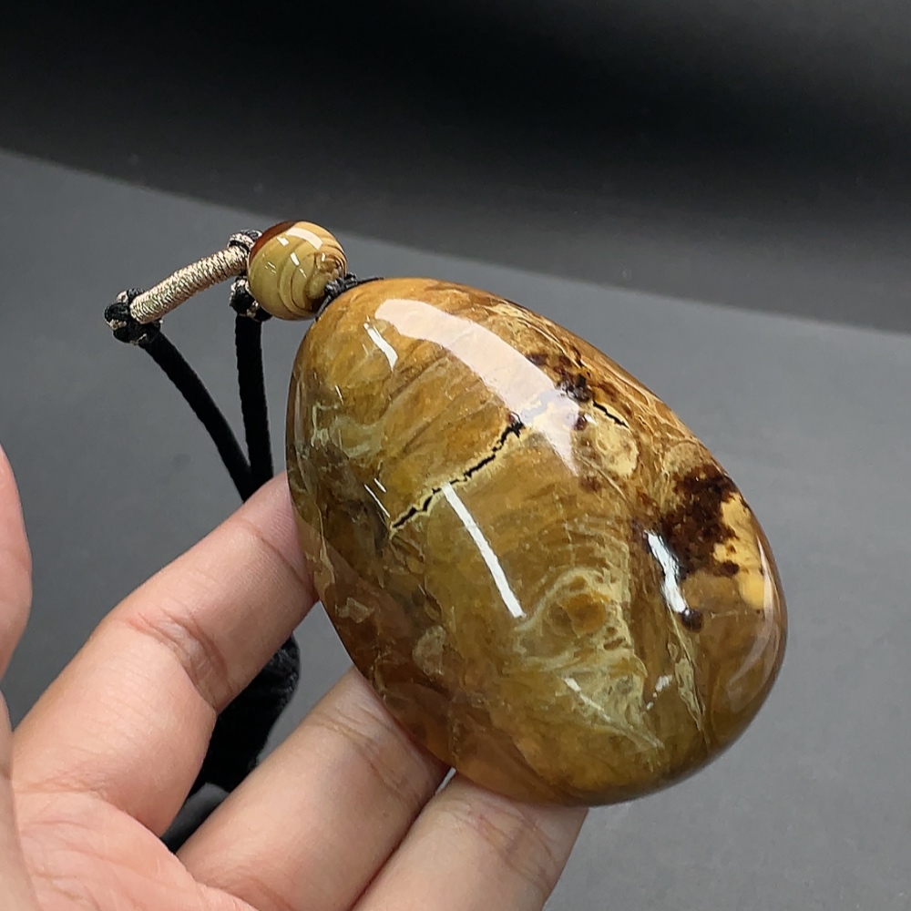 Amber pendant with cord, total weight approx. 56.50g