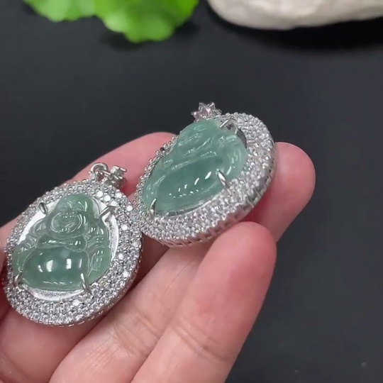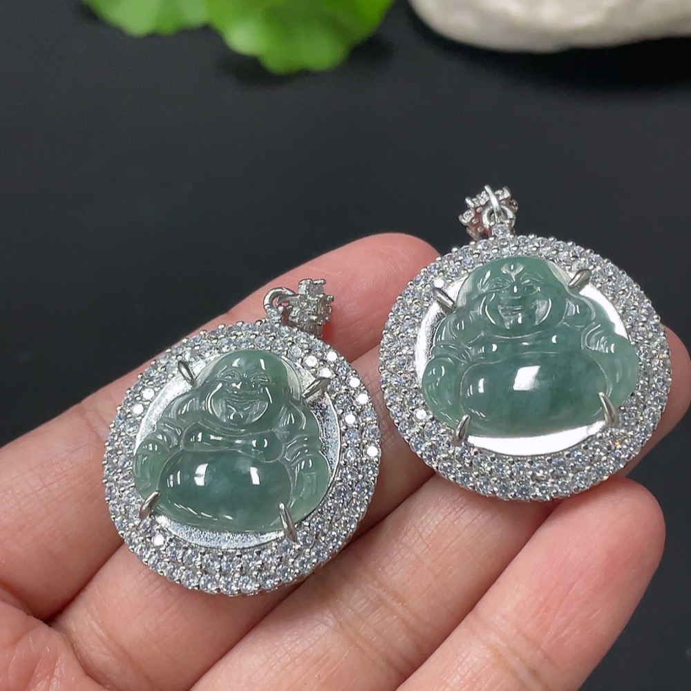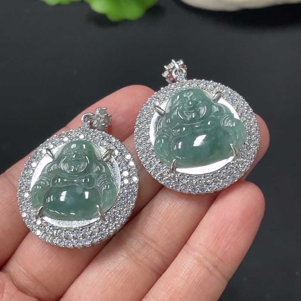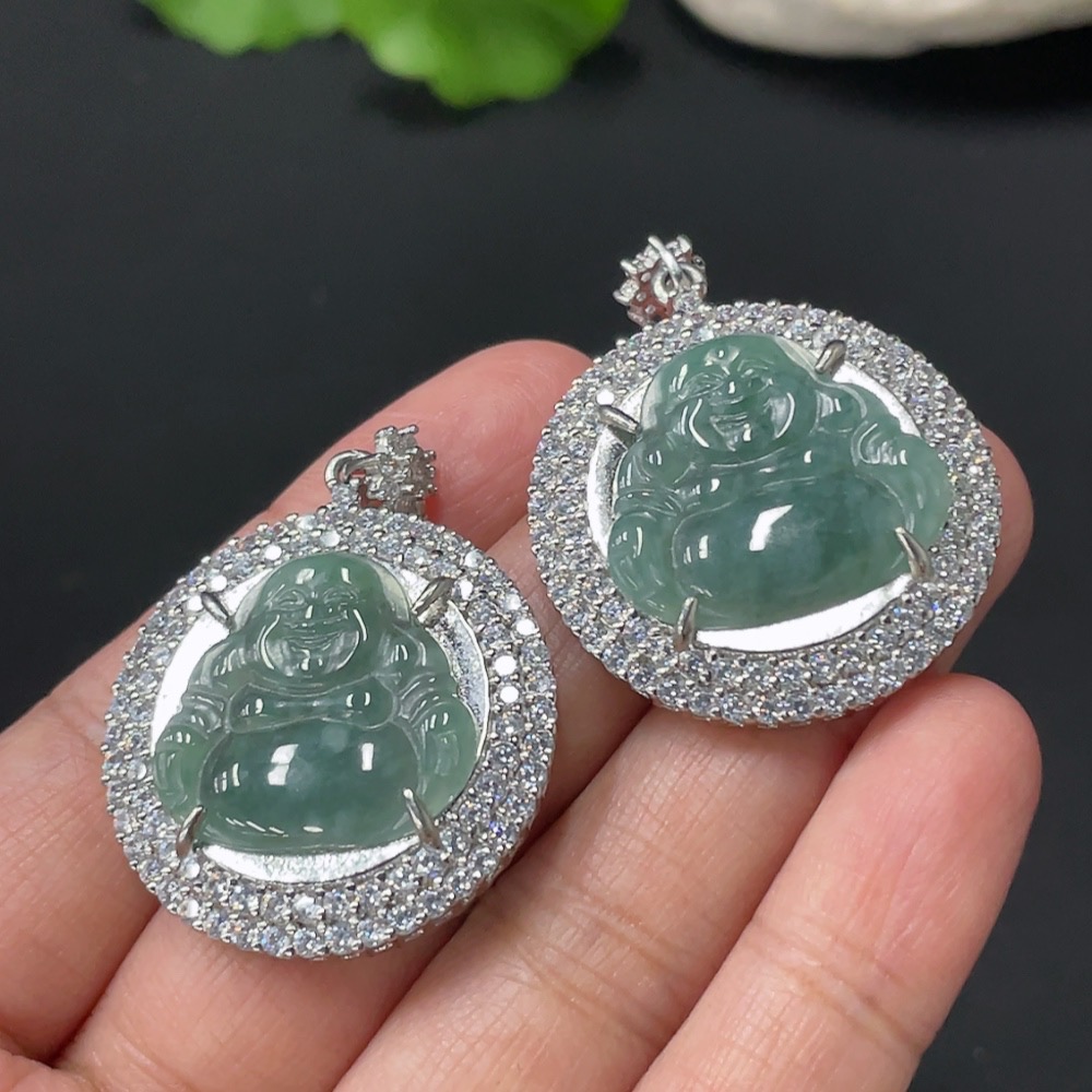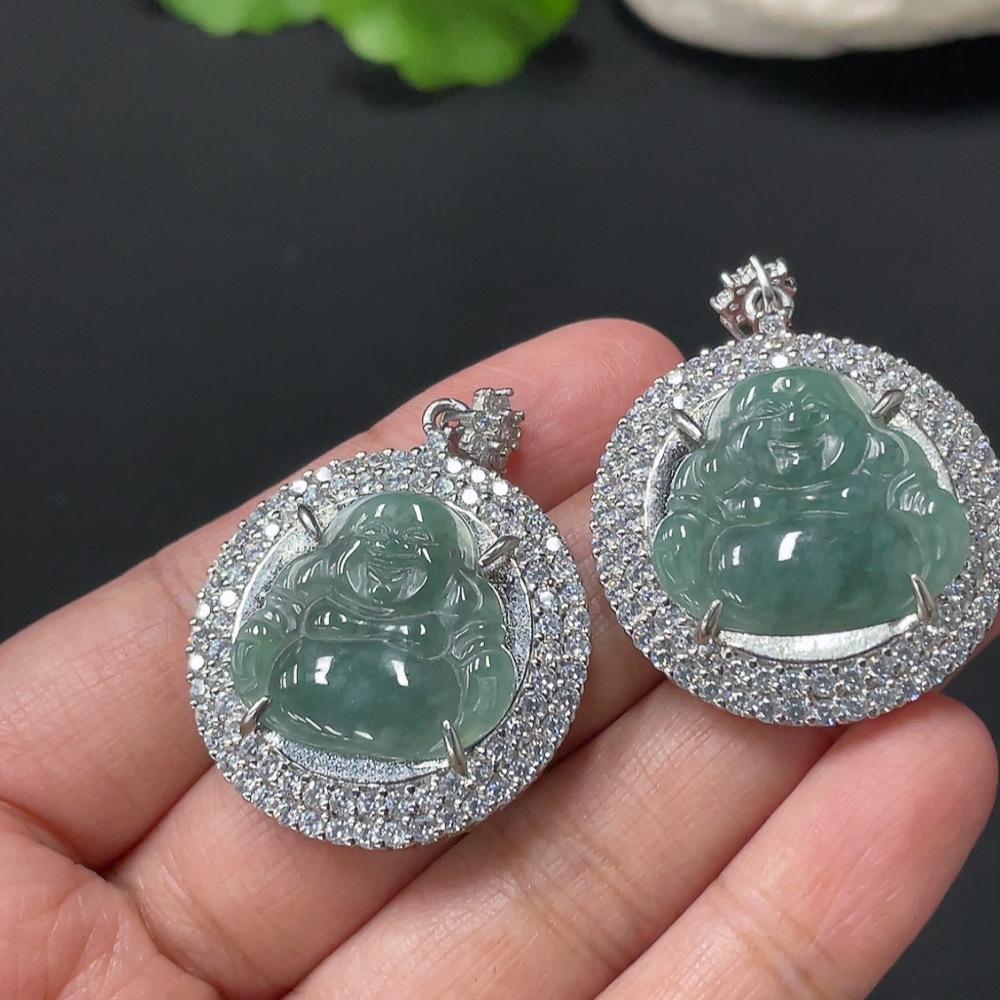 Jadeite Inlaid Buddha Pendant, Non-Gold Inlaid