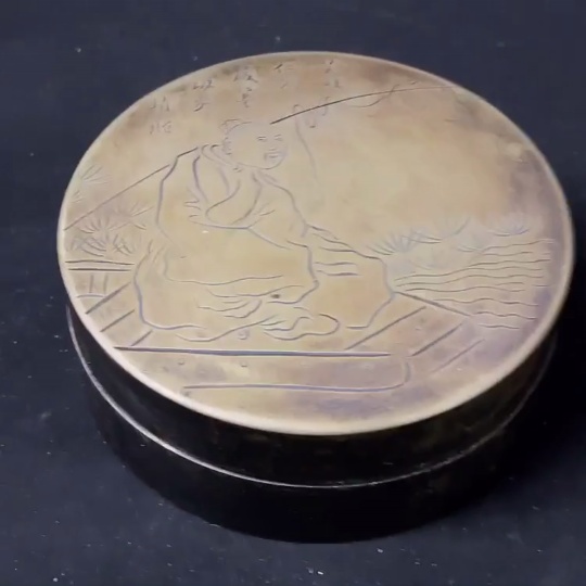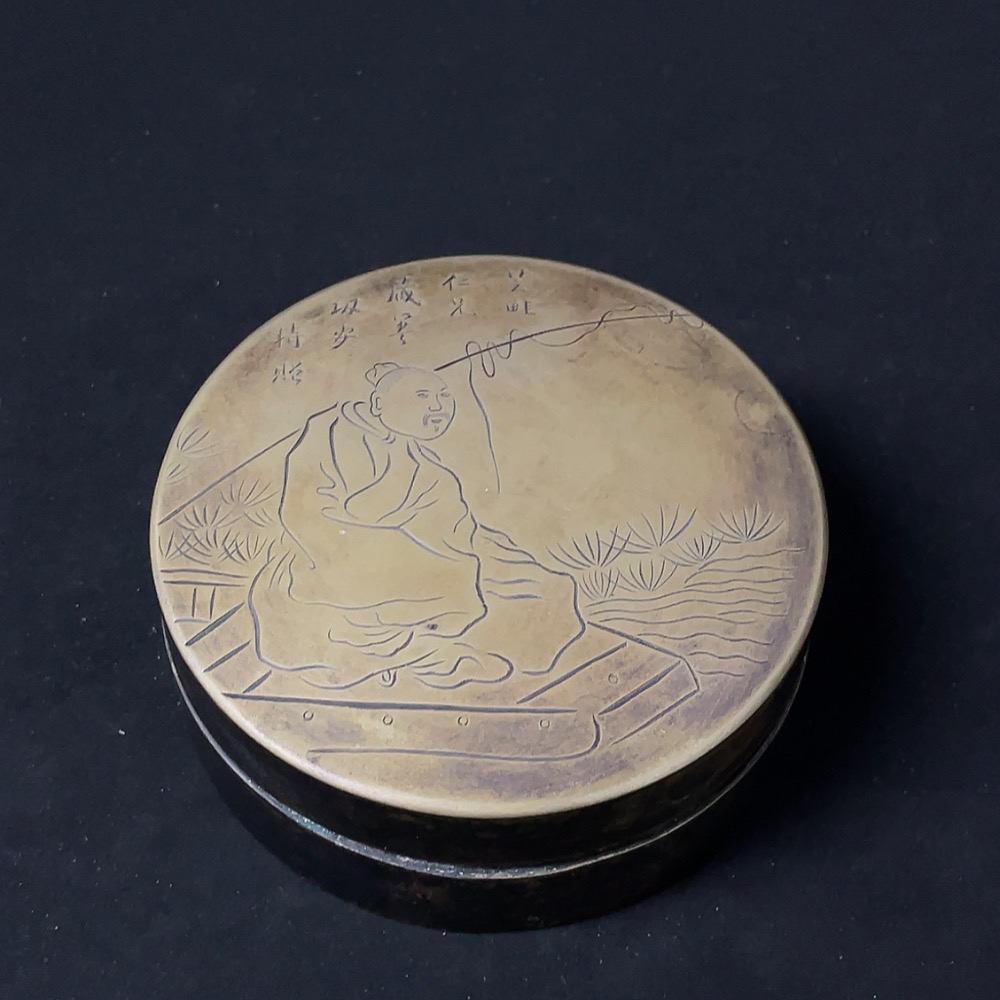 Doubtful Late Qing to Republic Period Old Man Fishing Bronze Ink Box with Wanchang Mark, Sundries