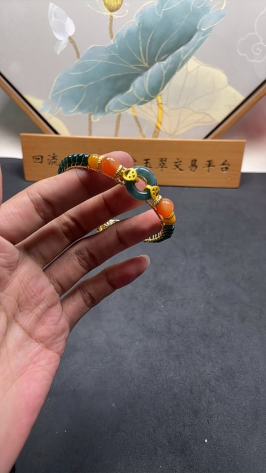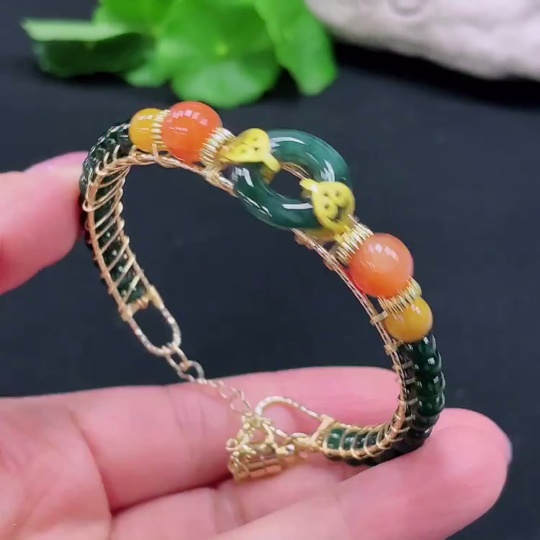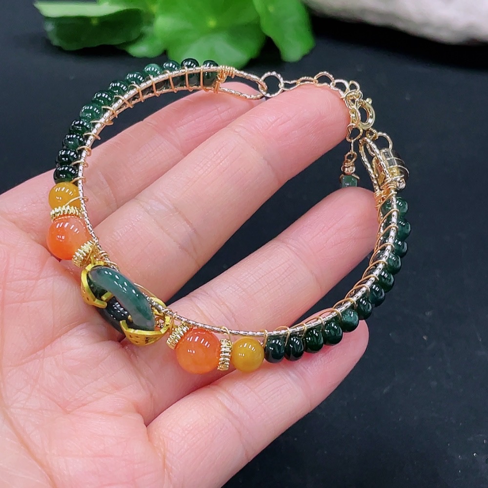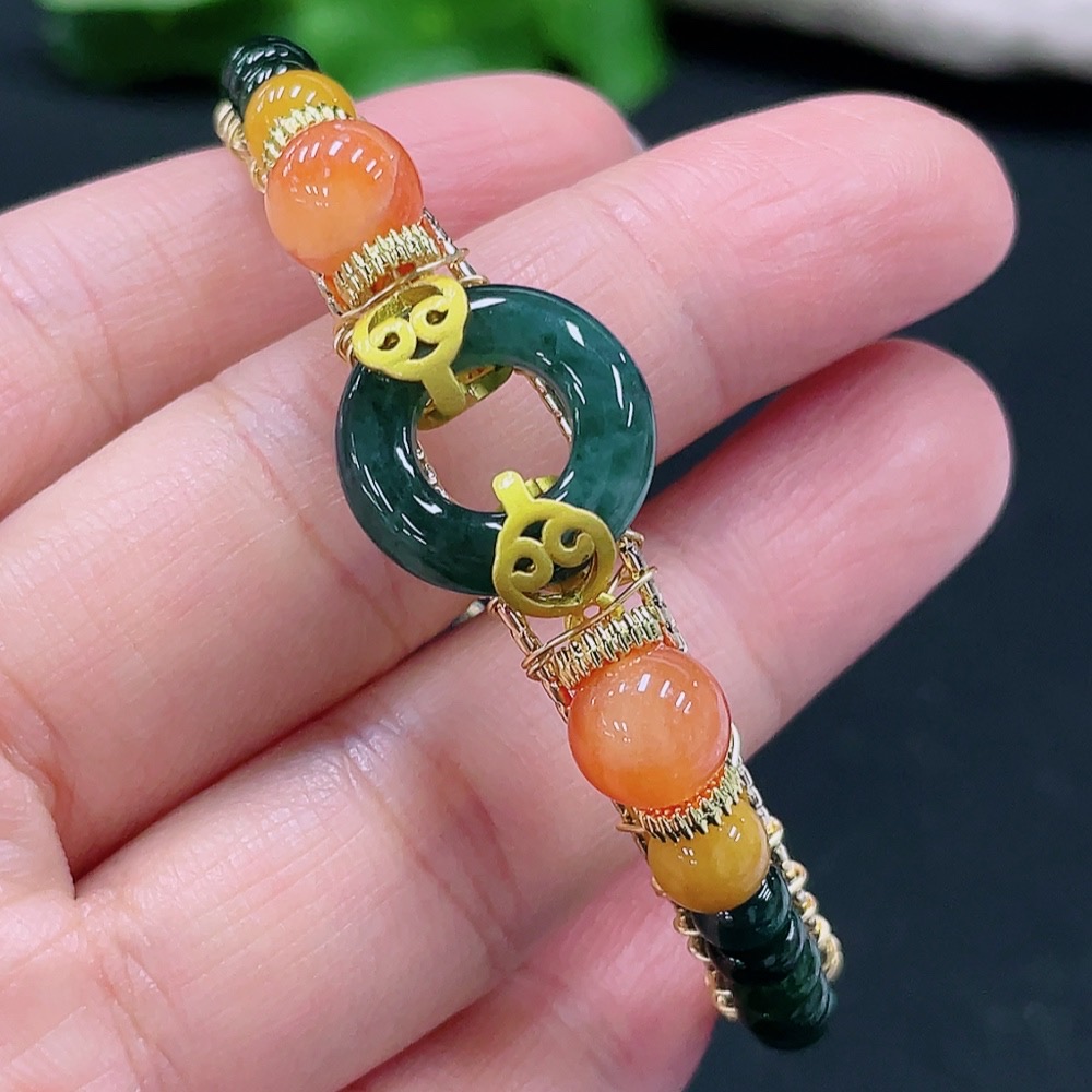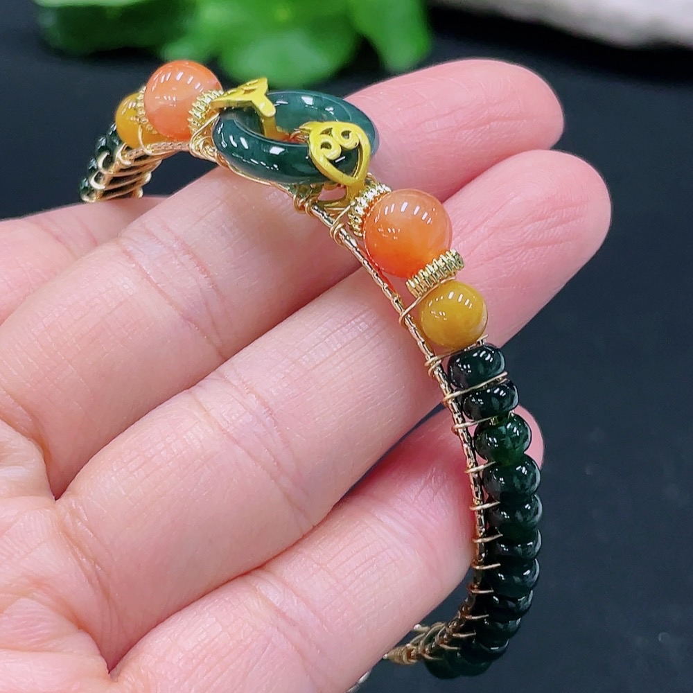 Jadeite Inlaid Hand Jewelry Non-Gold Inlaid Red and Yellow Beads Non-A Total Weight Approx. 14.28g
