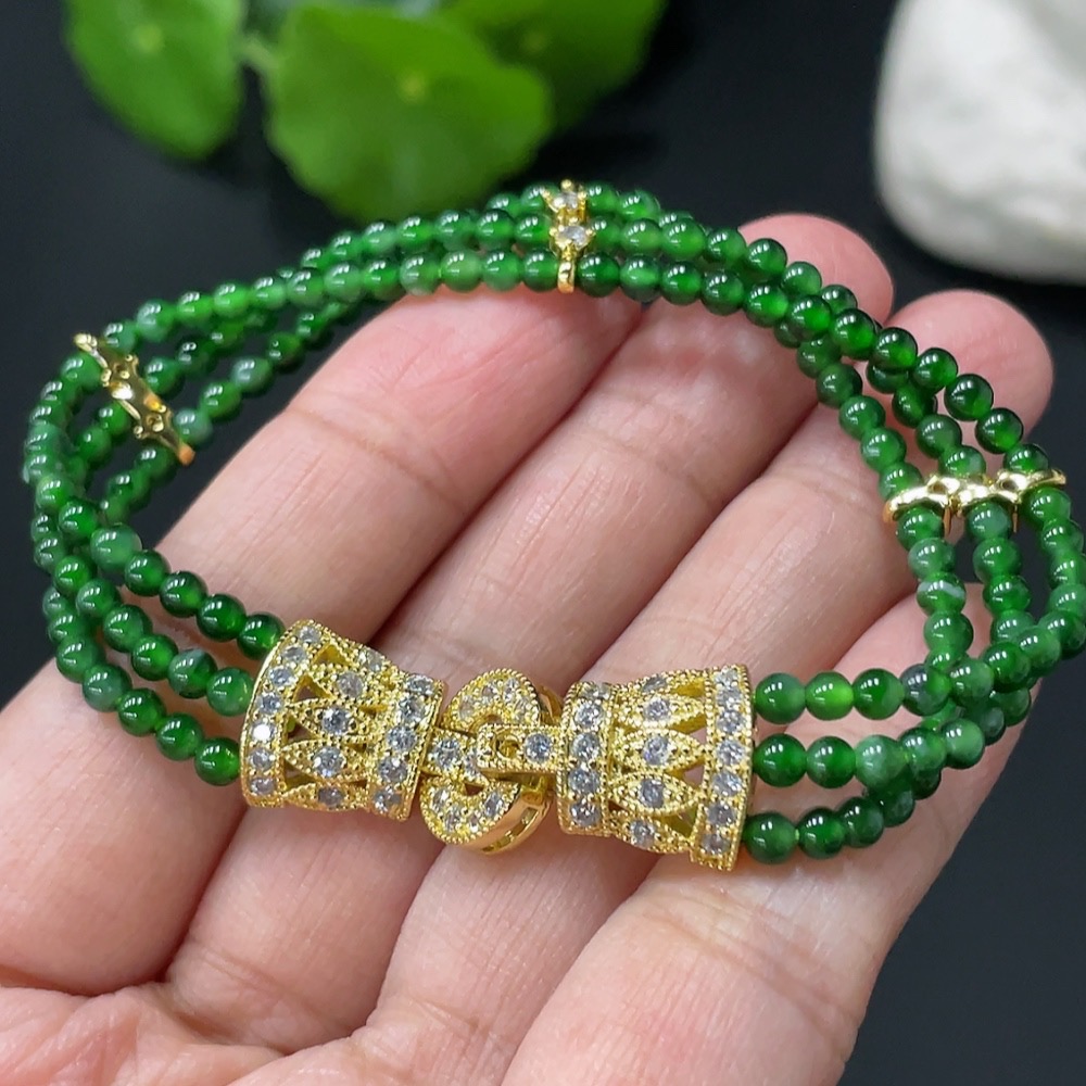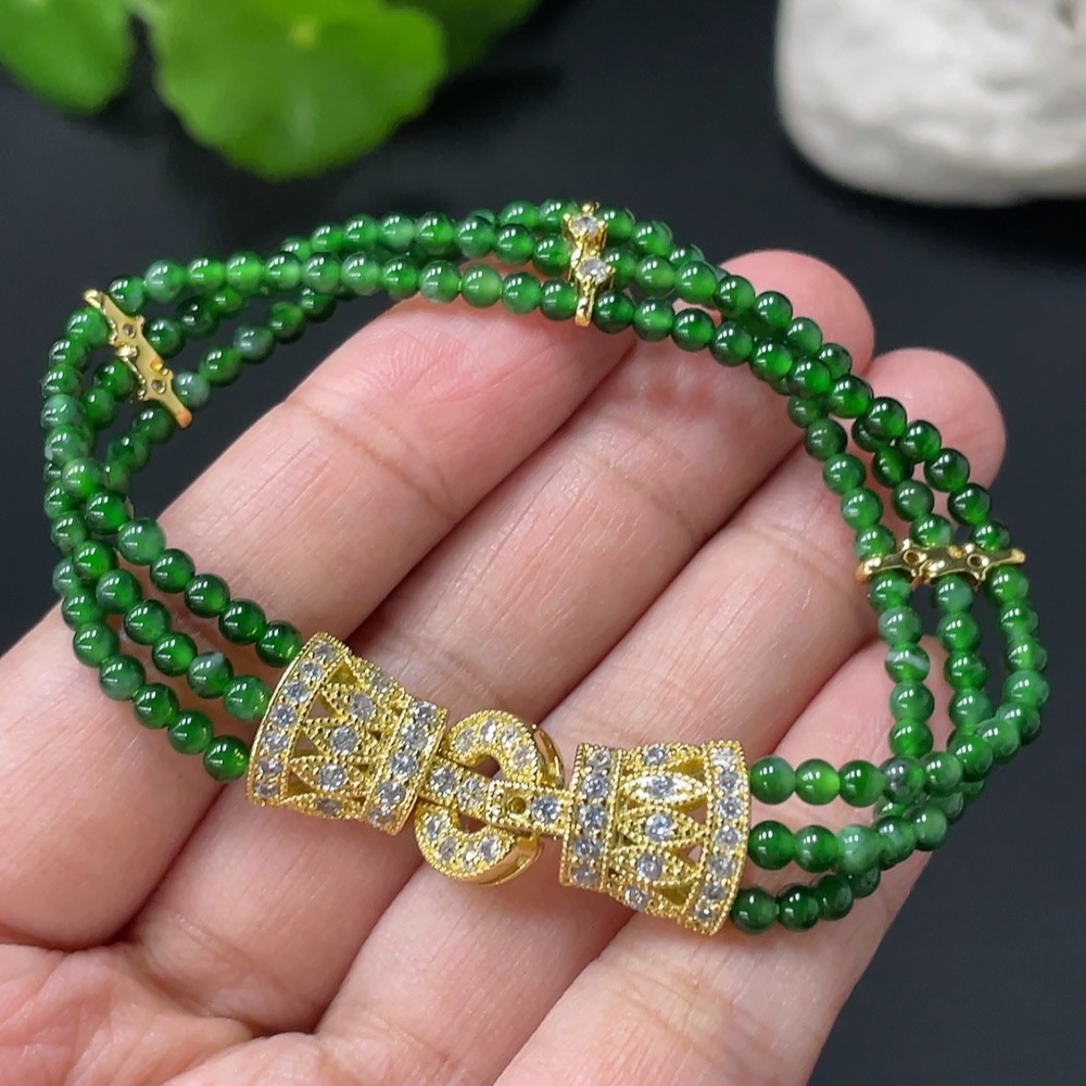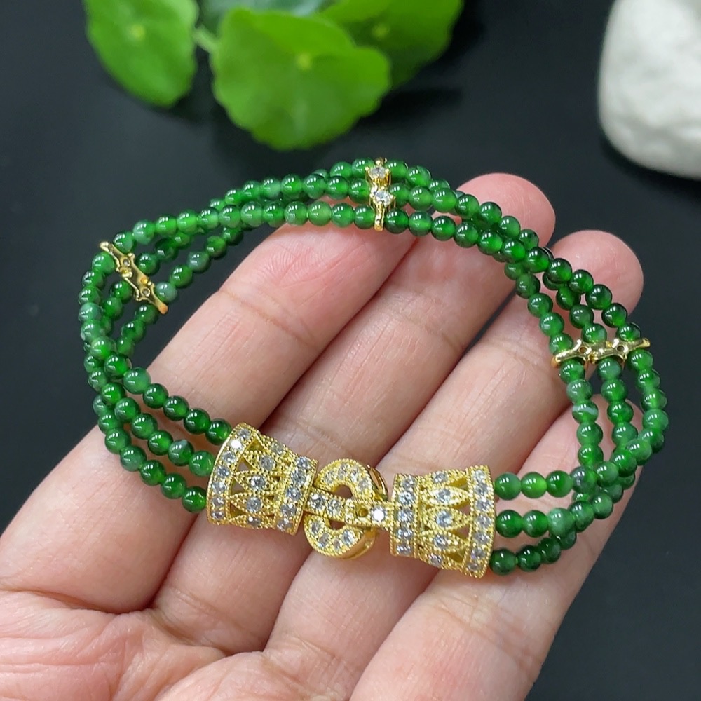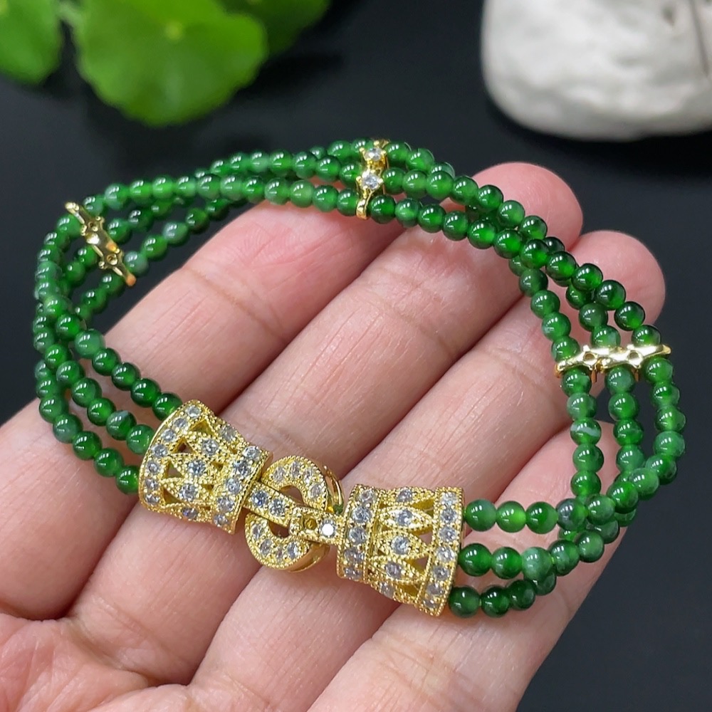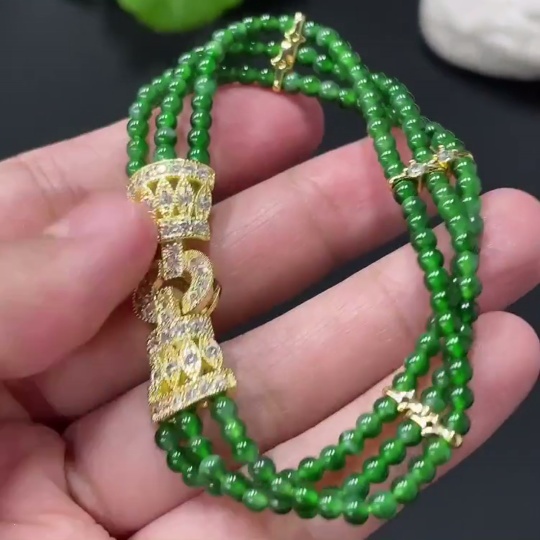 Jadeite Inlaid Bracelet Card 2.8mm Approx. Weight 12.11g Rope Buckle Non-Gold