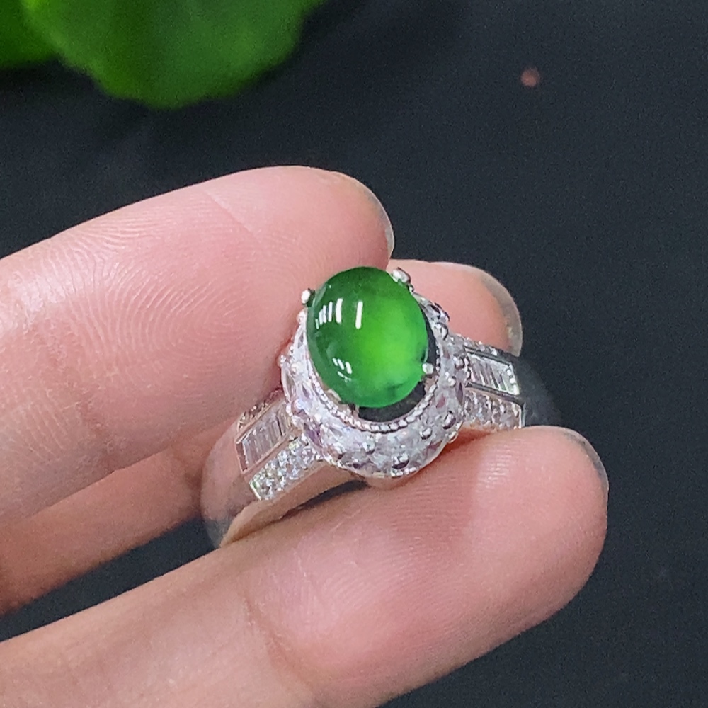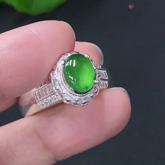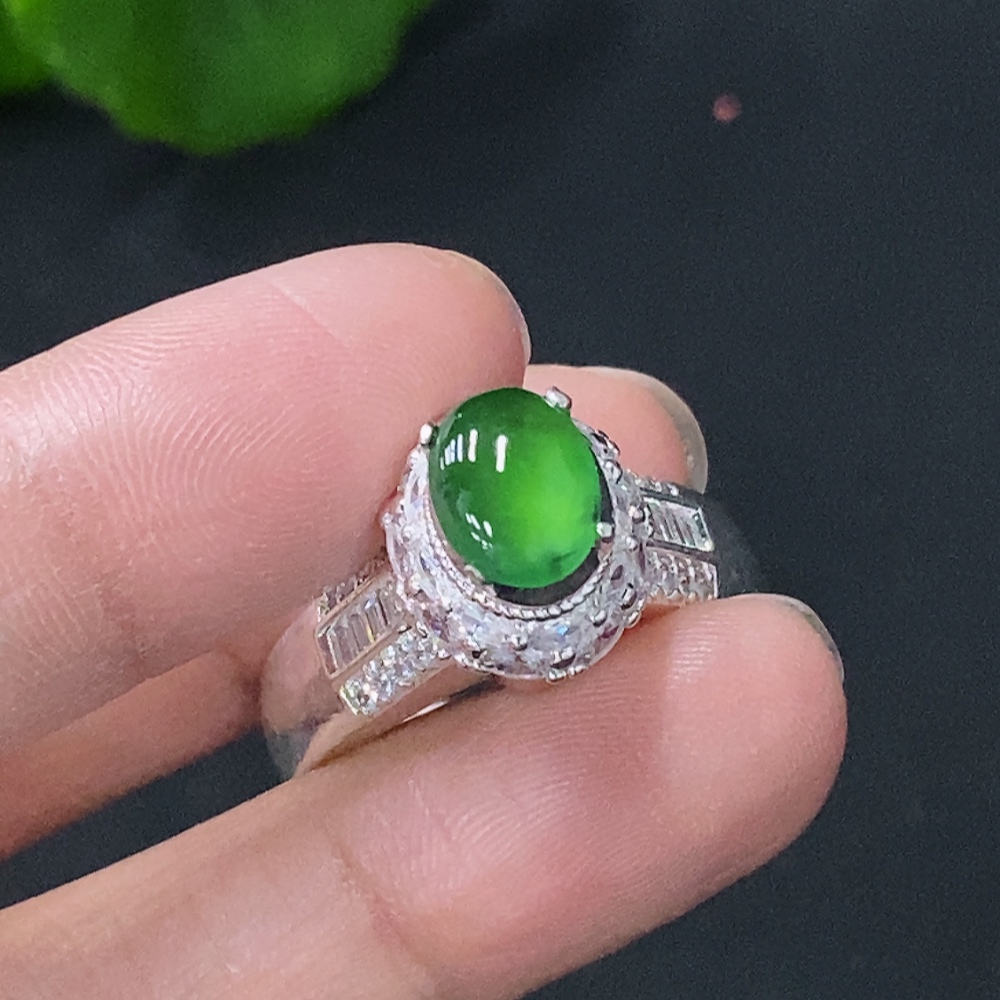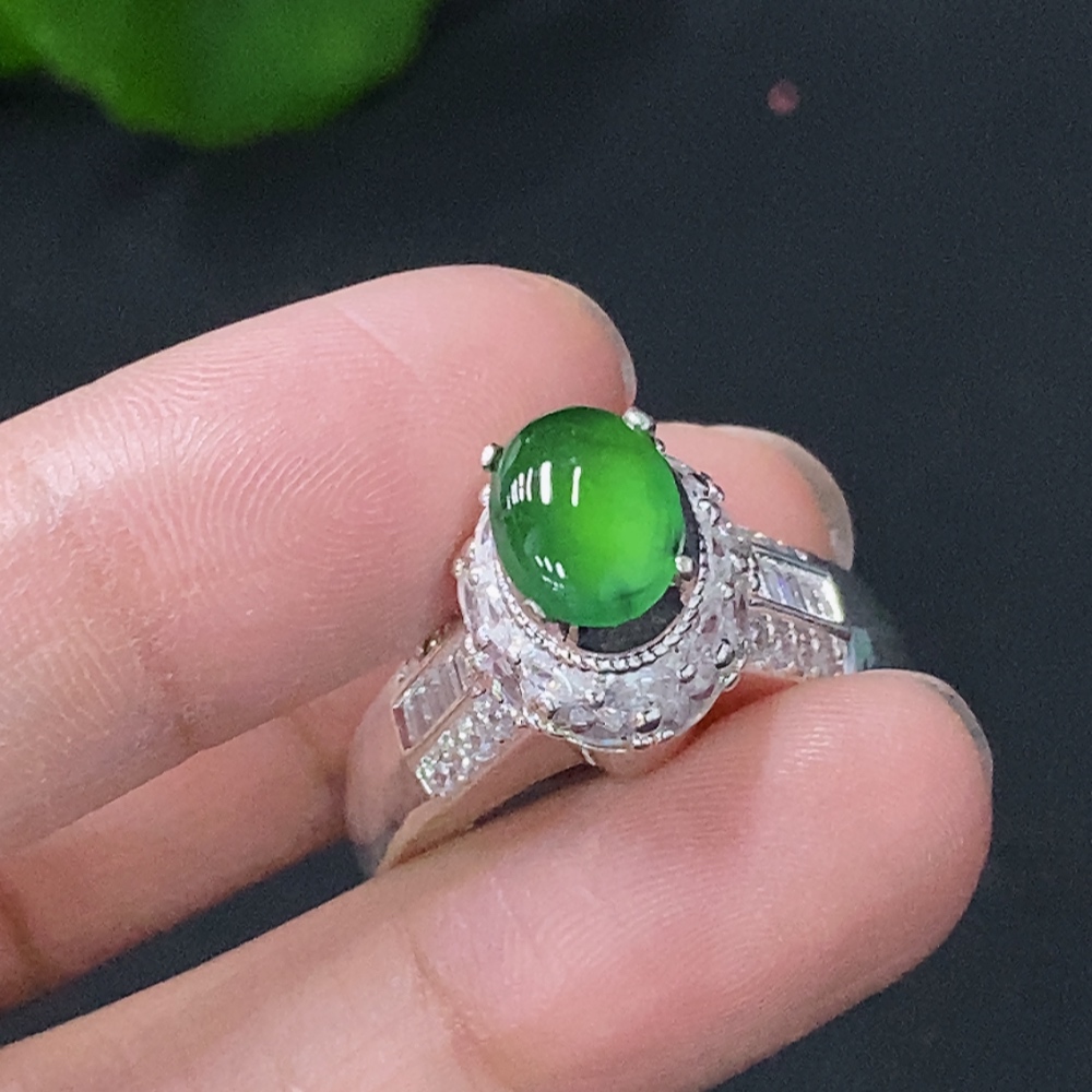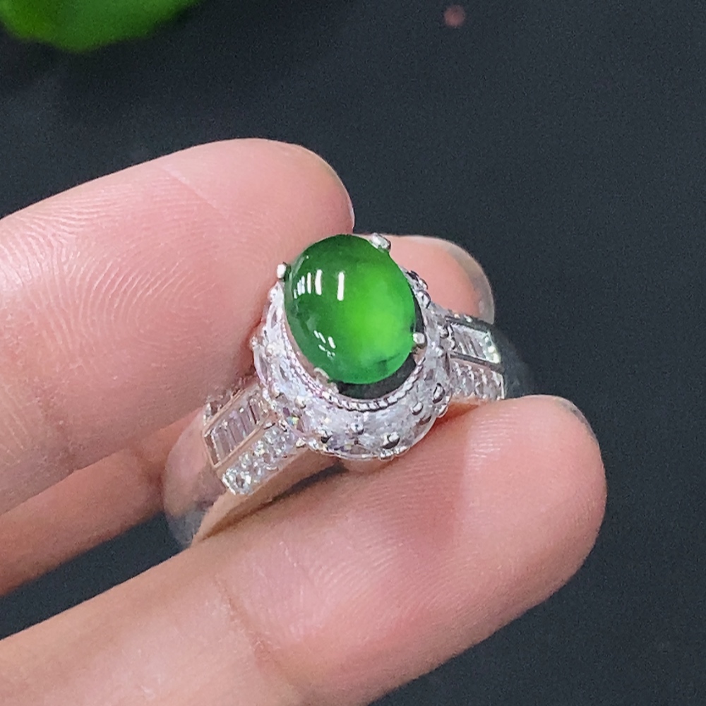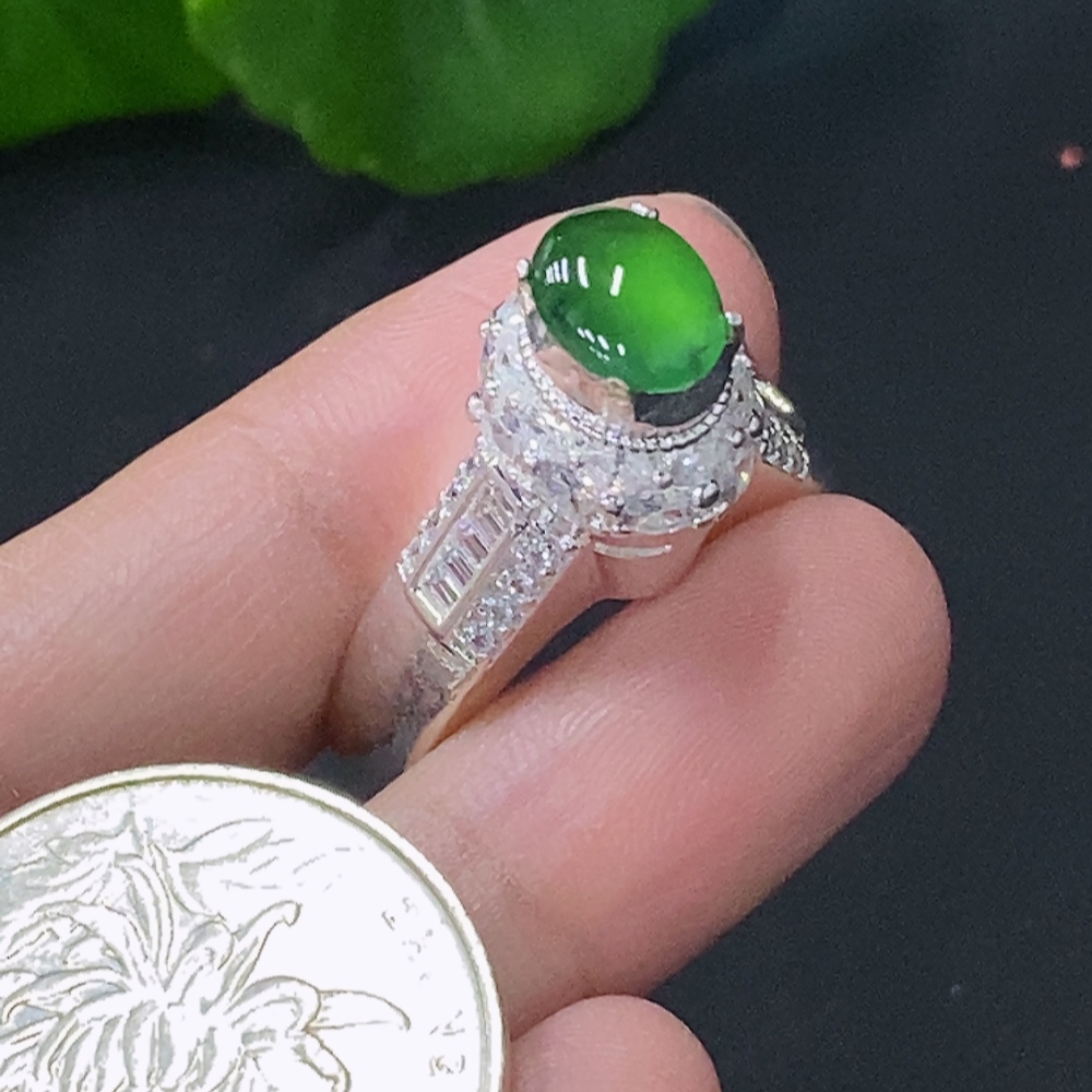 Jadeite Inlaid Cabochon with Copper Setting, Total Weight Approx. 11.15g