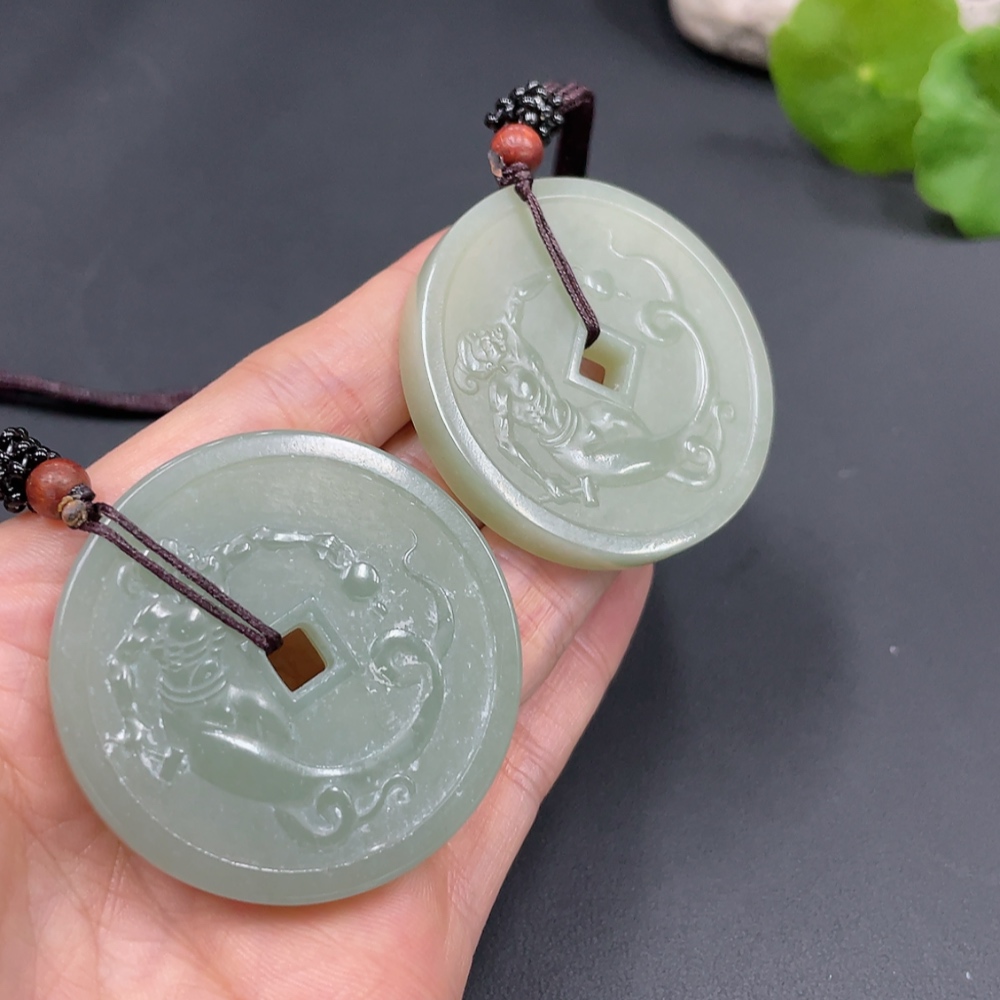 Hetian Jade Pendant, Master Craftsman, Total Weight (including rope) approx. 62.3g