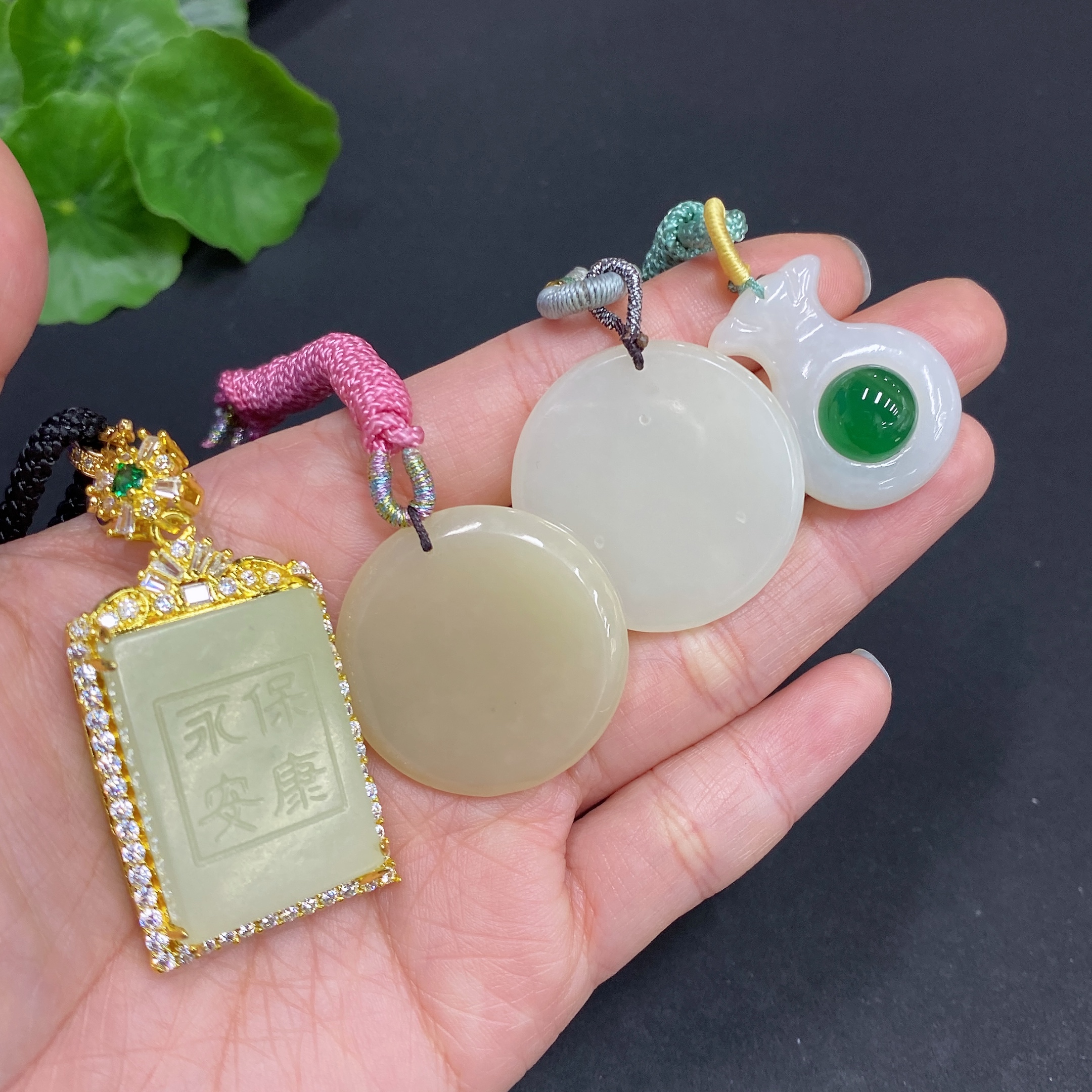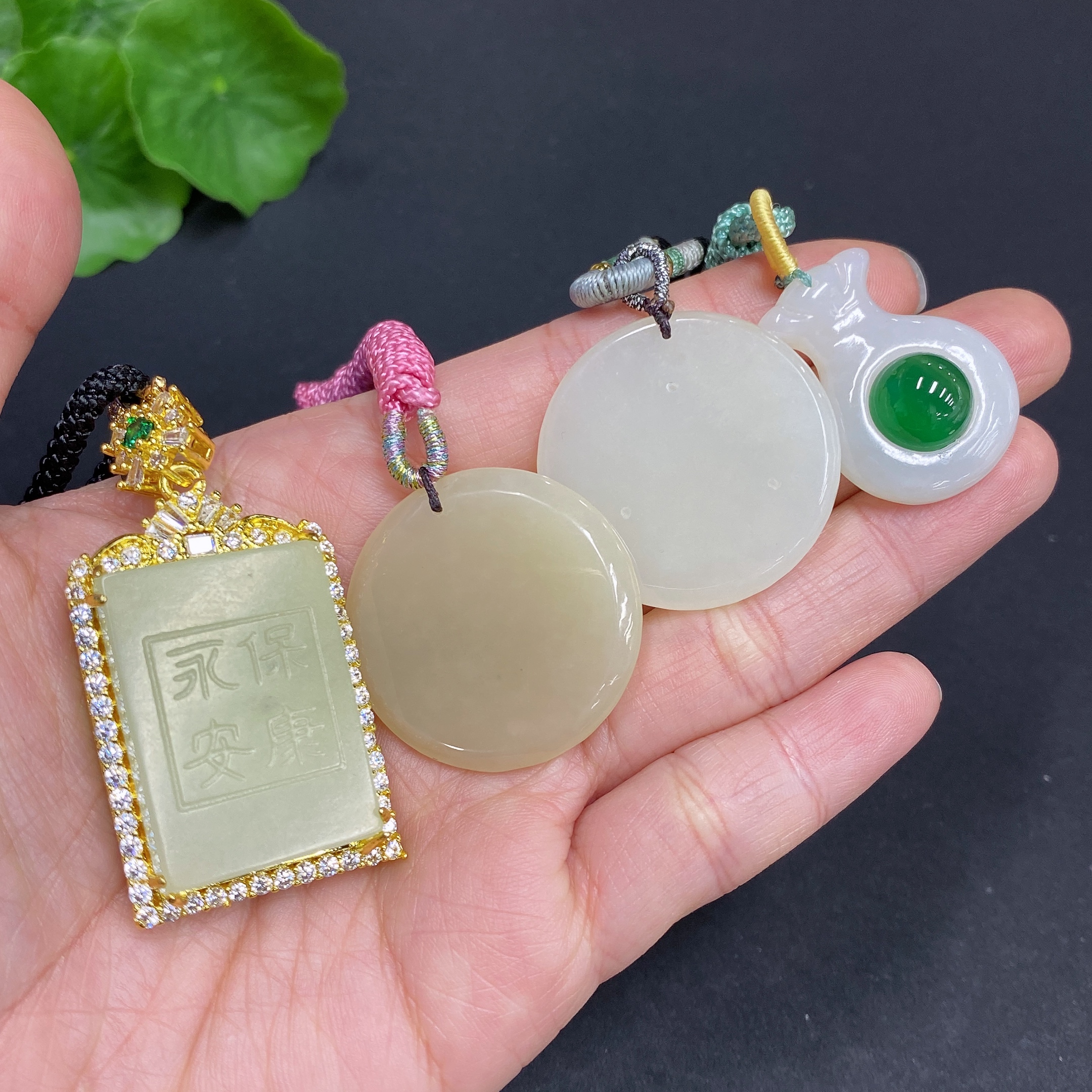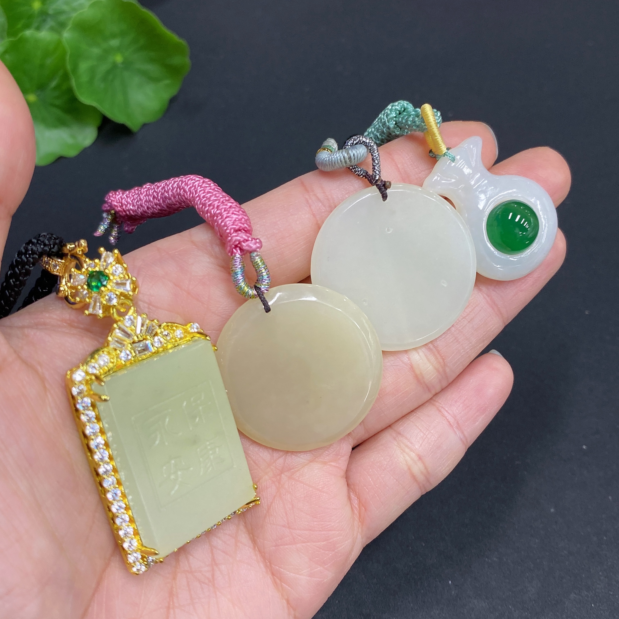 Hetian Jade Pendant Non-Gold Inlaid Gross Weight Approx. (Including Rope) 47g Accessories Non-Hetian Jade