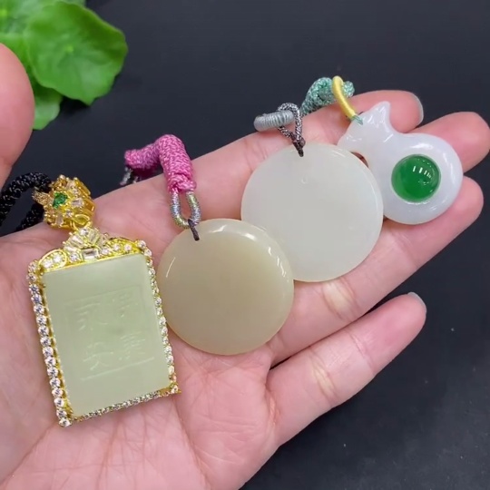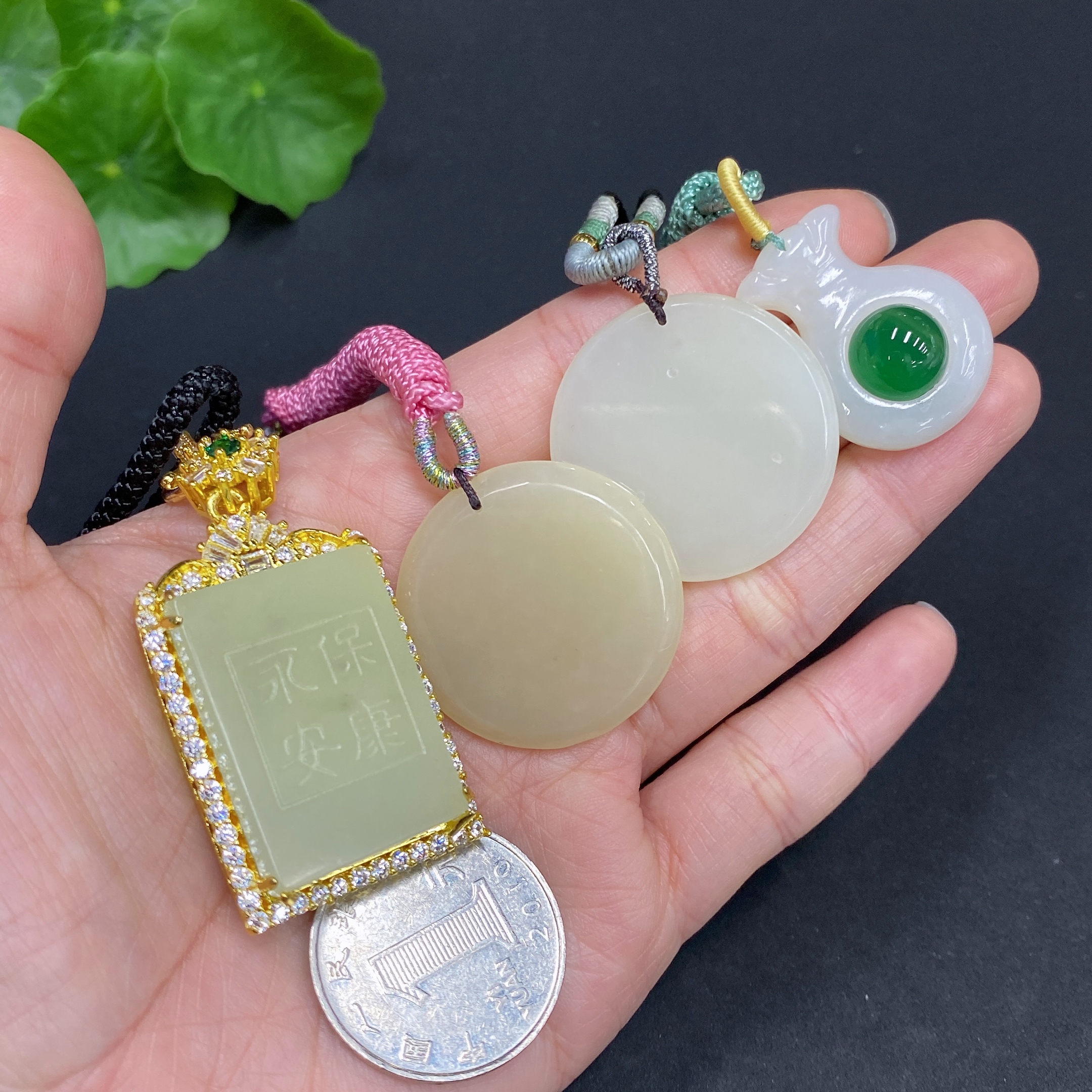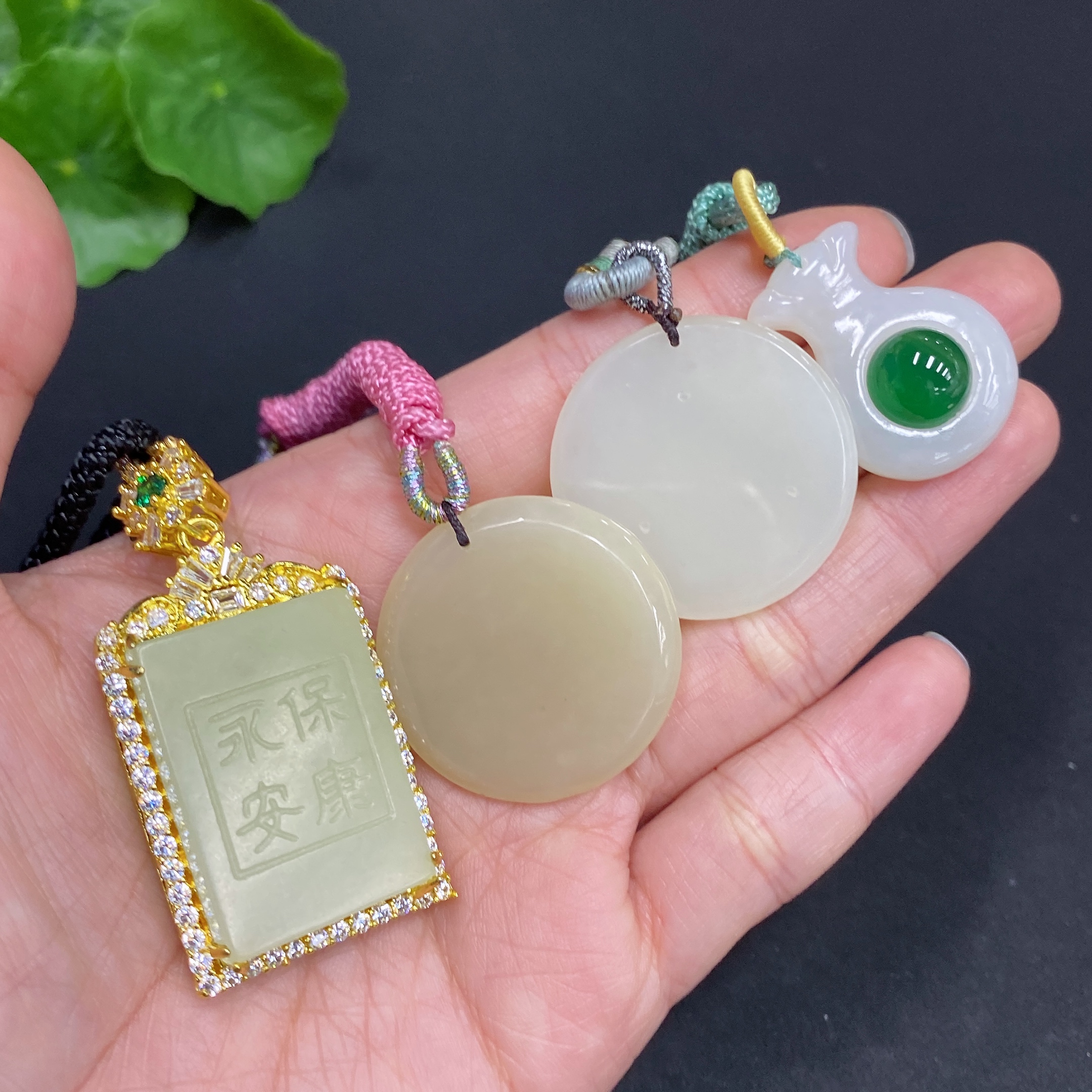 Hetian Jade Pendant Non-Gold Inlaid Gross Weight Approx. (Including Rope) 47g Accessories Non-Hetian Jade