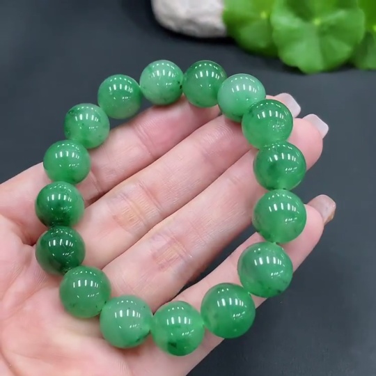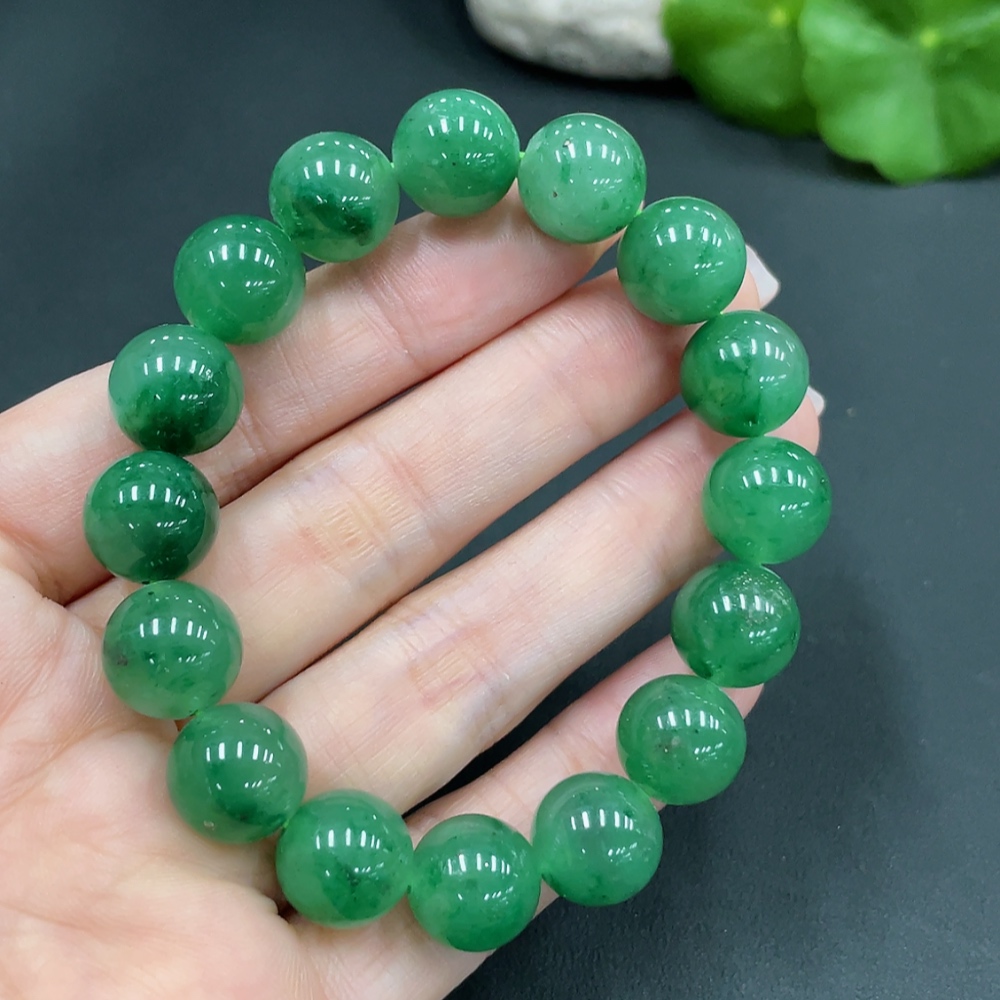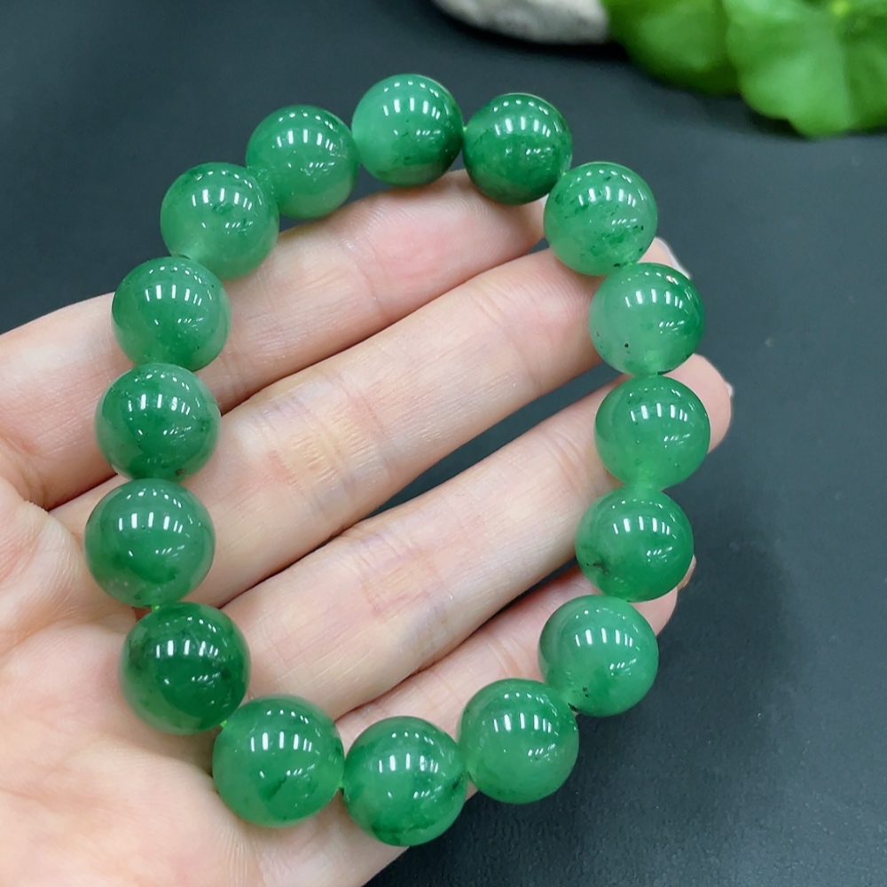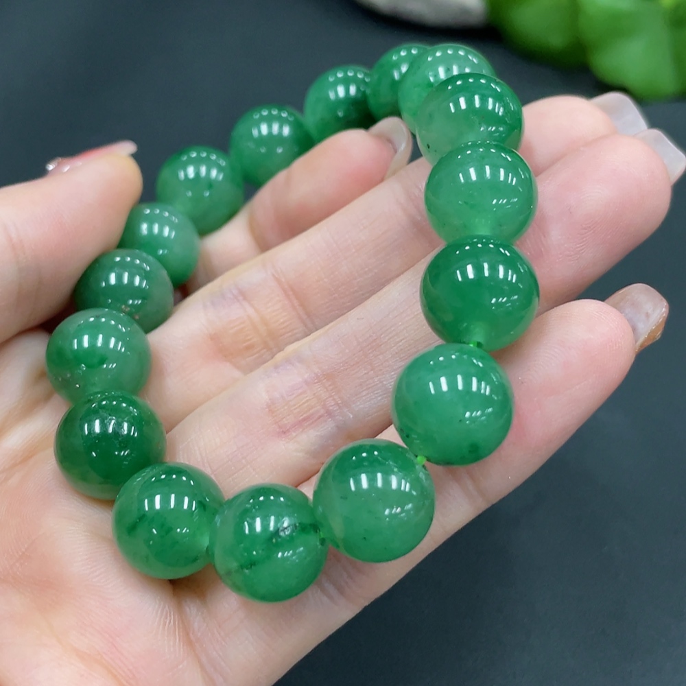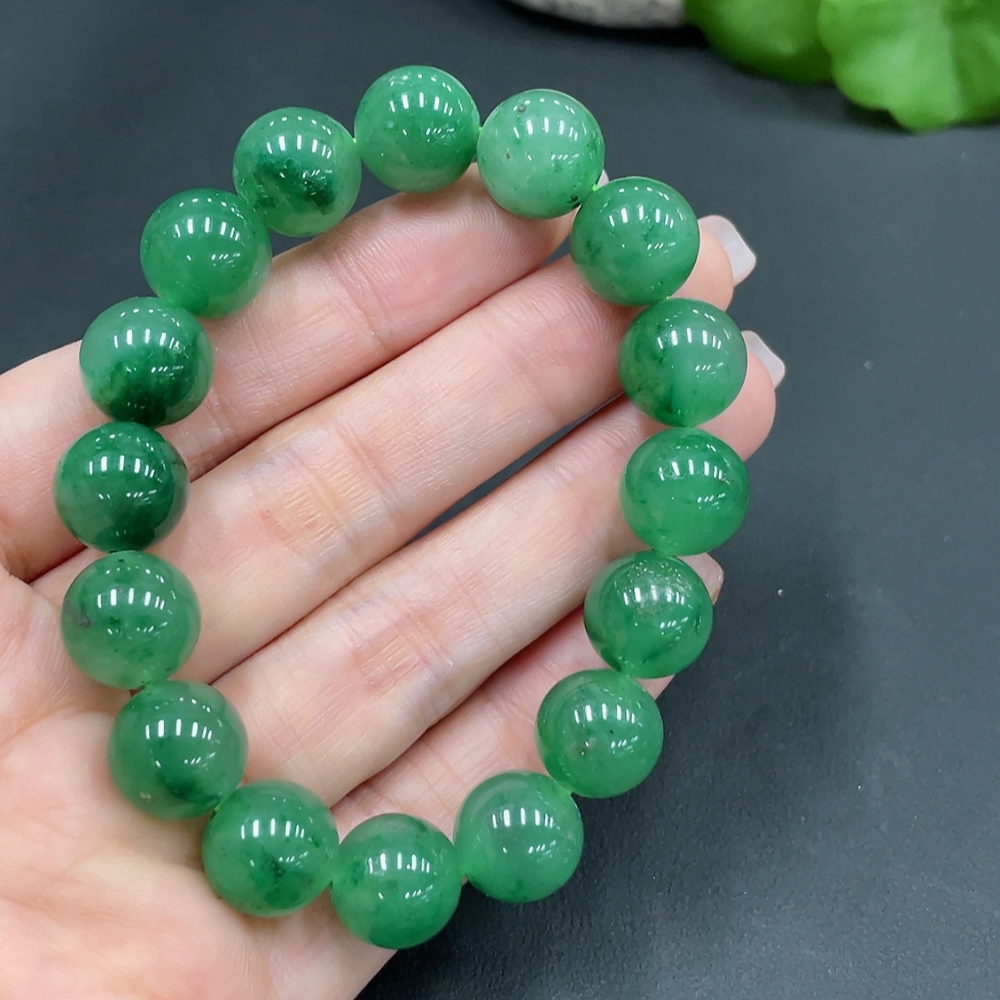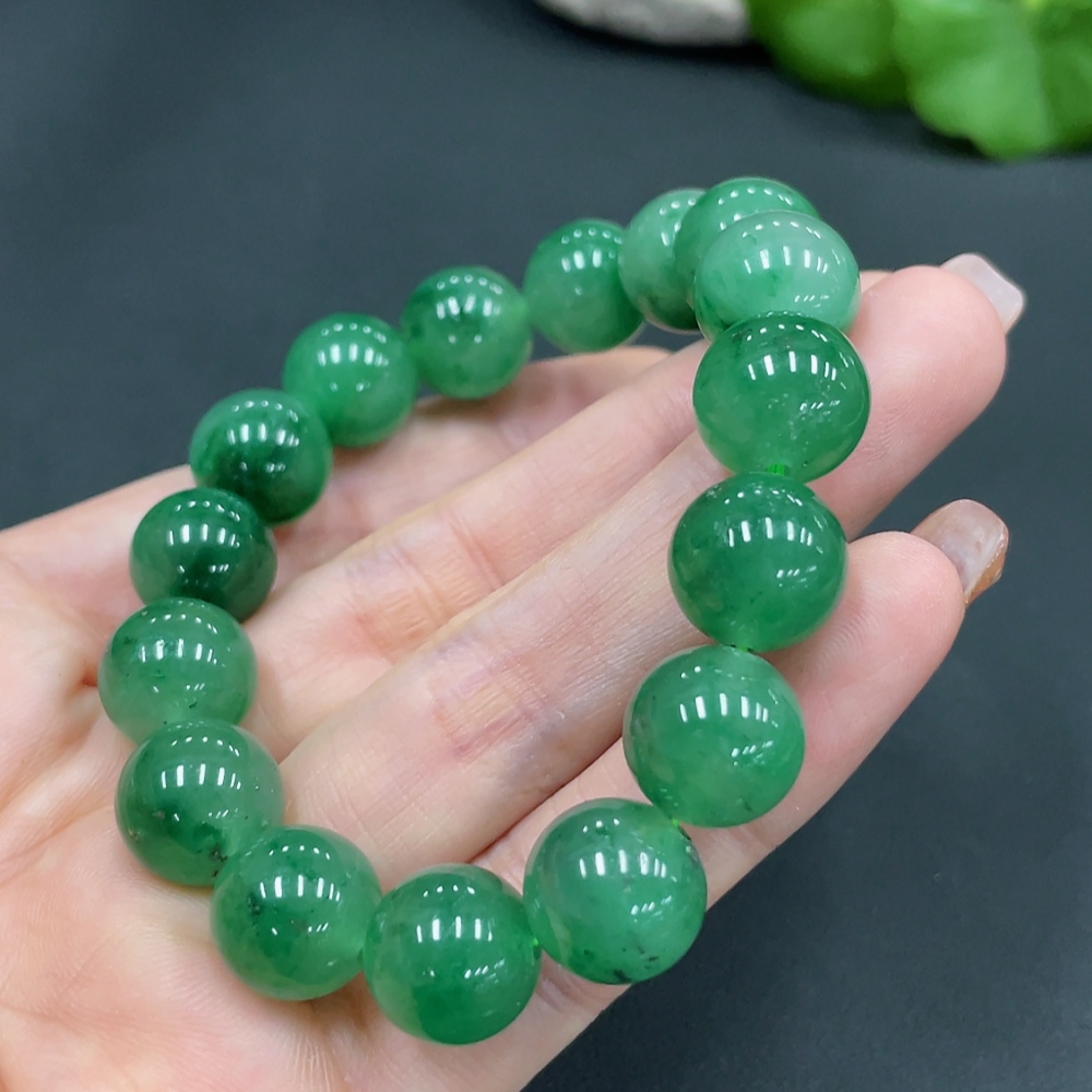 Dulong Jade Bracelet, approx. 12mm beads, total weight about 40.7g