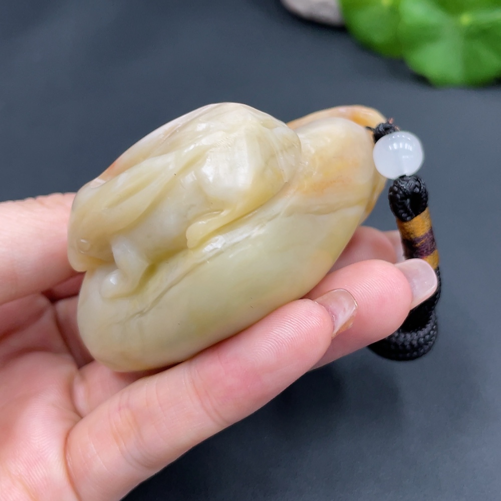 Shoushan Stone Handheld Ornament Rabbit Total Weight Approx. [Including Rope] 129.2g