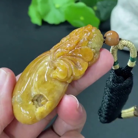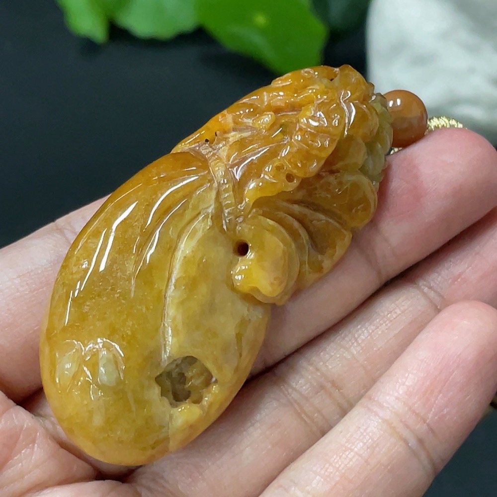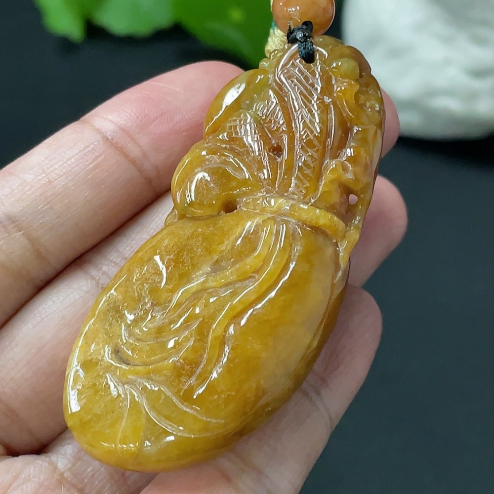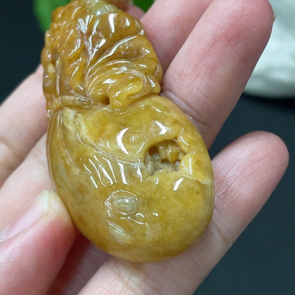 Jadeite money bag pendant, color origin undetermined, total weight 44.885g