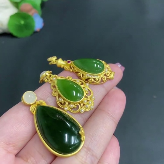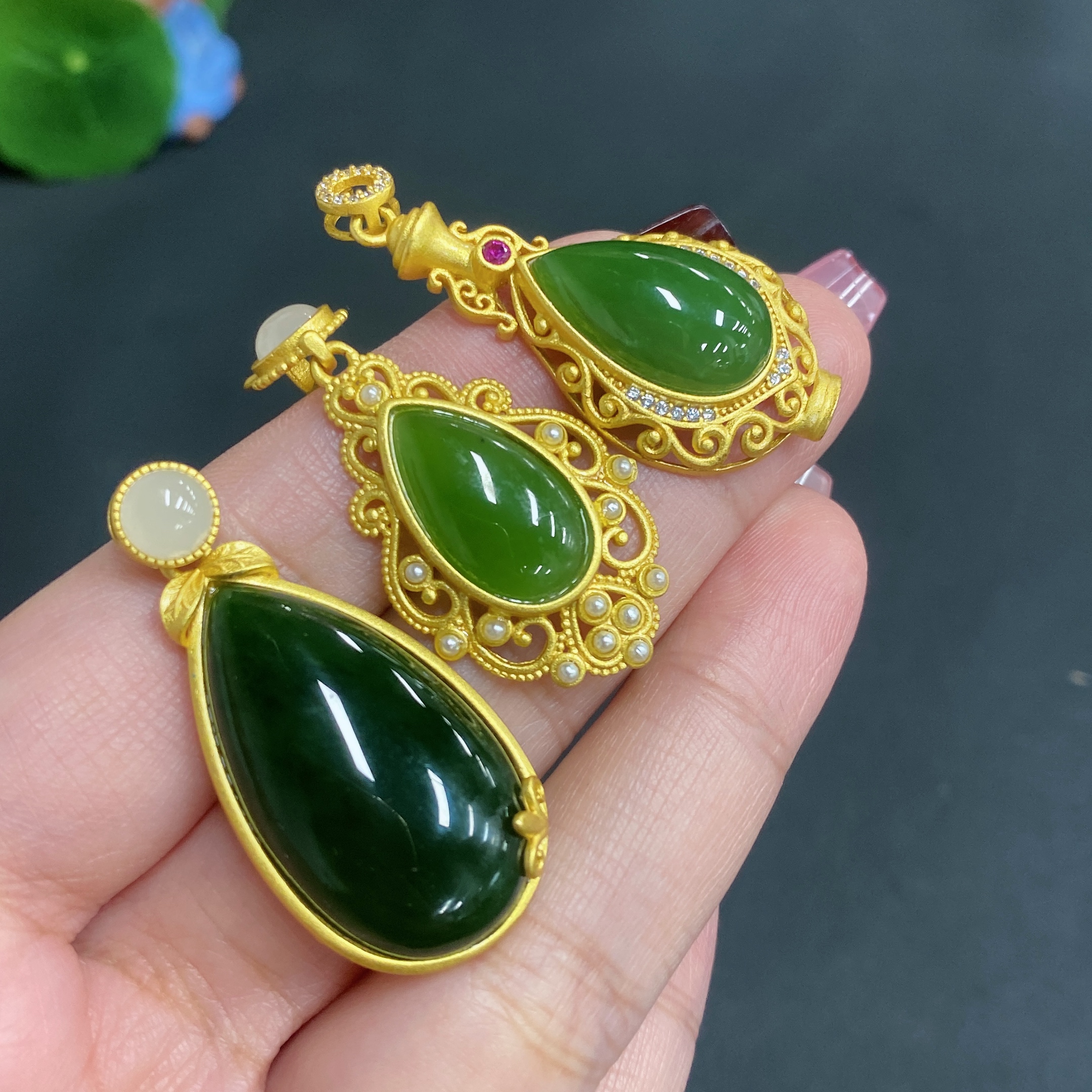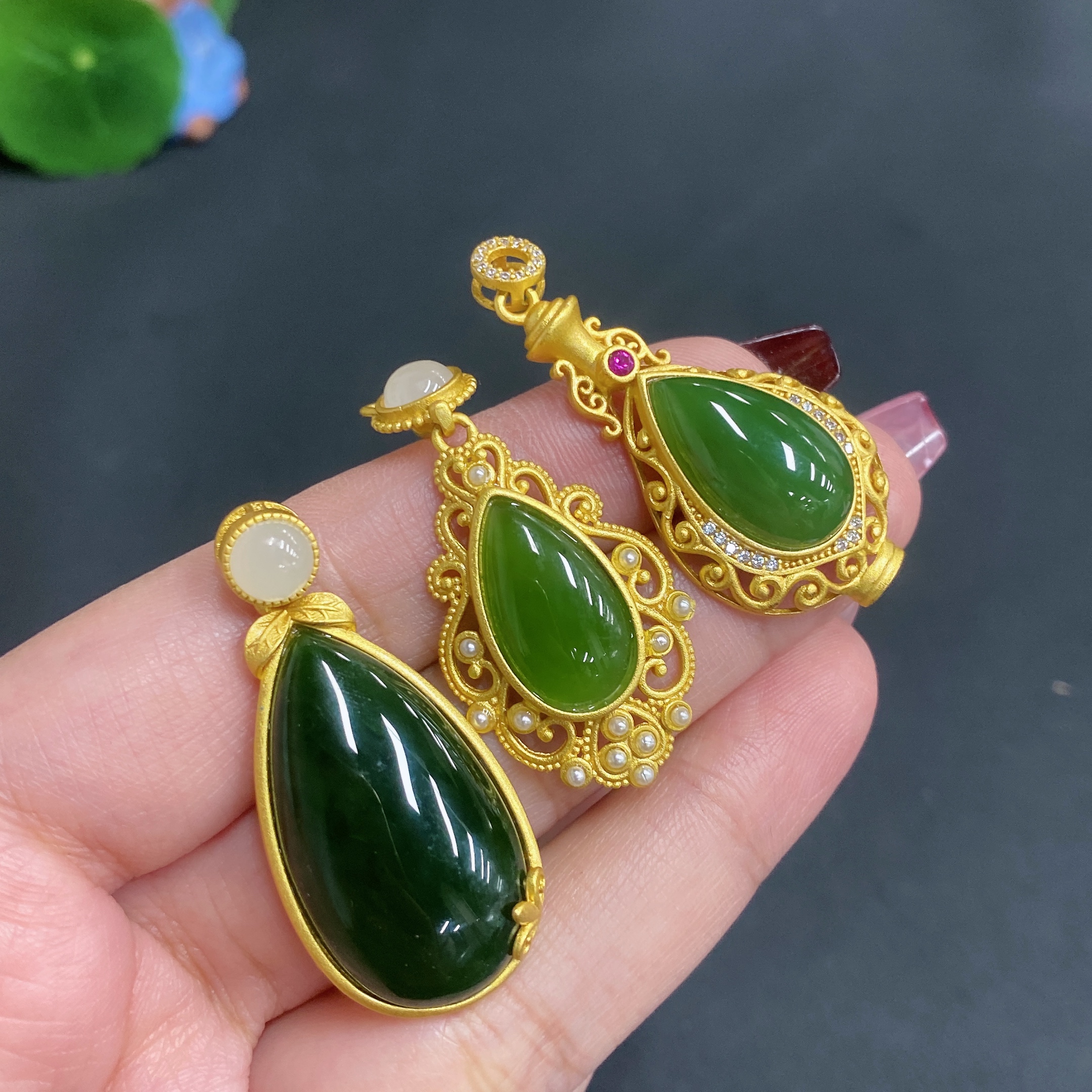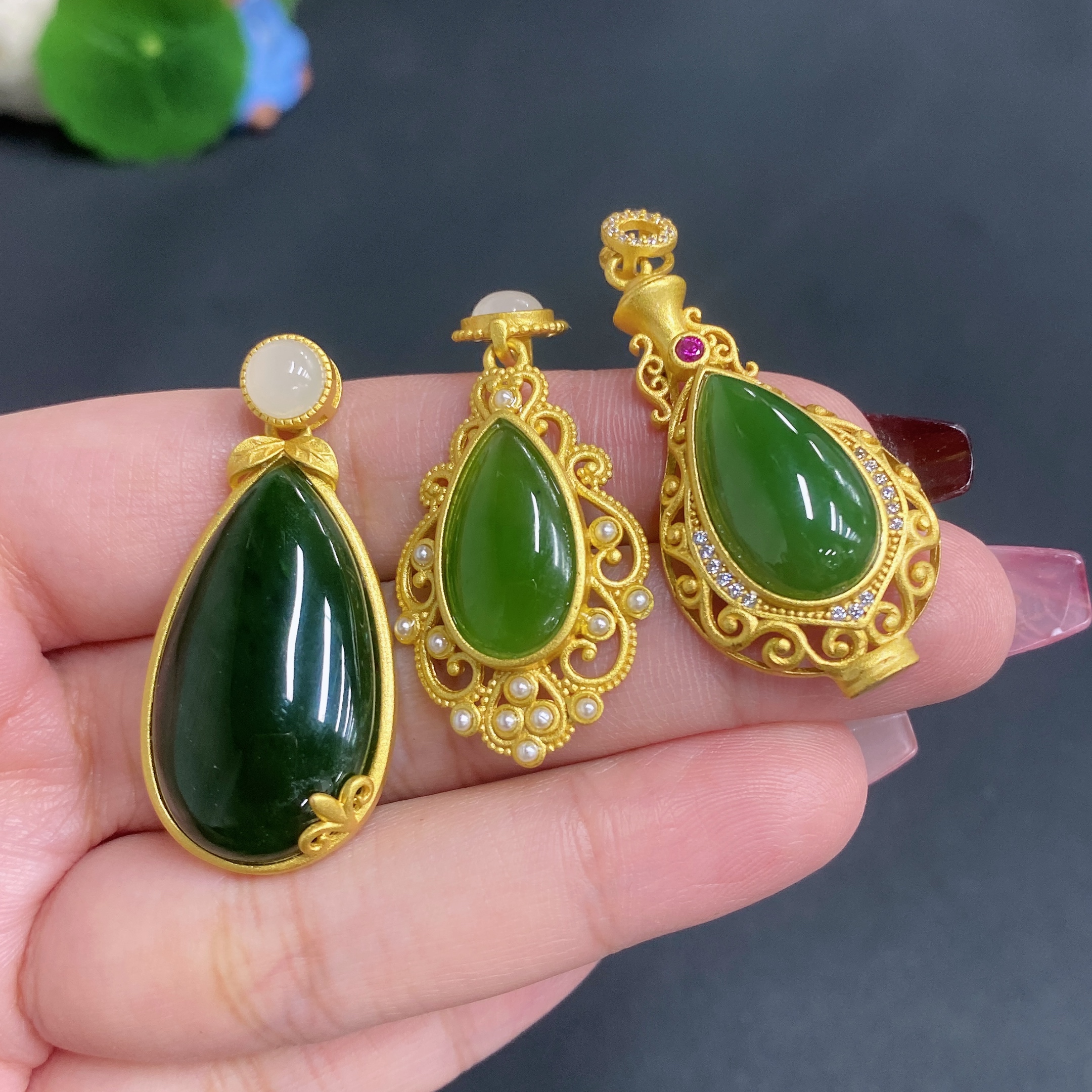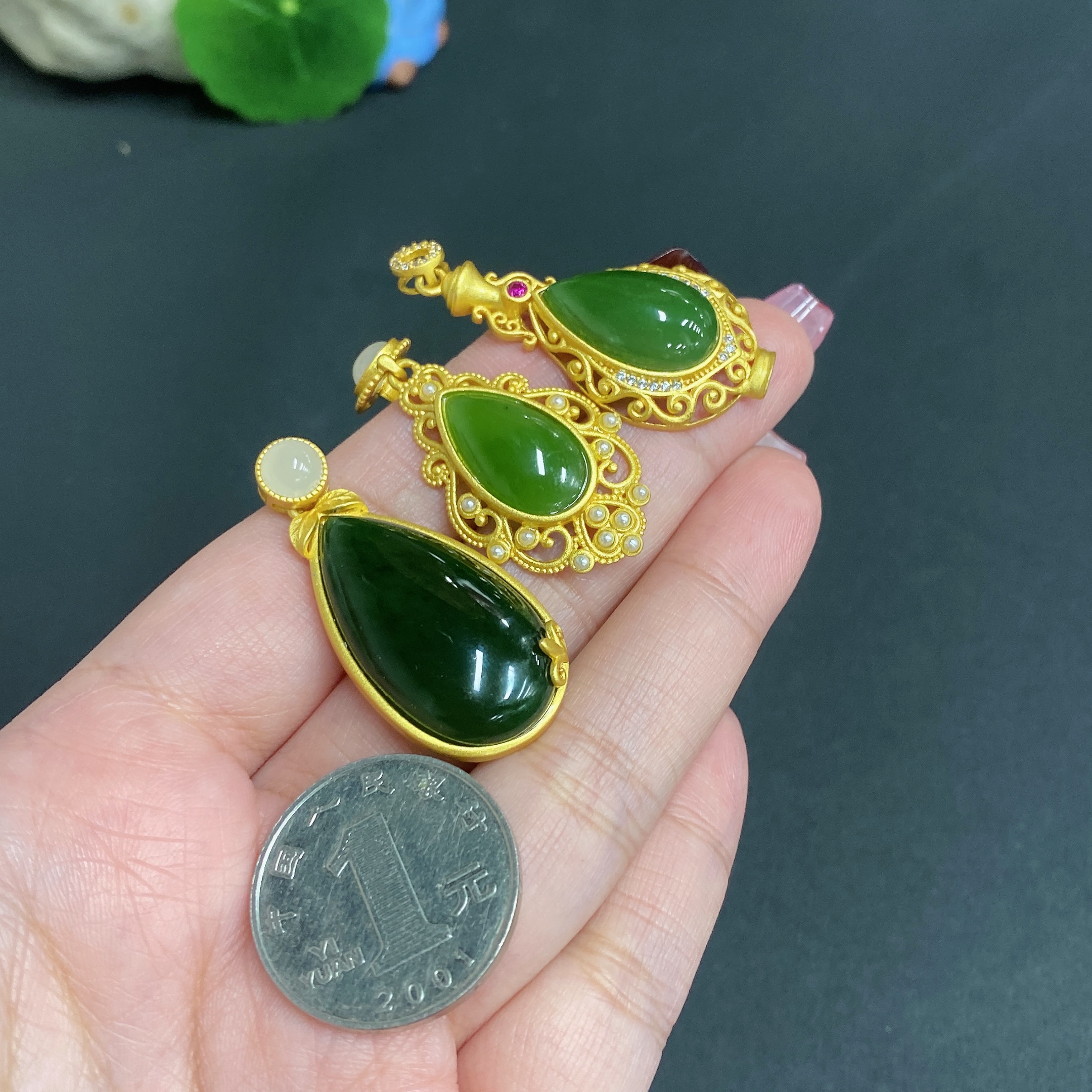 Hetian Jade Inlaid Pendant Total Weight About 17.3g Non-Gold